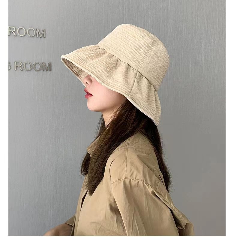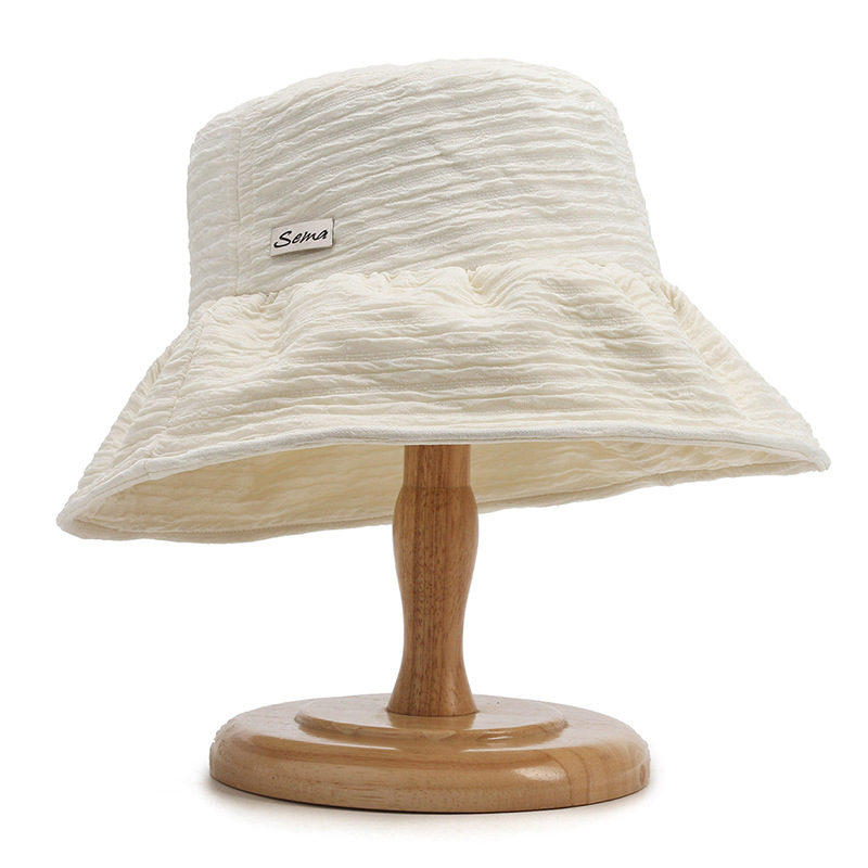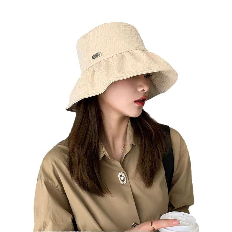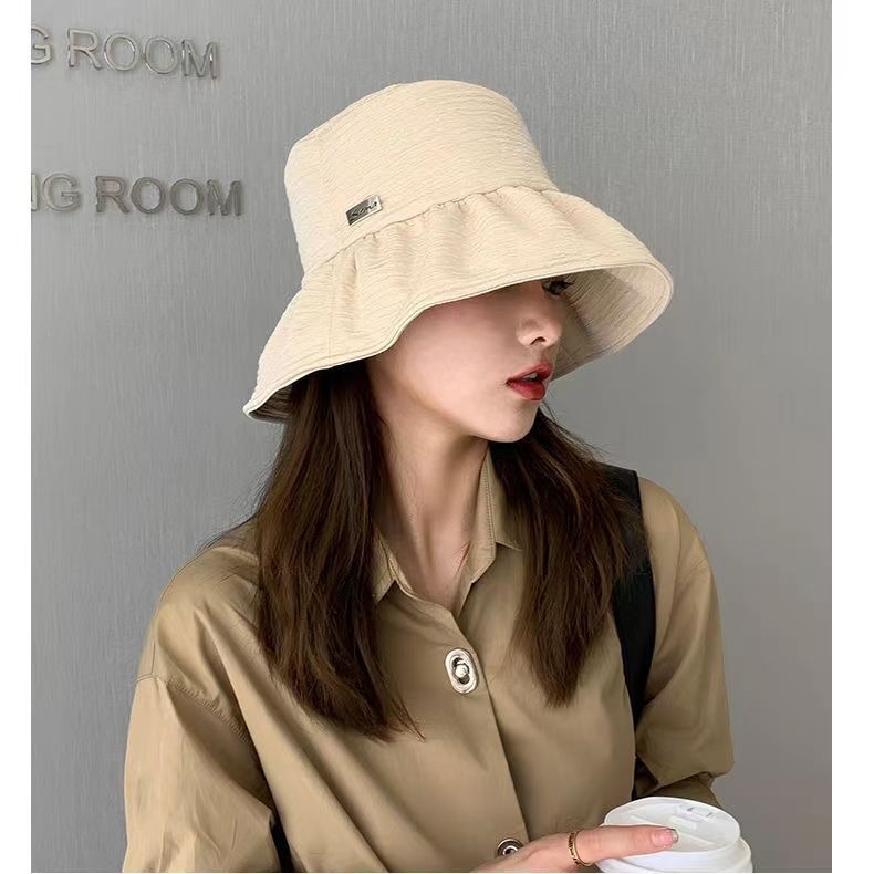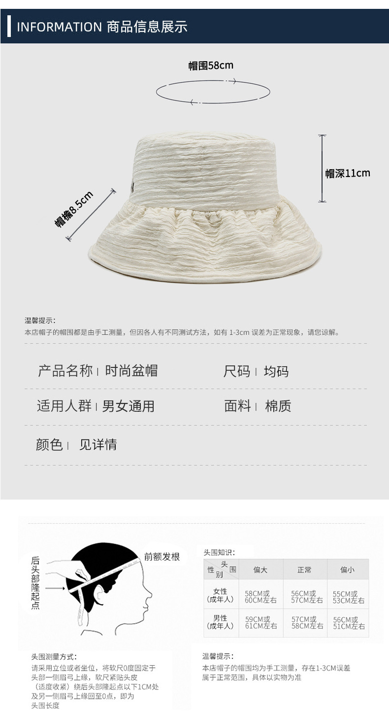 褶皱丝绸折叠帽子女夏季渔夫帽大头围太阳帽户外遮阳帽防晒帽礼帽