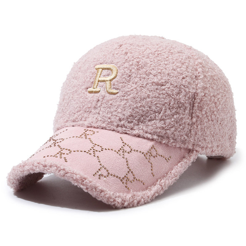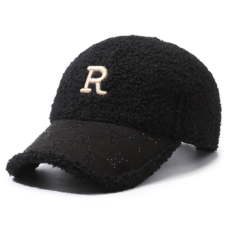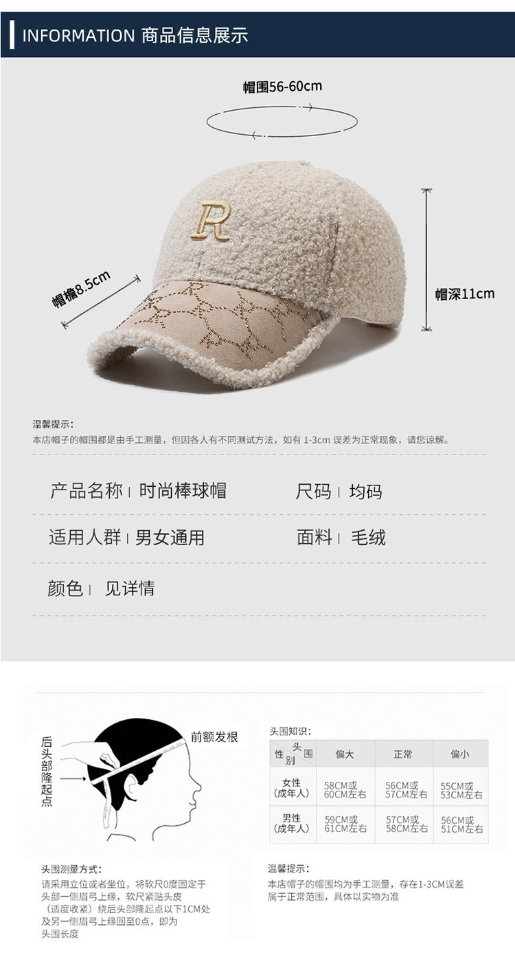 韩国帽子女秋冬季大头围刺绣字母磨毛棒球帽韩版百搭显脸小鸭舌帽