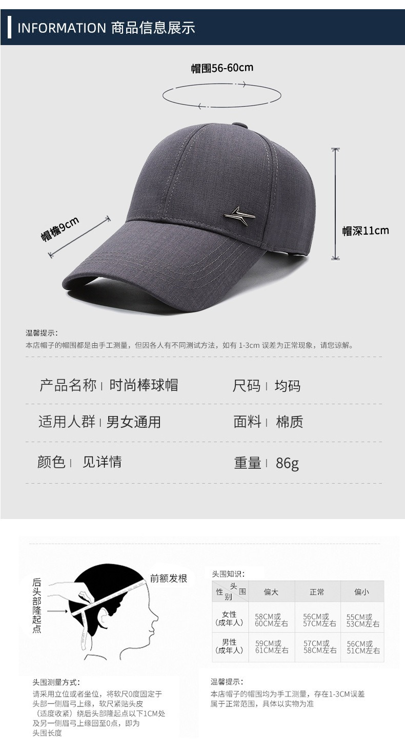 春秋新款棒球帽中老年遮阳防晒老人帽简约时尚户外钓鱼男士鸭舌帽