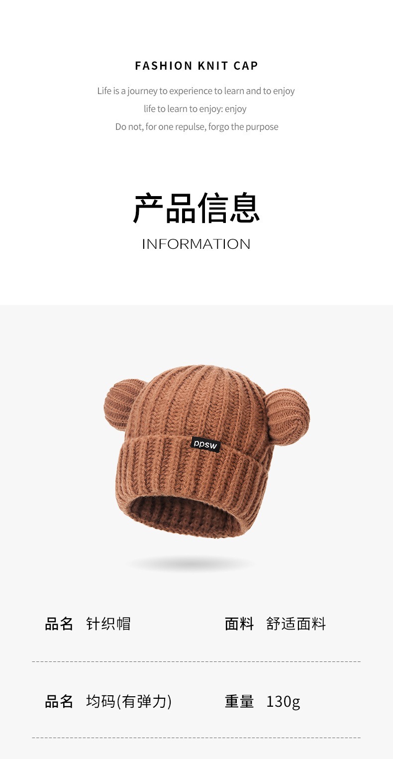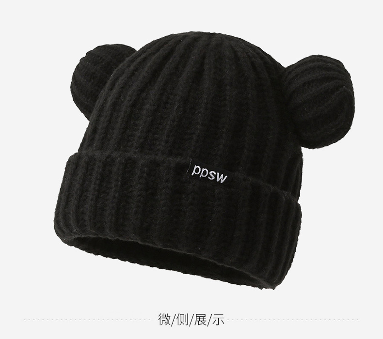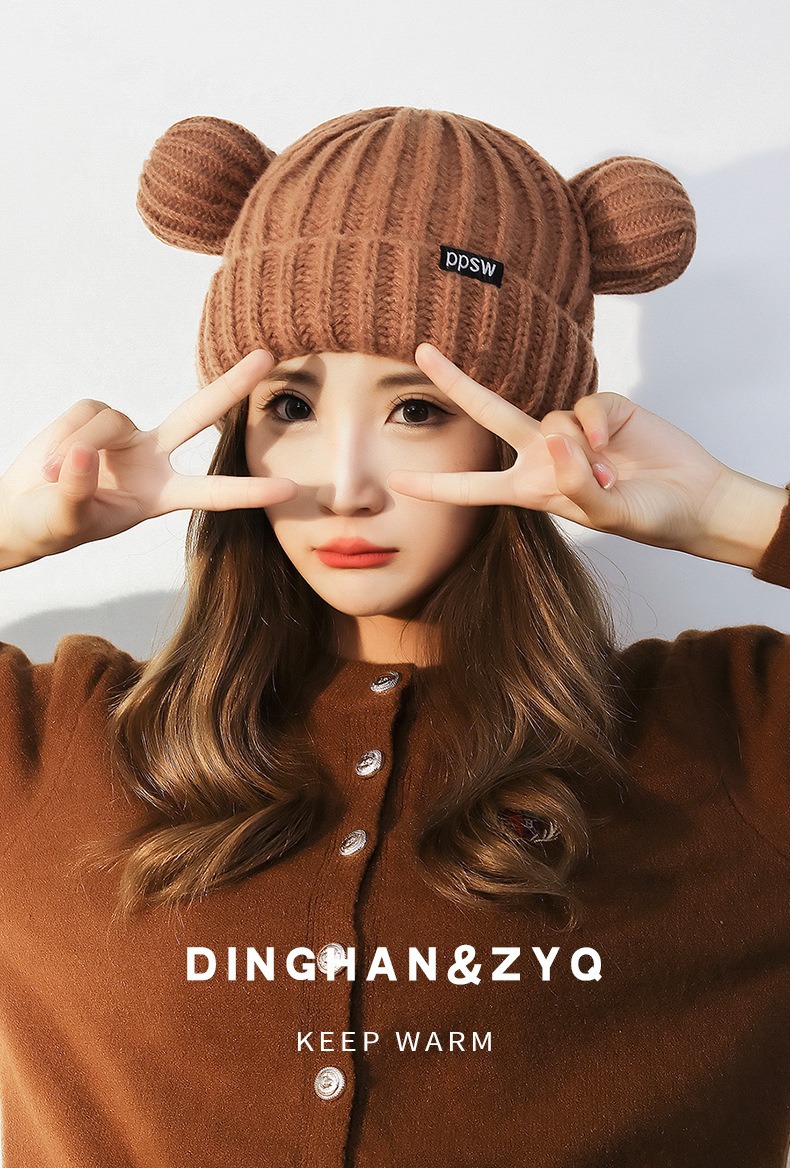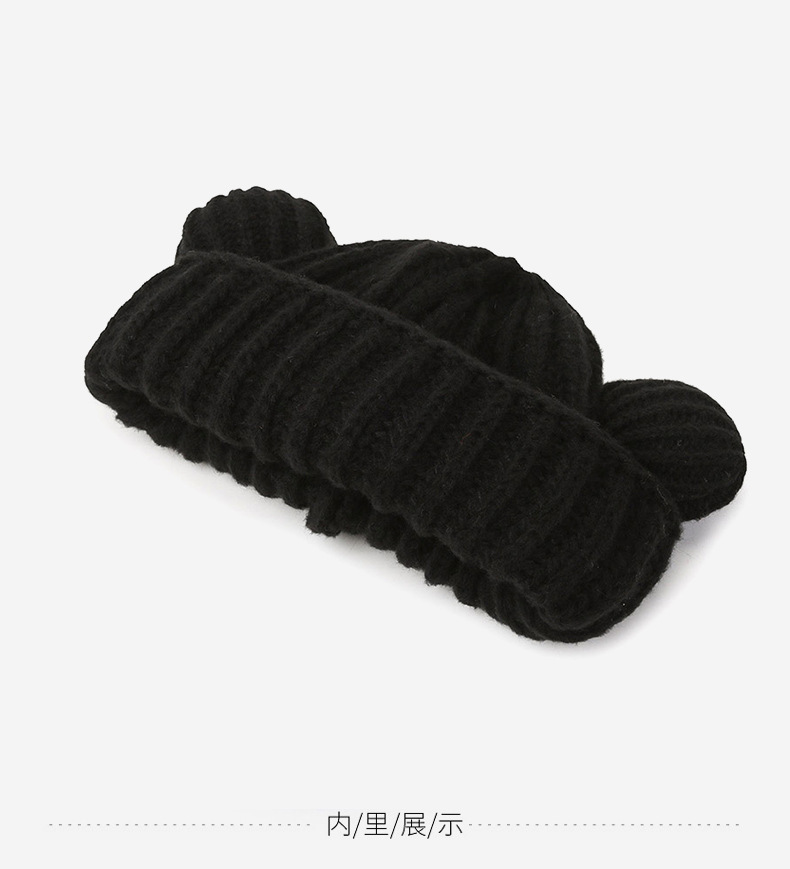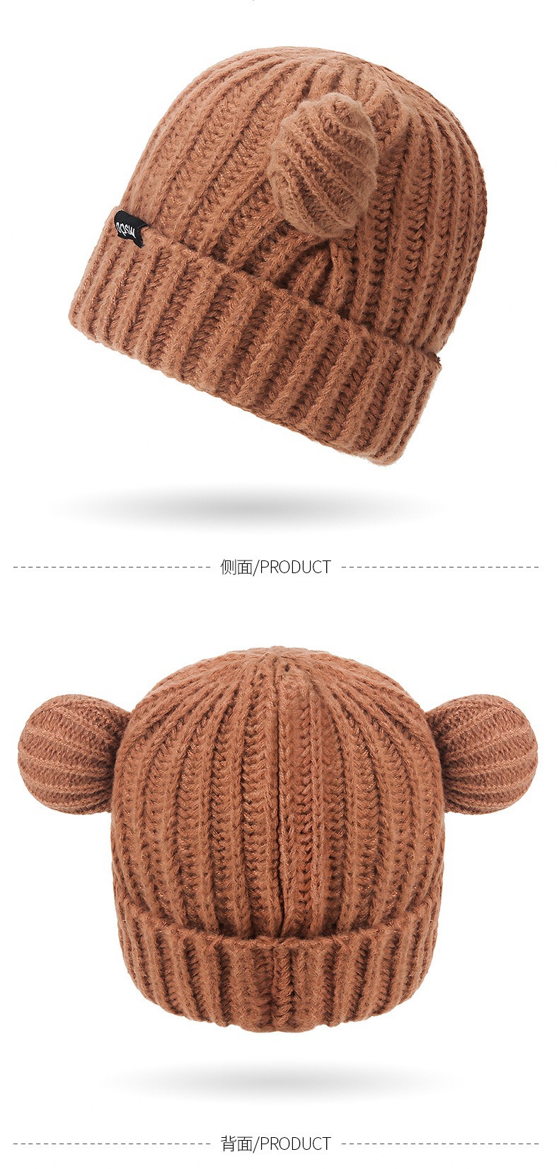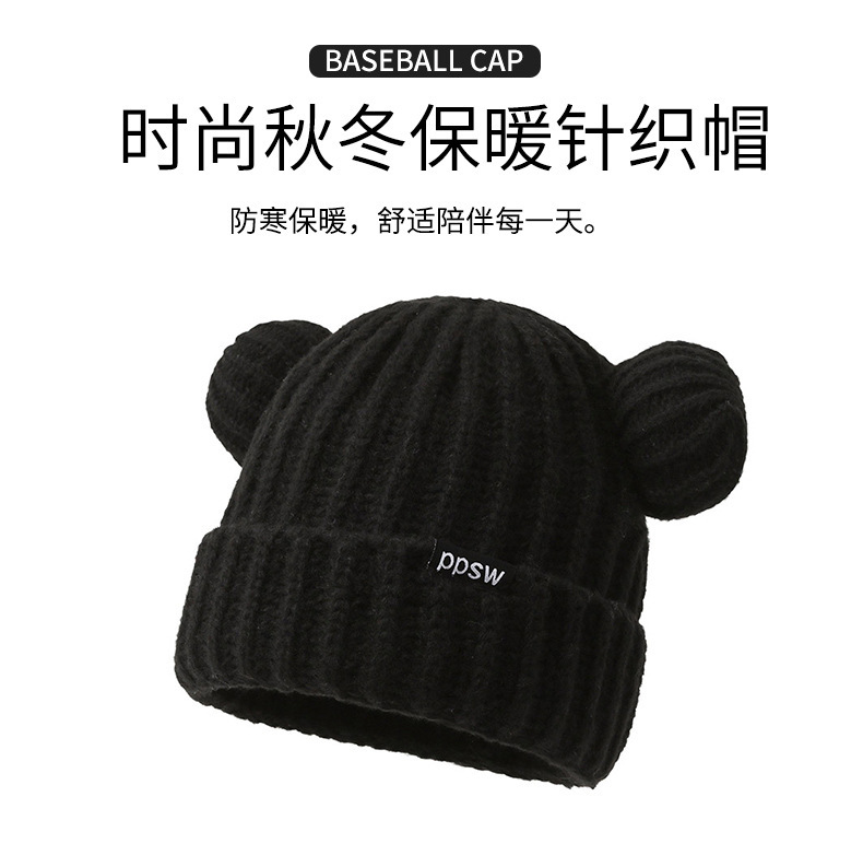 韩版可爱小熊耳朵帽子秋冬ins显脸小针织帽女骑车加厚保暖护耳帽