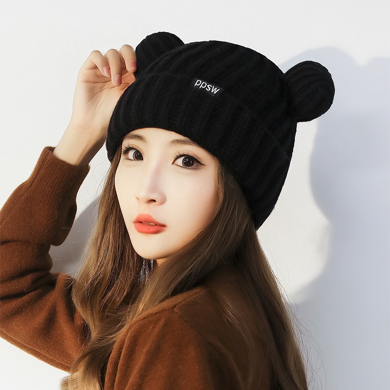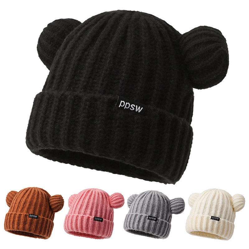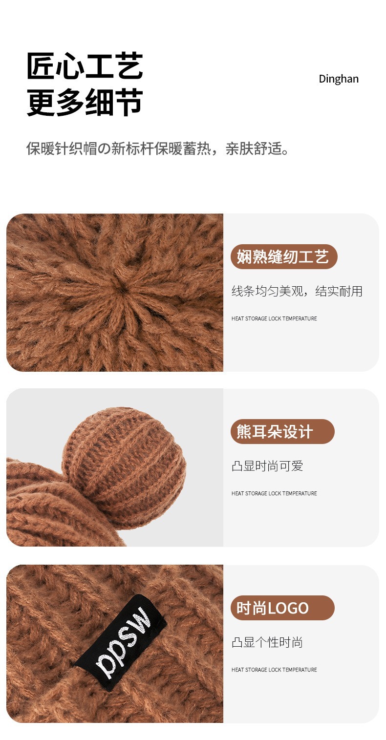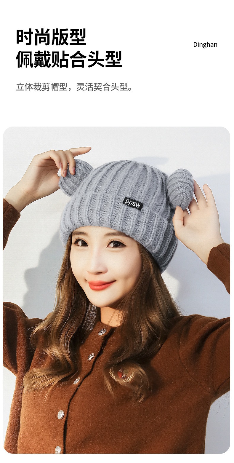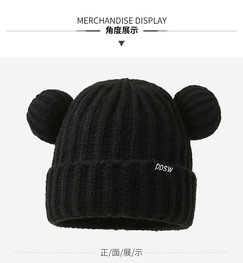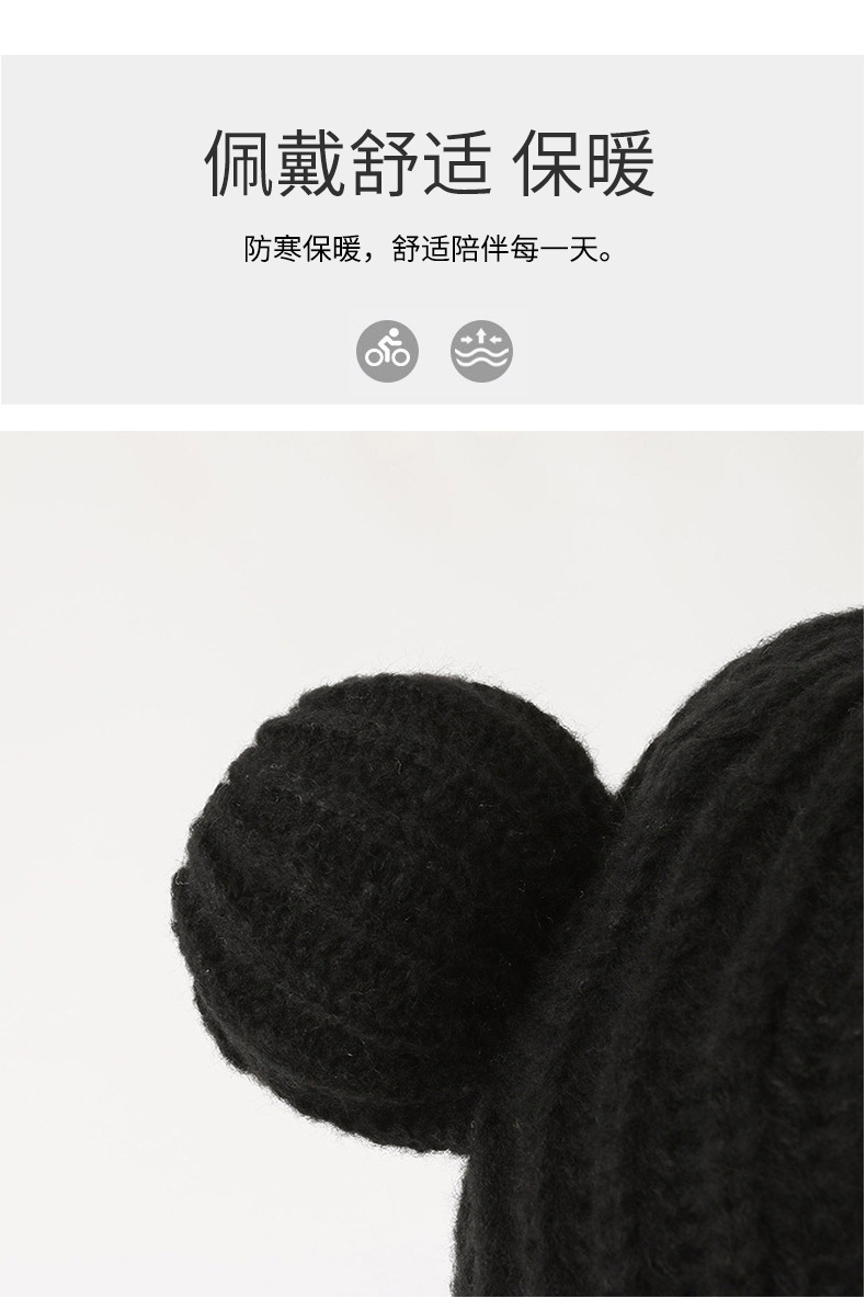 韩版可爱小熊耳朵帽子秋冬ins显脸小针织帽女骑车加厚保暖护耳帽