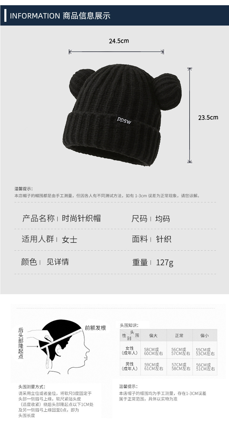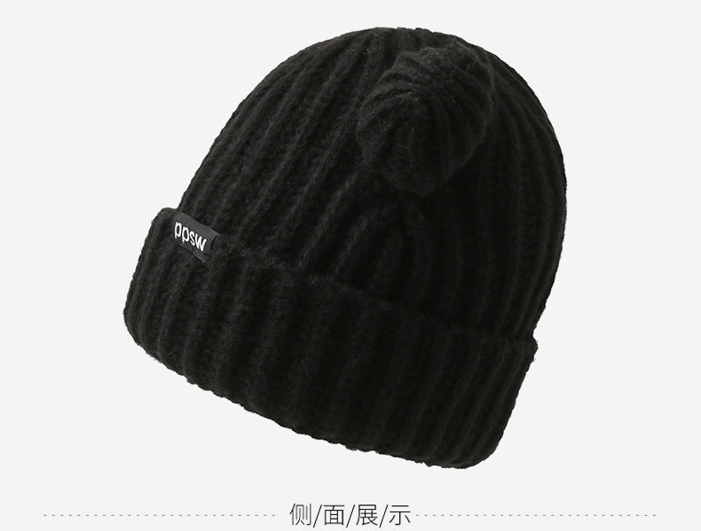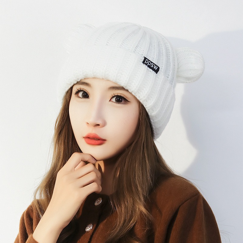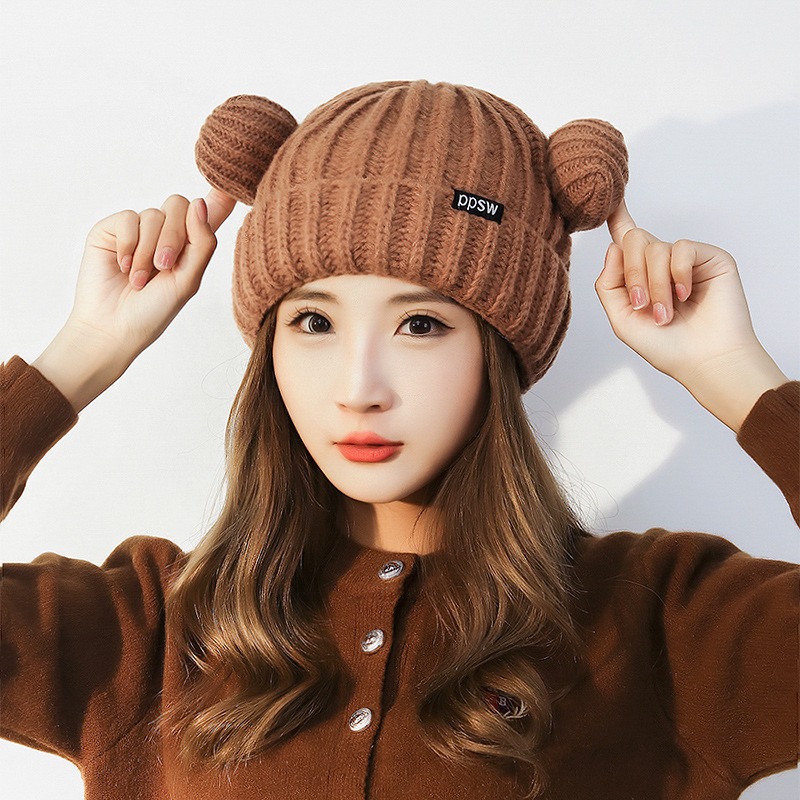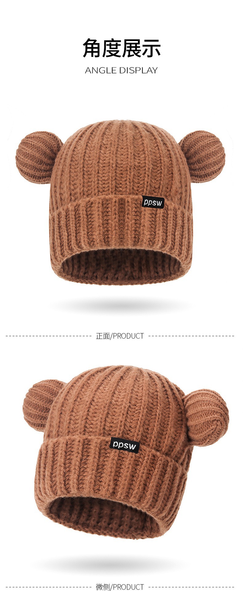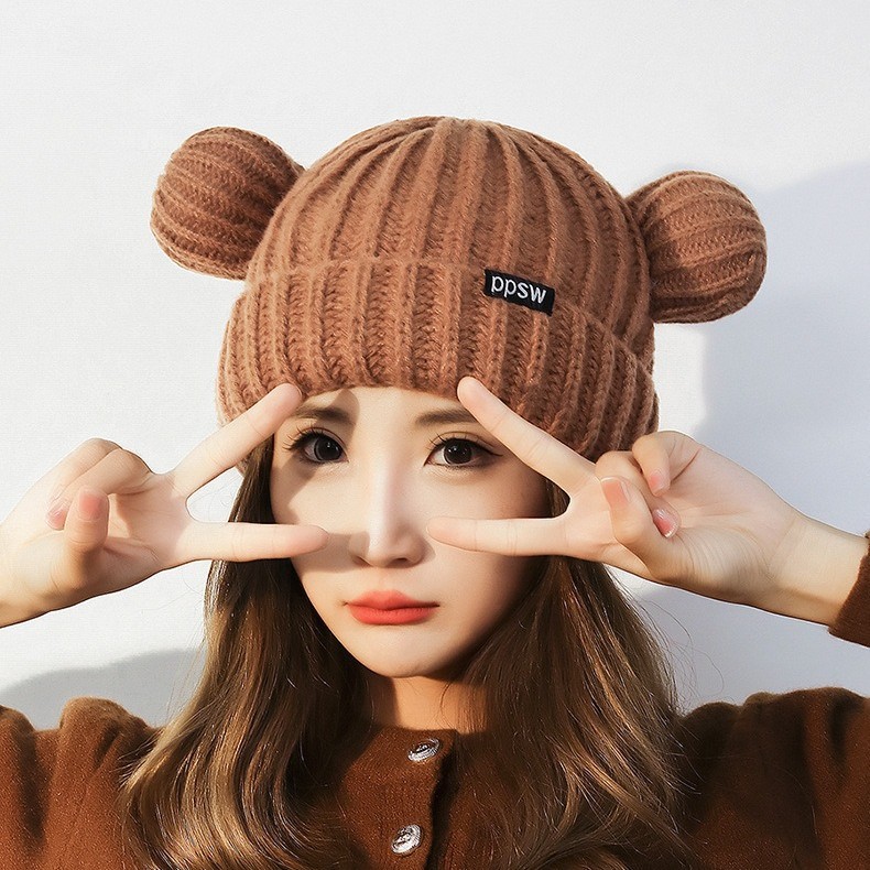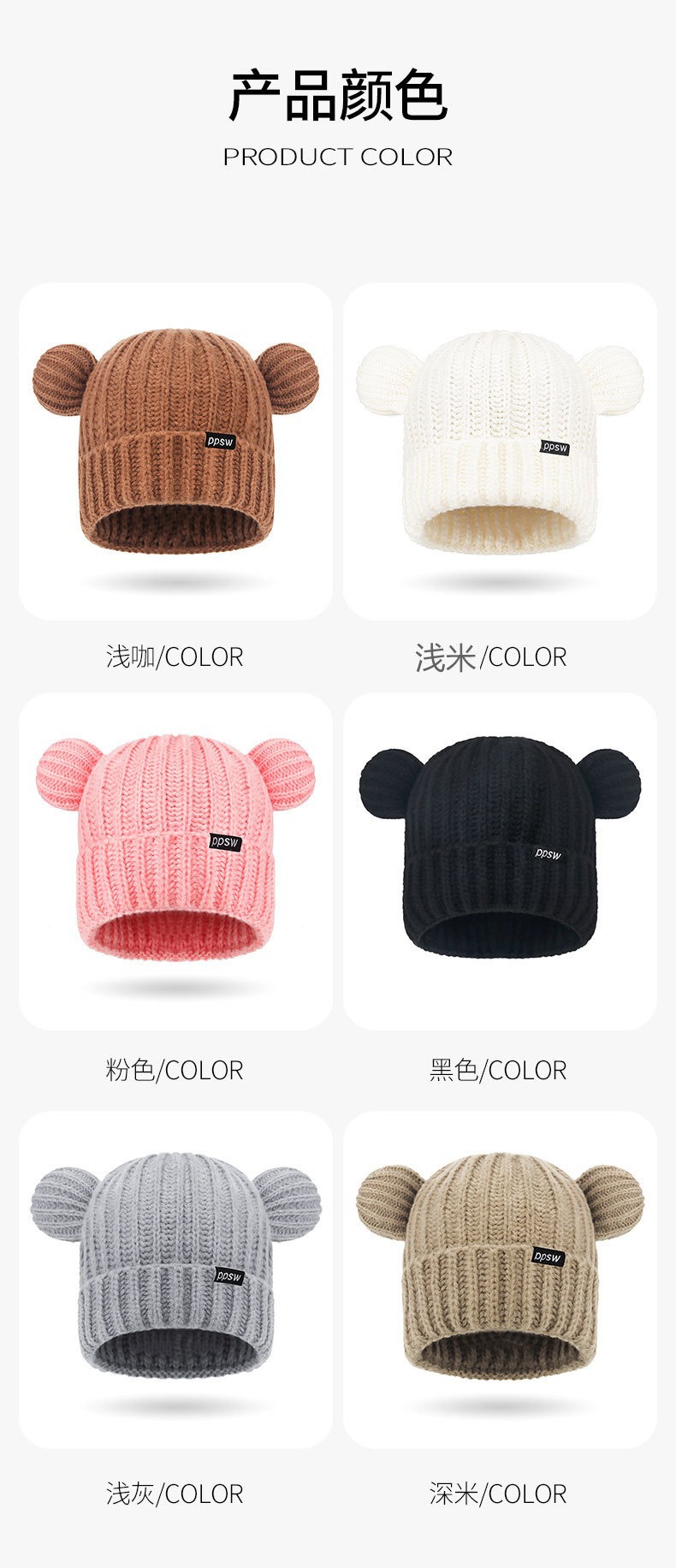 韩版可爱小熊耳朵帽子秋冬ins显脸小针织帽女骑车加厚保暖护耳帽
