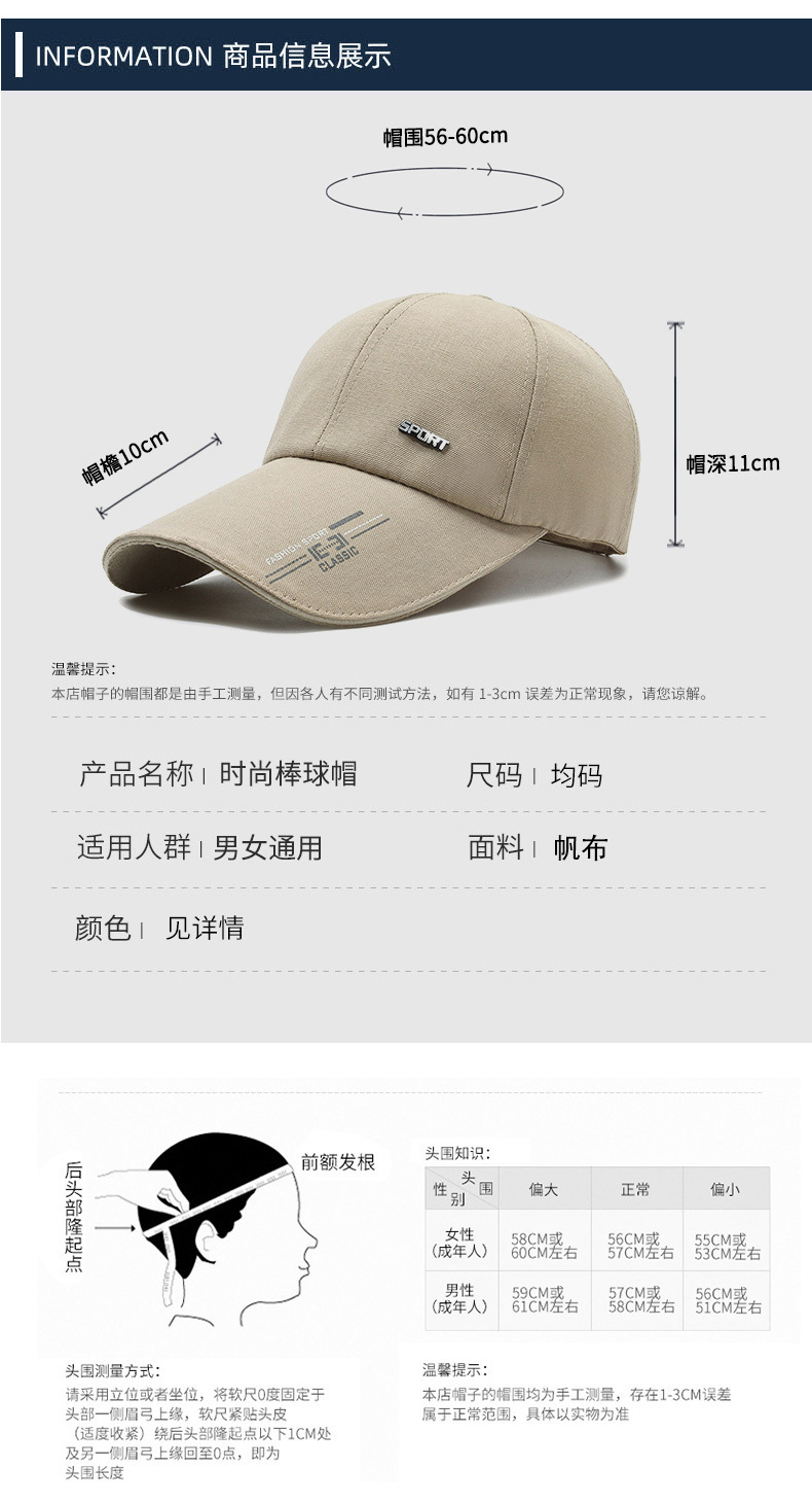 棒球帽男士太阳帽子防晒遮阳钓鱼男款秋款大头围硬顶鸭舌帽棒球帽