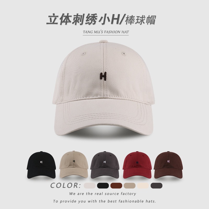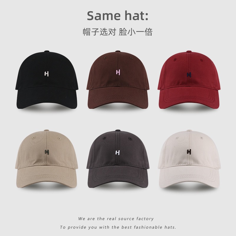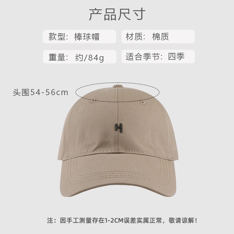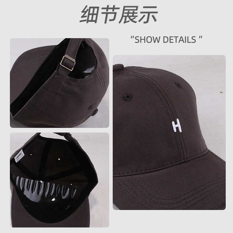 H标字母刺绣棒球帽大头围宽檐深顶纯棉透气舒适女韩版鸭舌帽子男