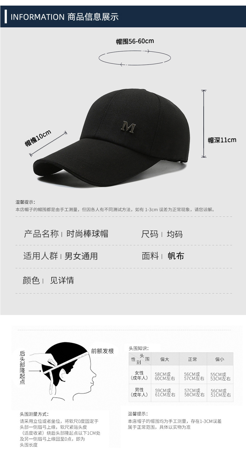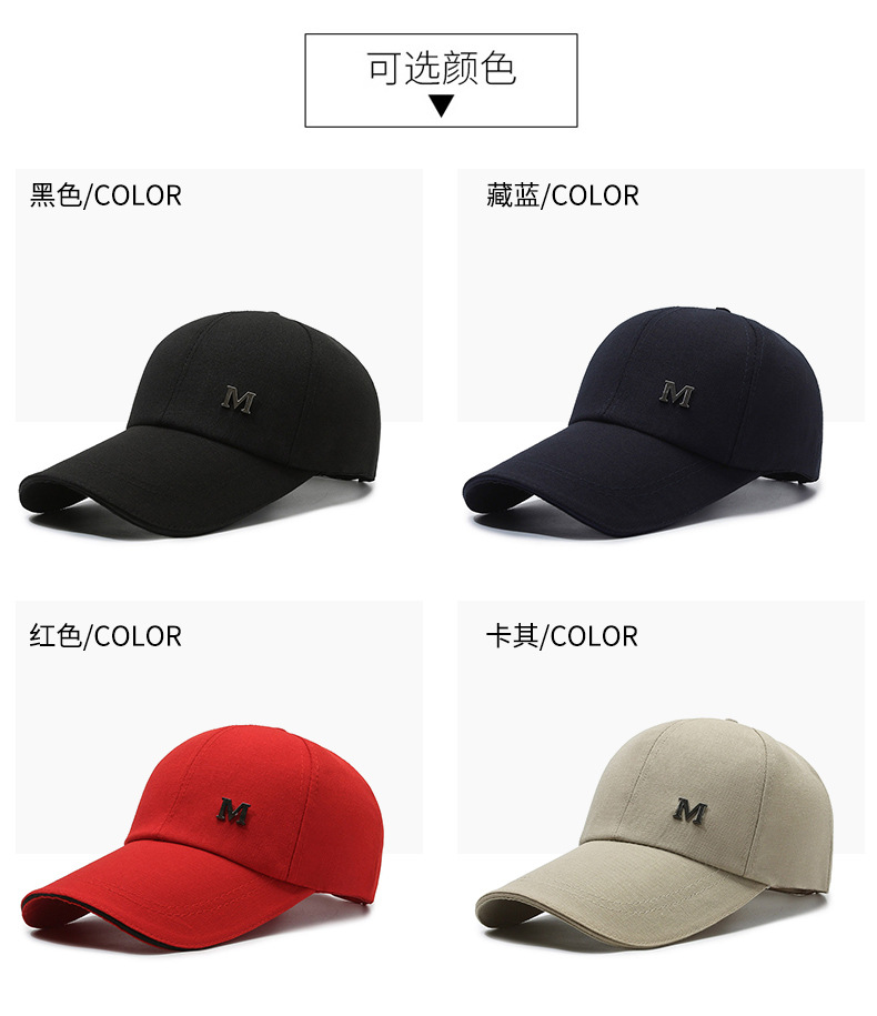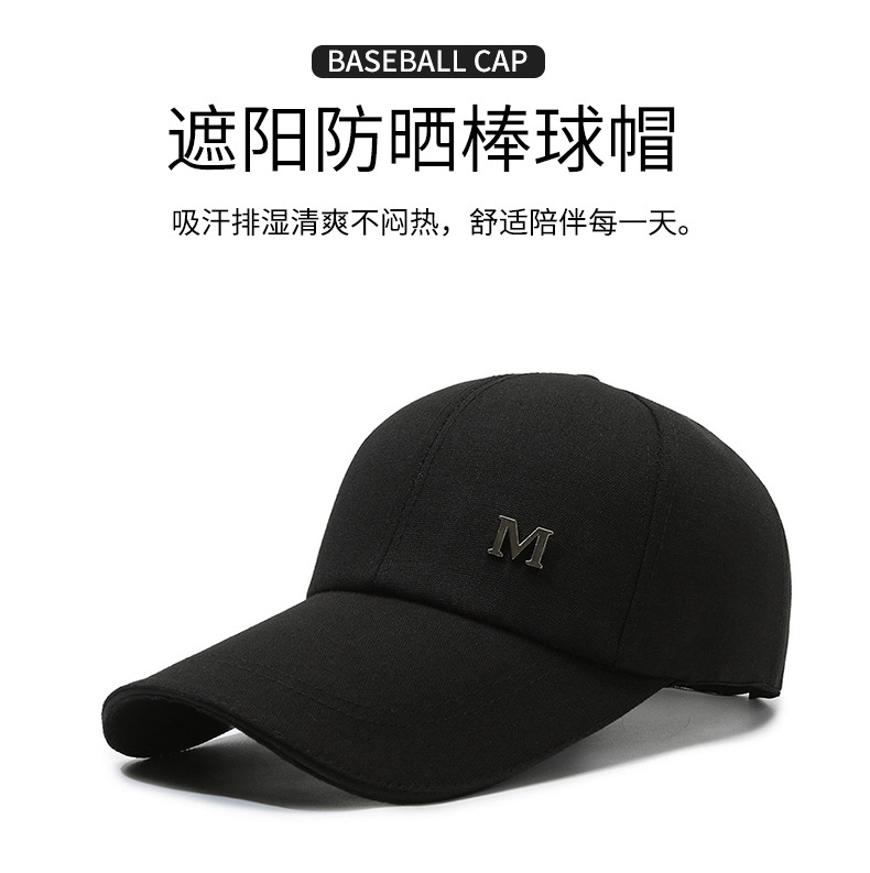 帽子棒球帽男休闲百搭防晒遮阳钓鱼男款帆布加长沿硬顶鸭舌棒球帽