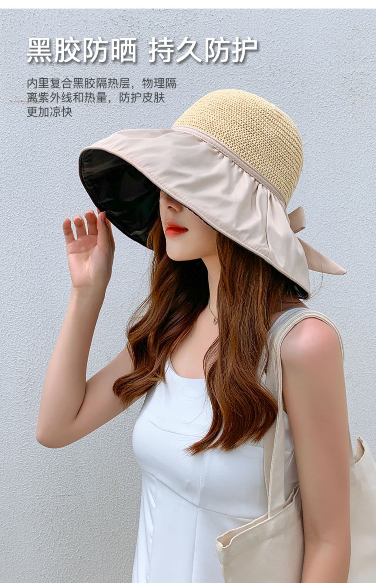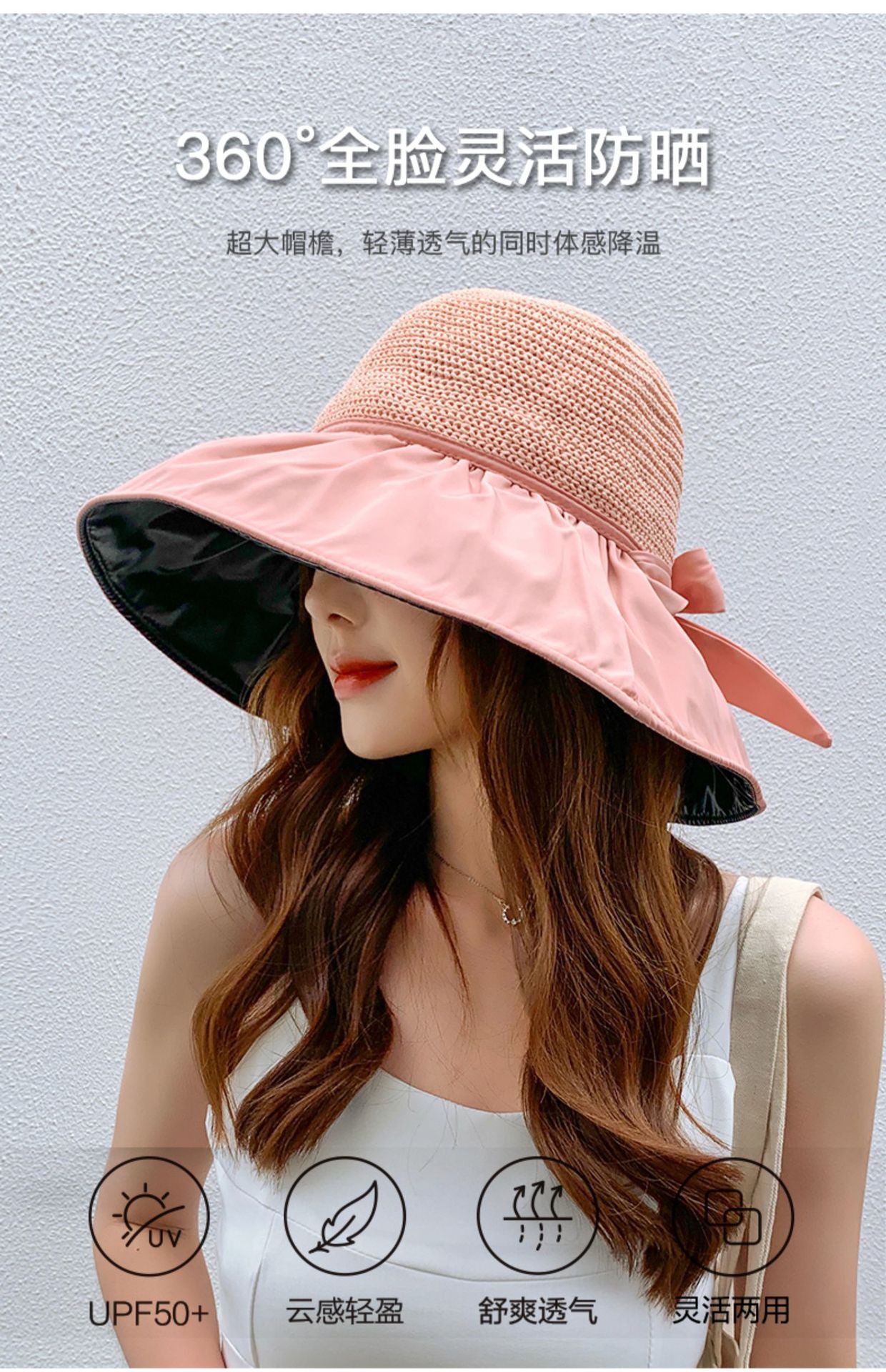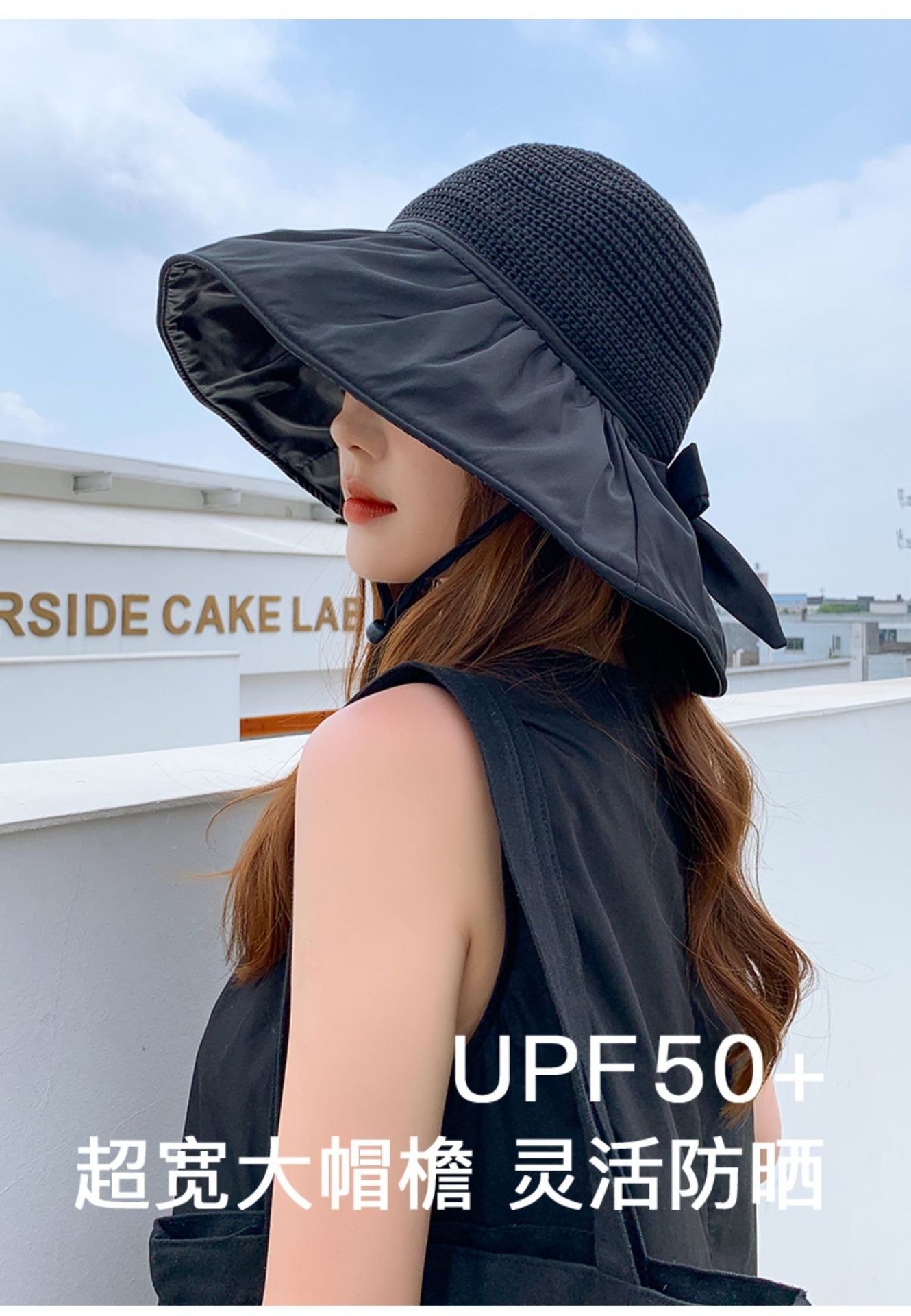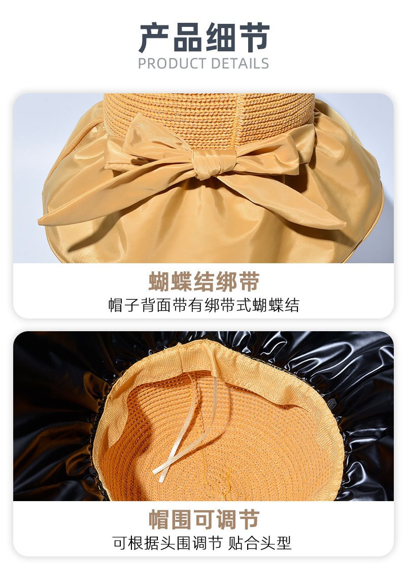 大帽檐防晒帽遮阳帽女夏季黑胶渔夫帽镂空草帽休闲折叠太阳沙滩帽