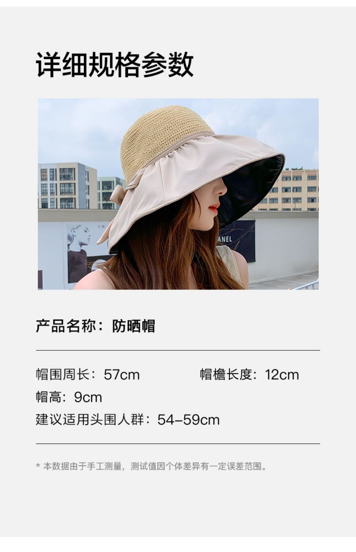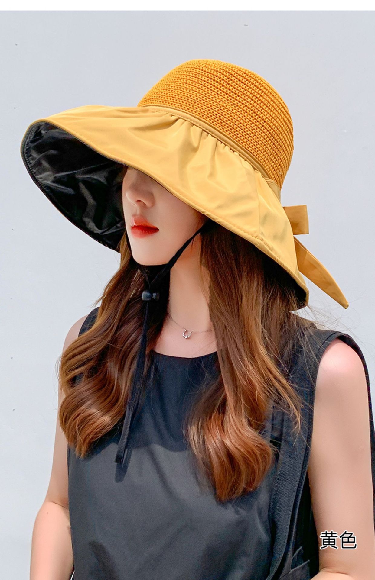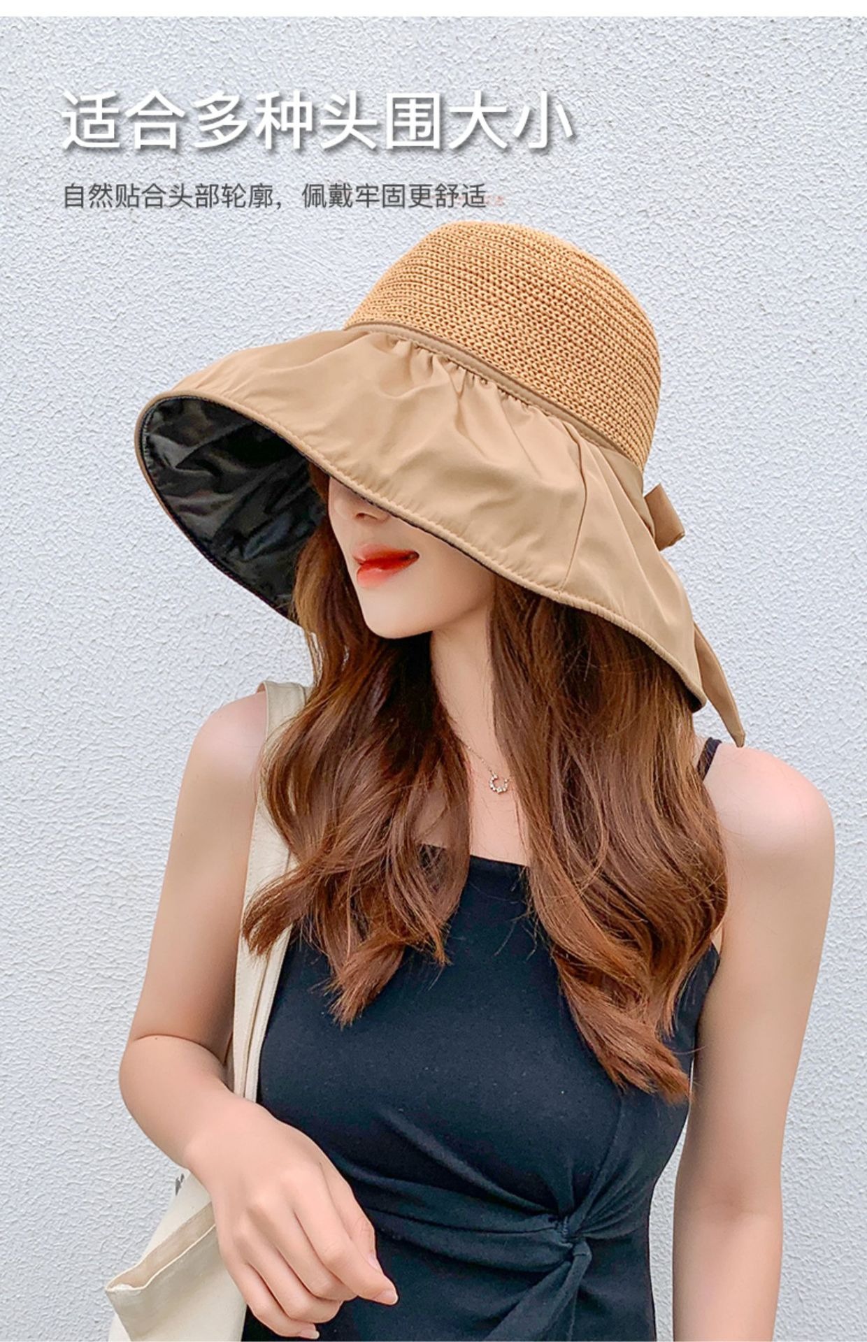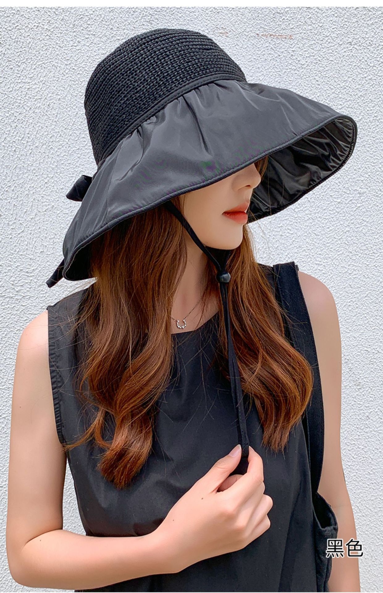 大帽檐防晒帽遮阳帽女夏季黑胶渔夫帽镂空草帽休闲折叠太阳沙滩帽