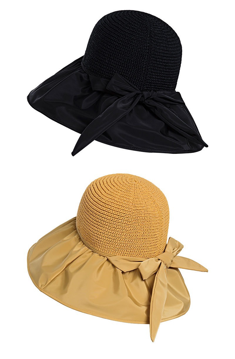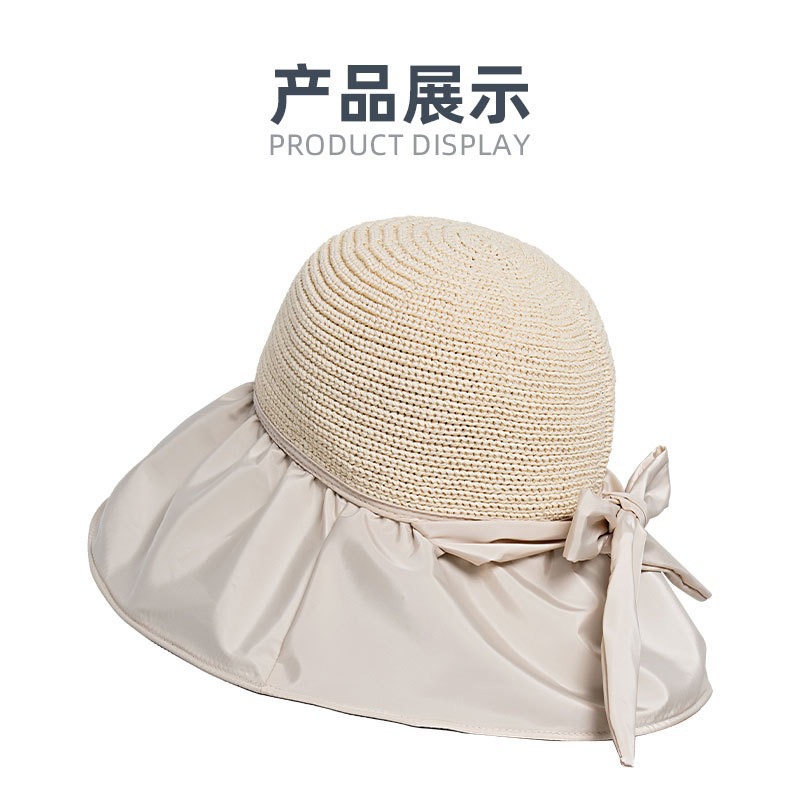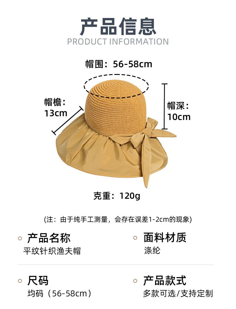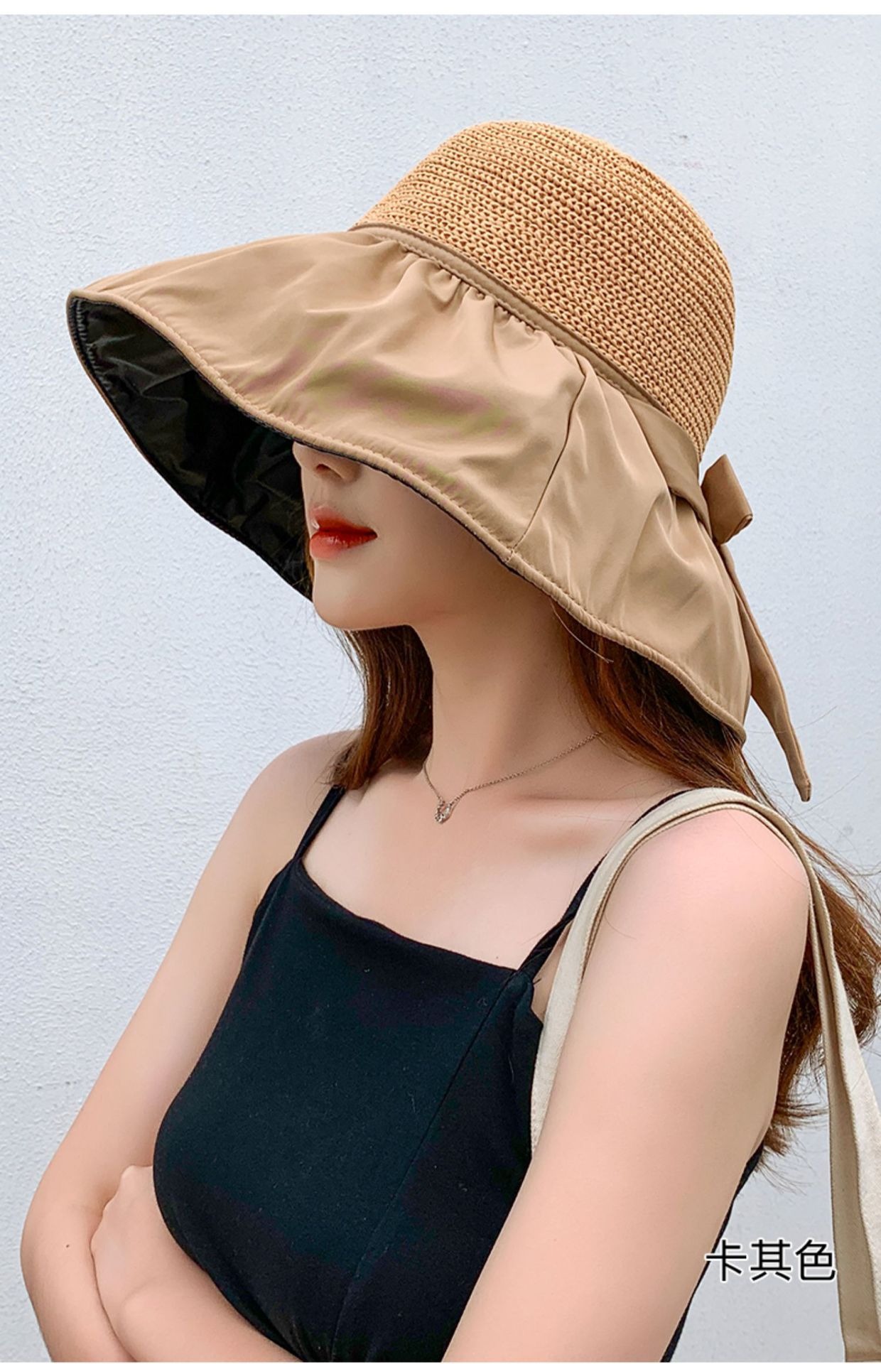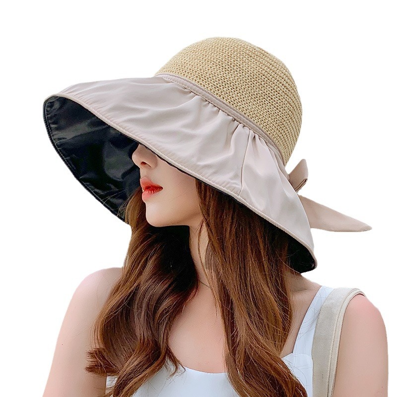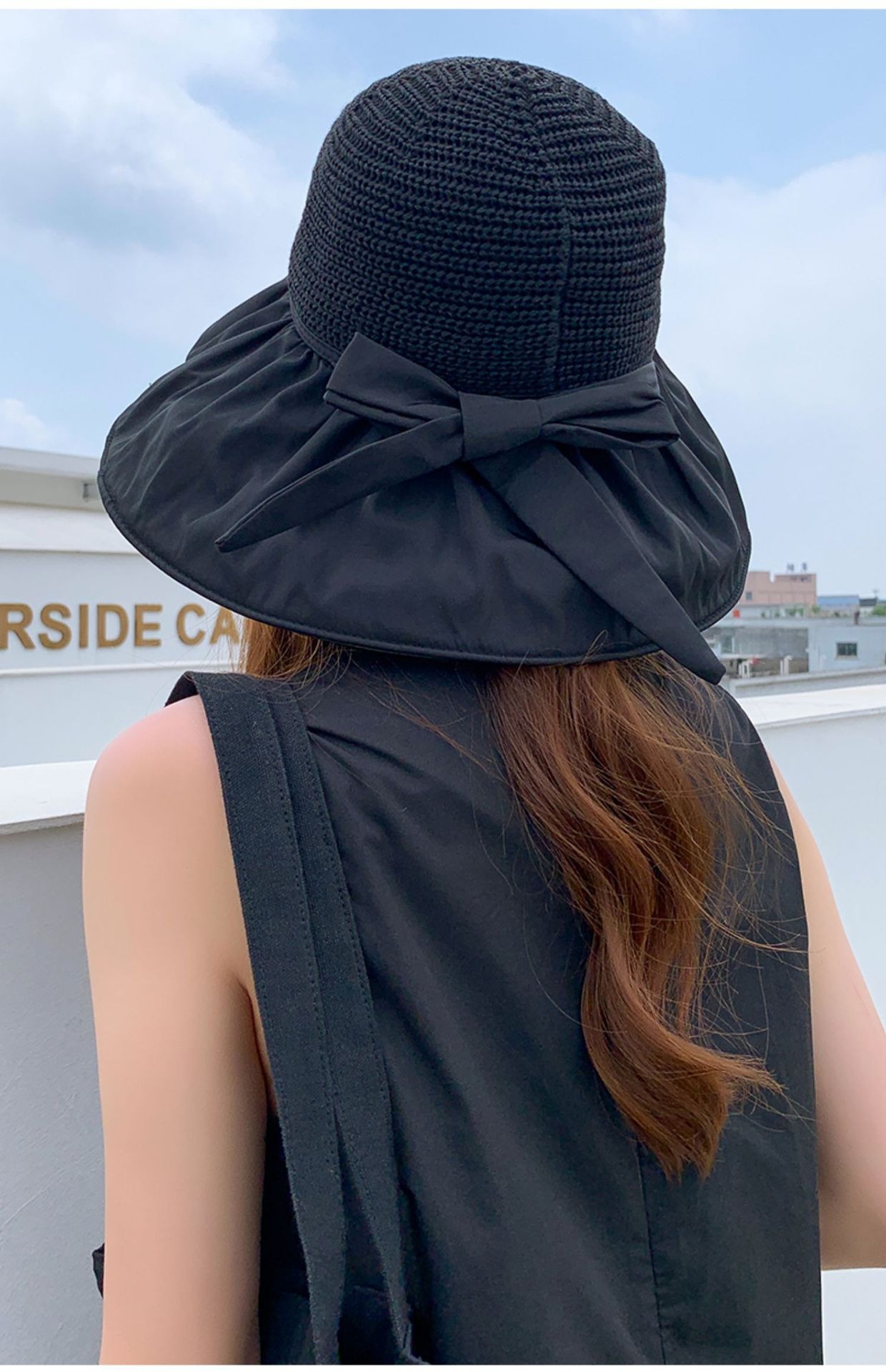 大帽檐防晒帽遮阳帽女夏季黑胶渔夫帽镂空草帽休闲折叠太阳沙滩帽