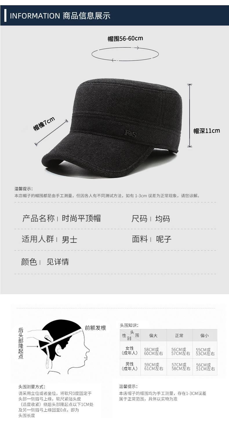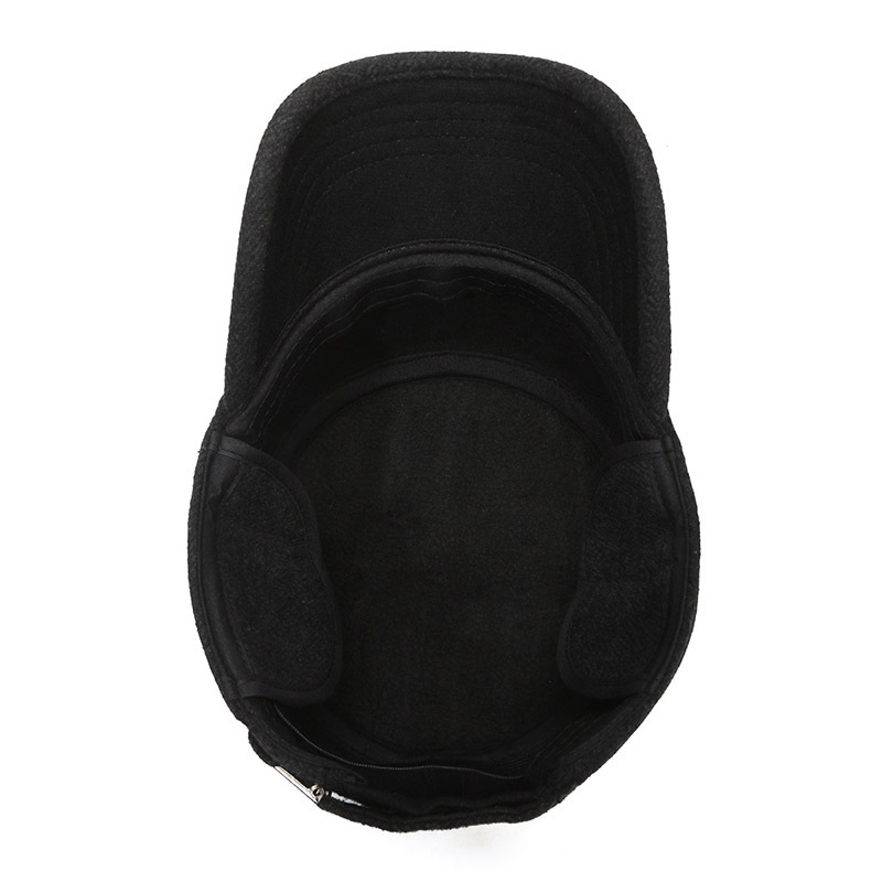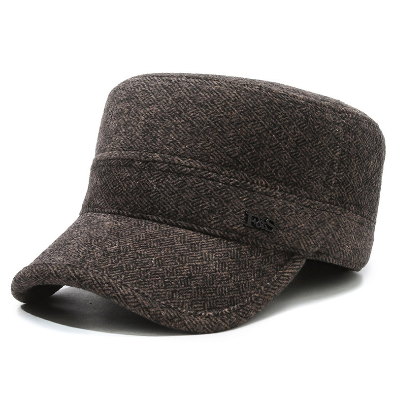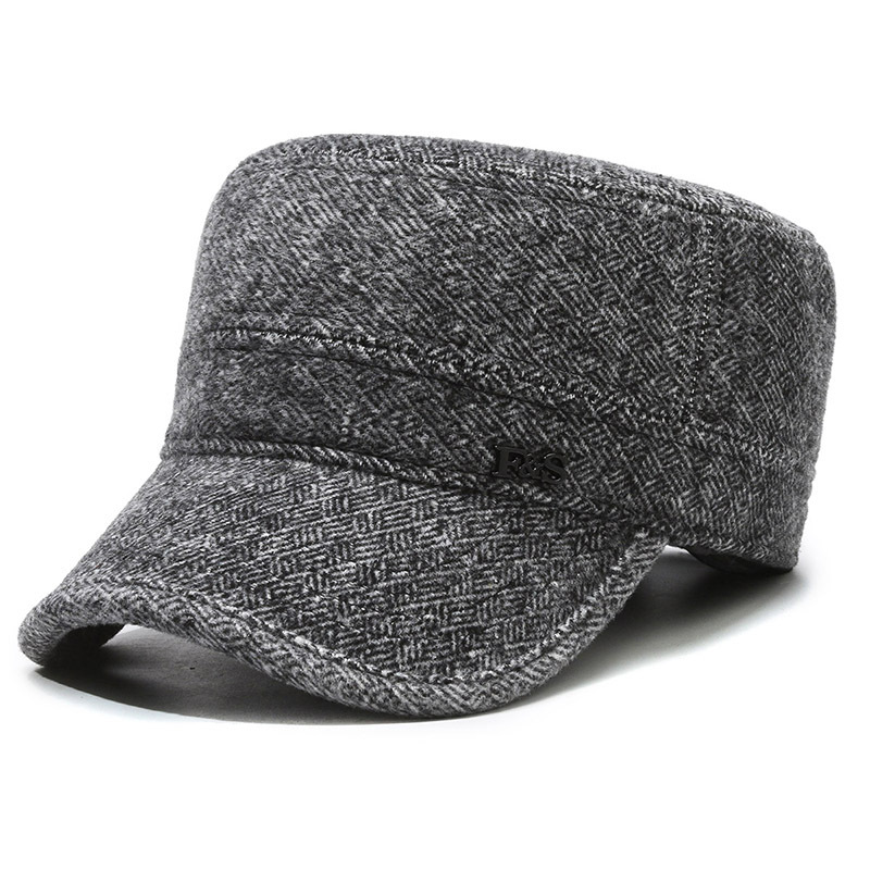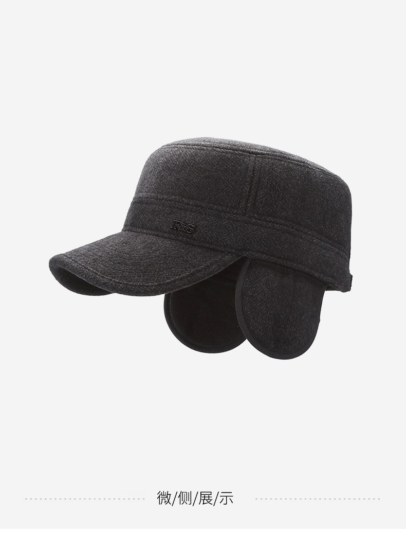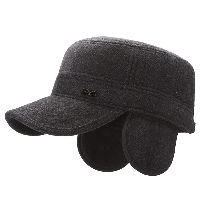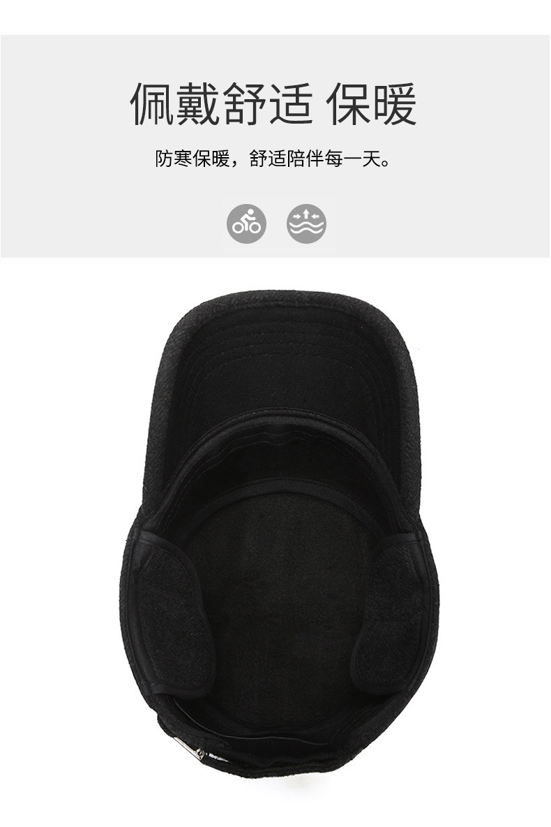 中老年人男士秋冬帽户外保暖防寒毛呢帽平顶帽加绒护耳鸭舌帽冬季