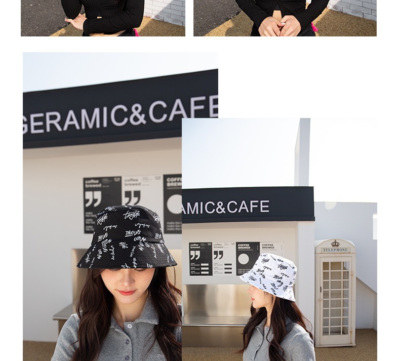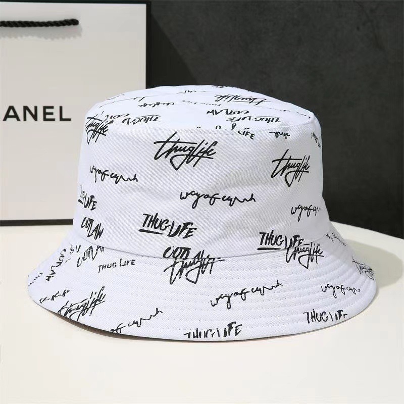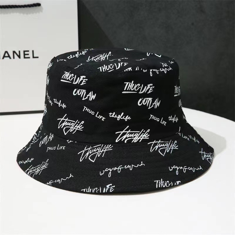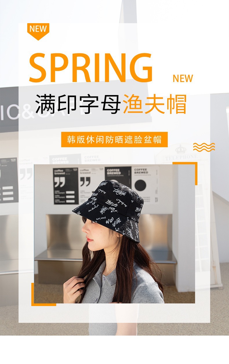 外贸男女同款双面字母印花刺绣小檐渔夫帽春夏秋跨境盆帽涂鸦百搭