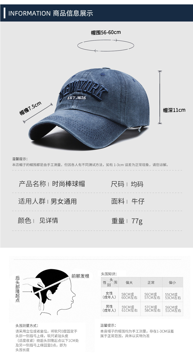 水洗牛仔做旧棒球帽男夏季软顶透气复古百搭春秋鸭舌帽子跨境现货