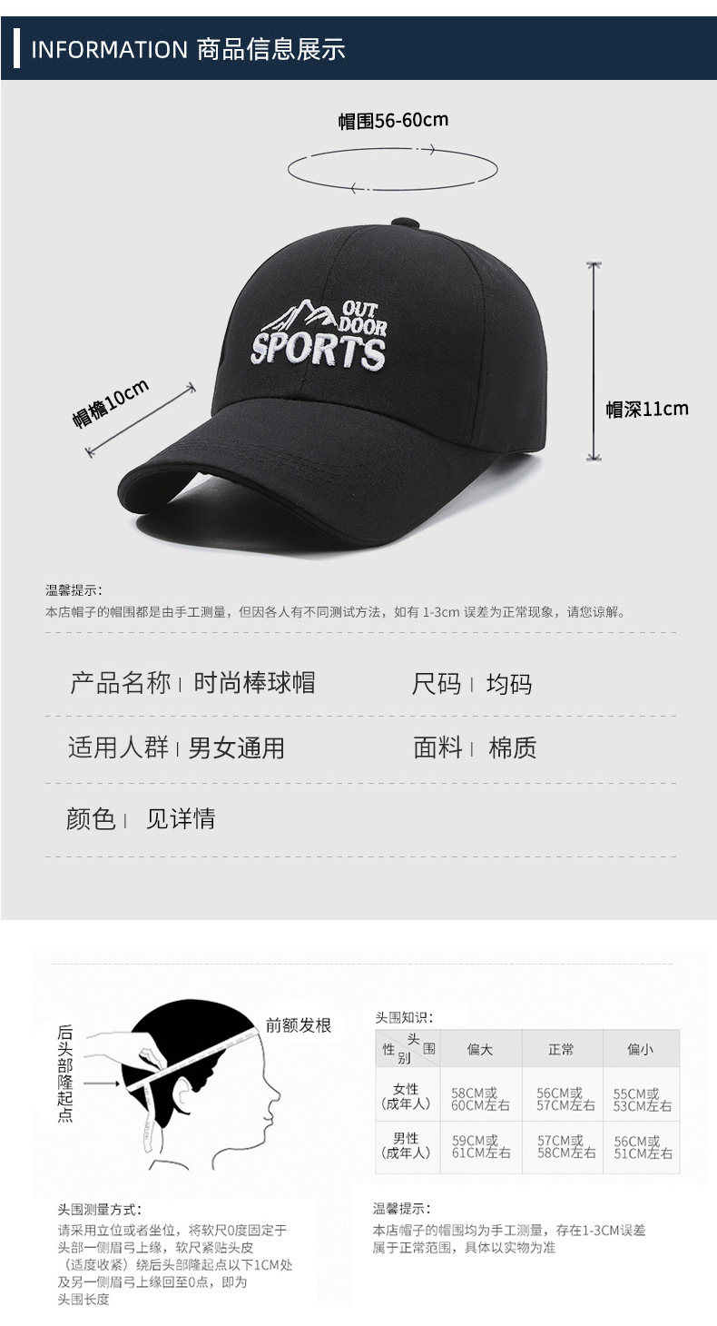 帽子刺绣棒球帽女春秋夏季鸭舌帽男户外旅游运动防晒帽遮阳鸭舌帽