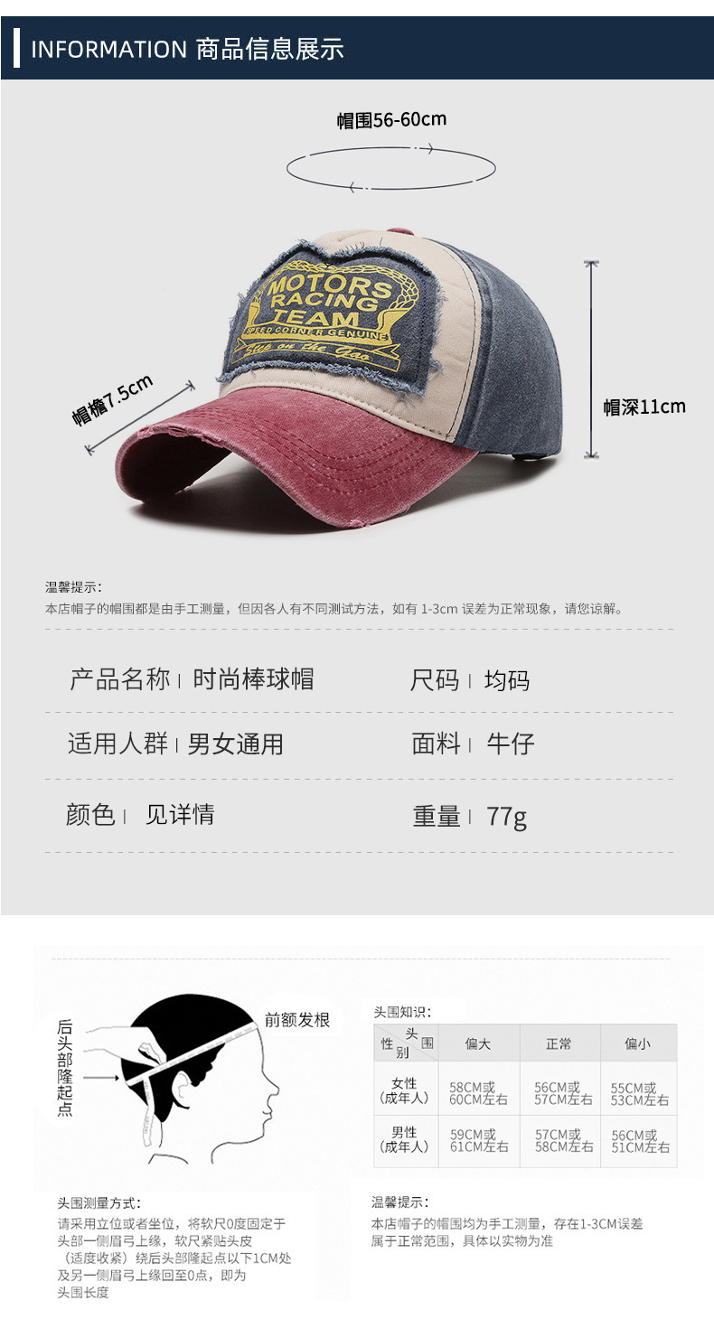 跨境热销春秋休闲遮阳帽男牛仔棒球帽子潮女美式水洗做旧鸭舌帽潮