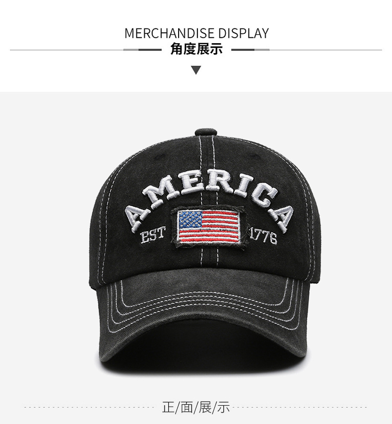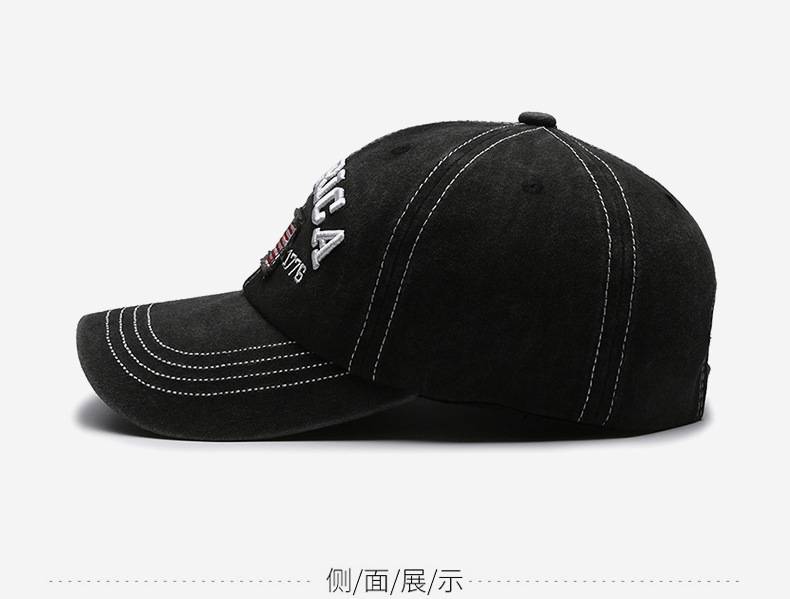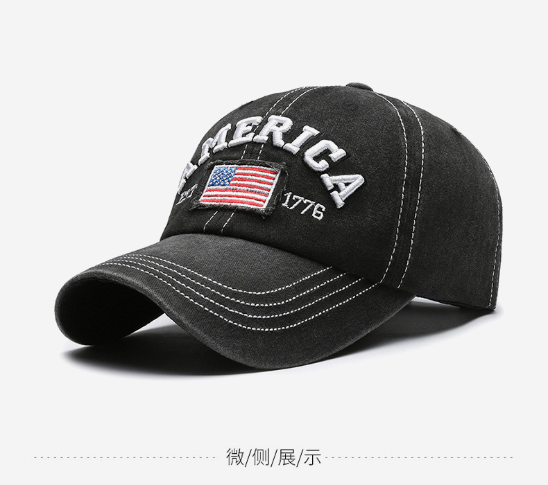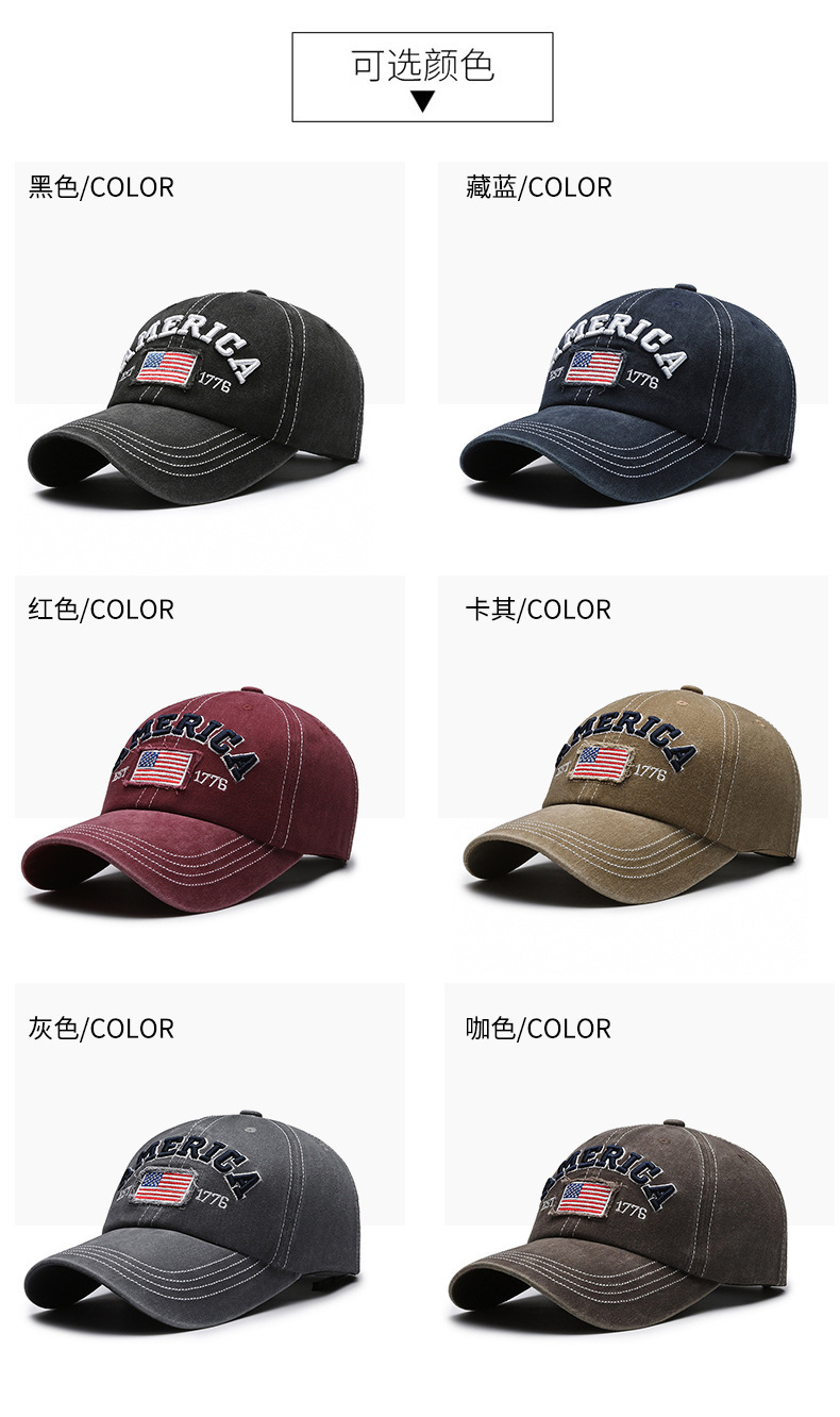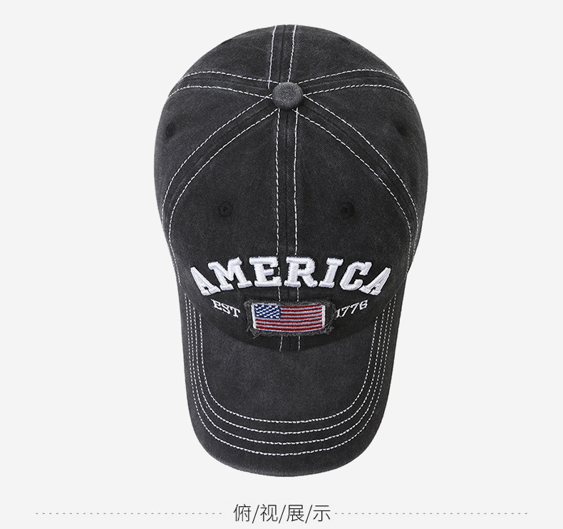 美国标志复古水洗帽子男字母刺绣遮阳帽女鸭舌帽街头学生棒球帽