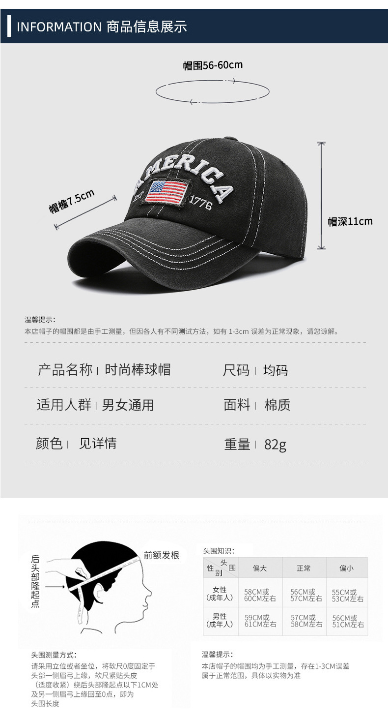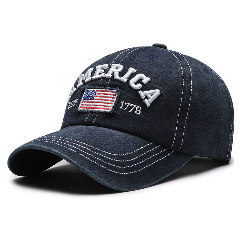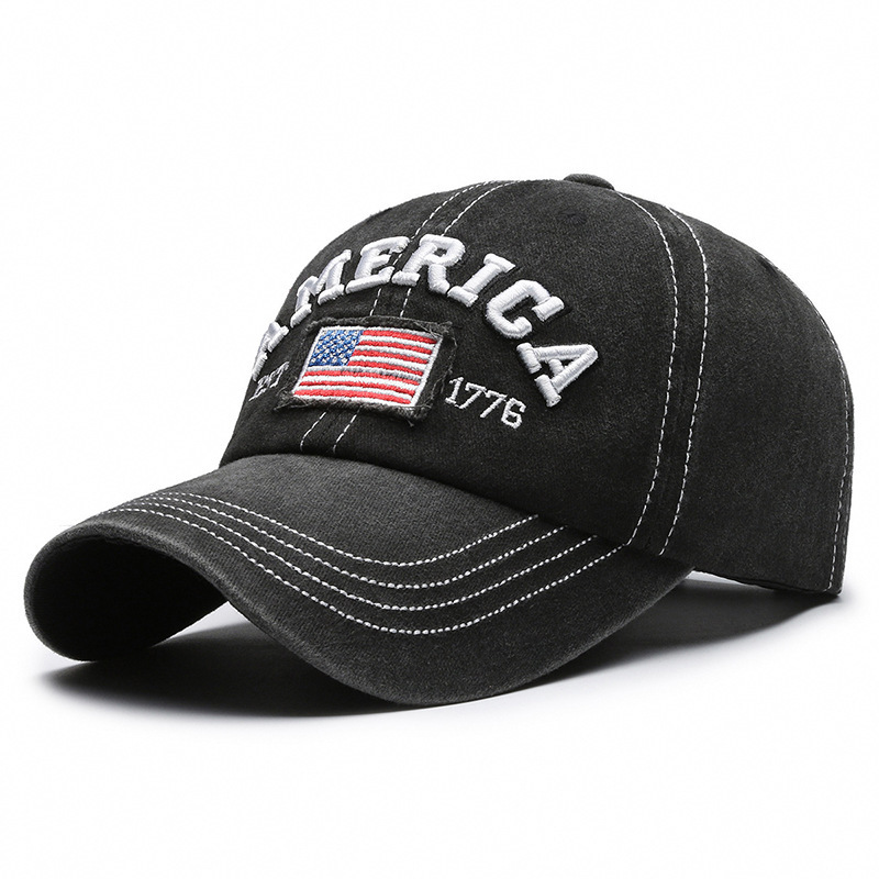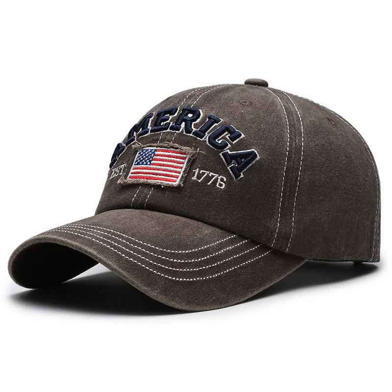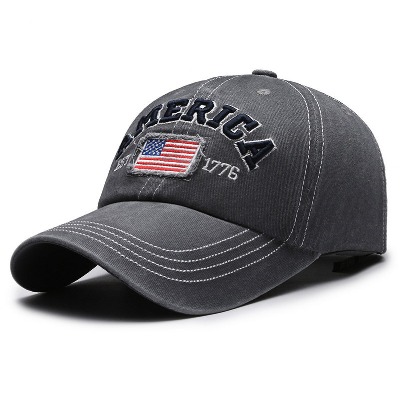 美国标志复古水洗帽子男字母刺绣遮阳帽女鸭舌帽街头学生棒球帽
