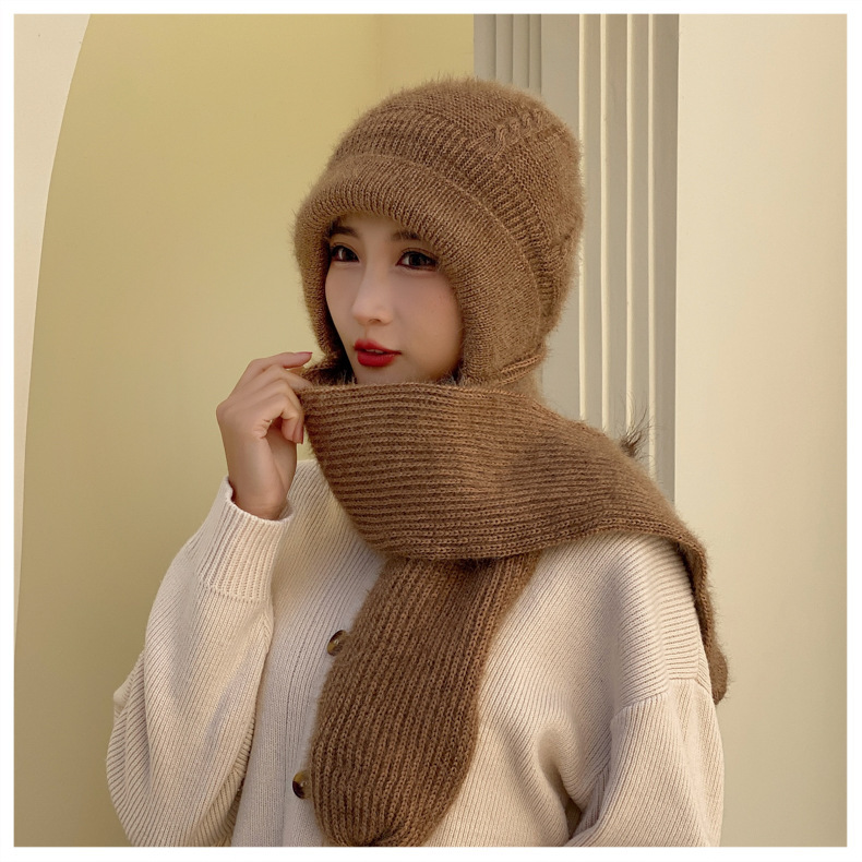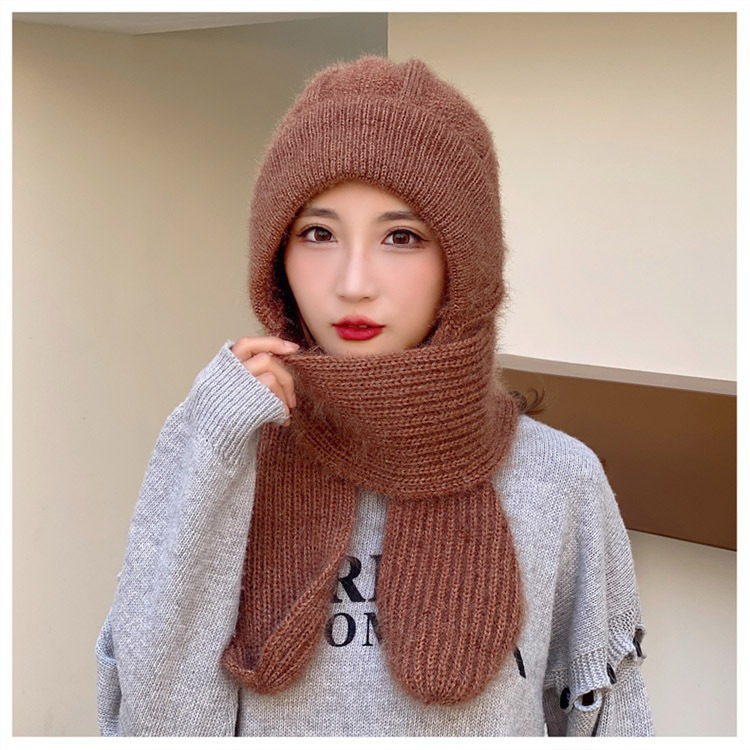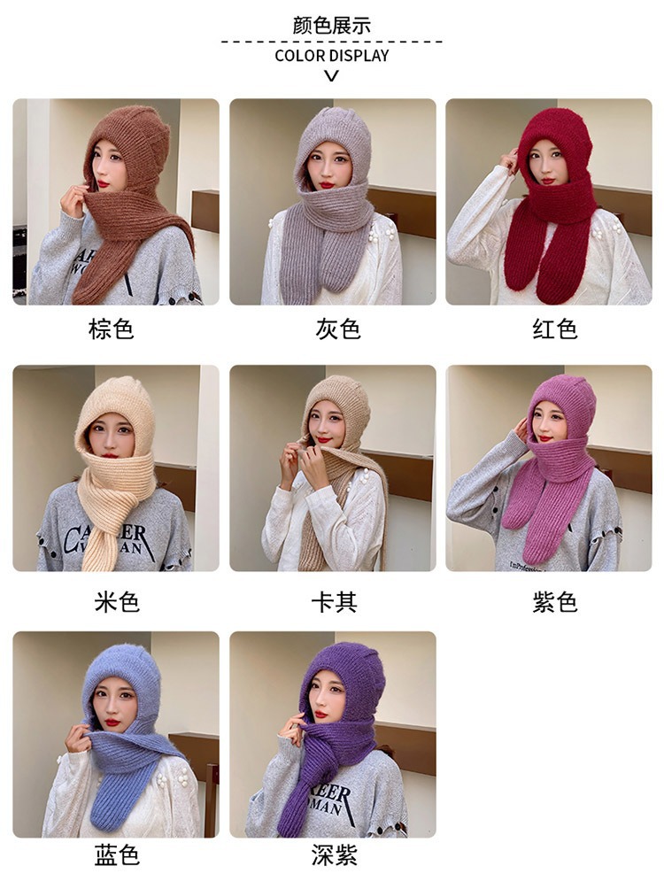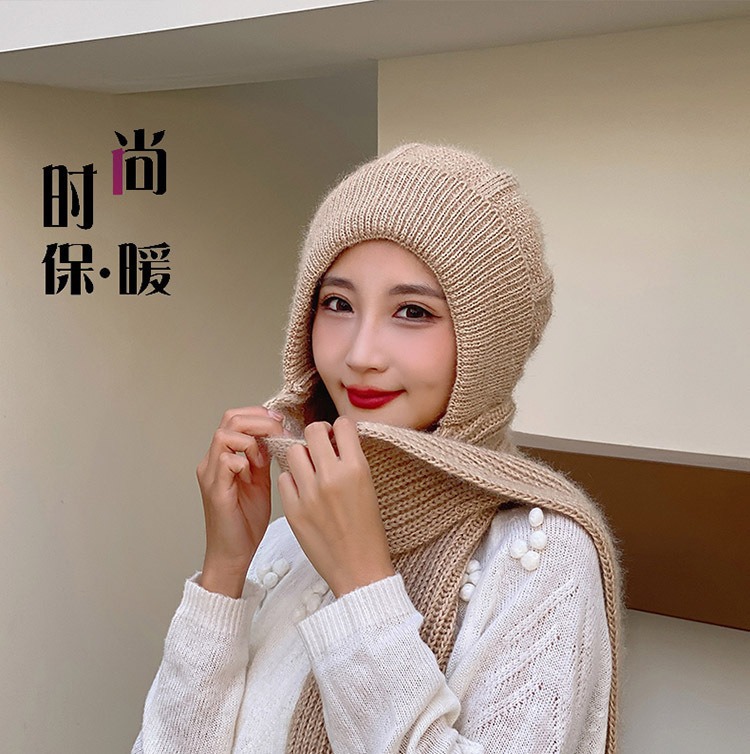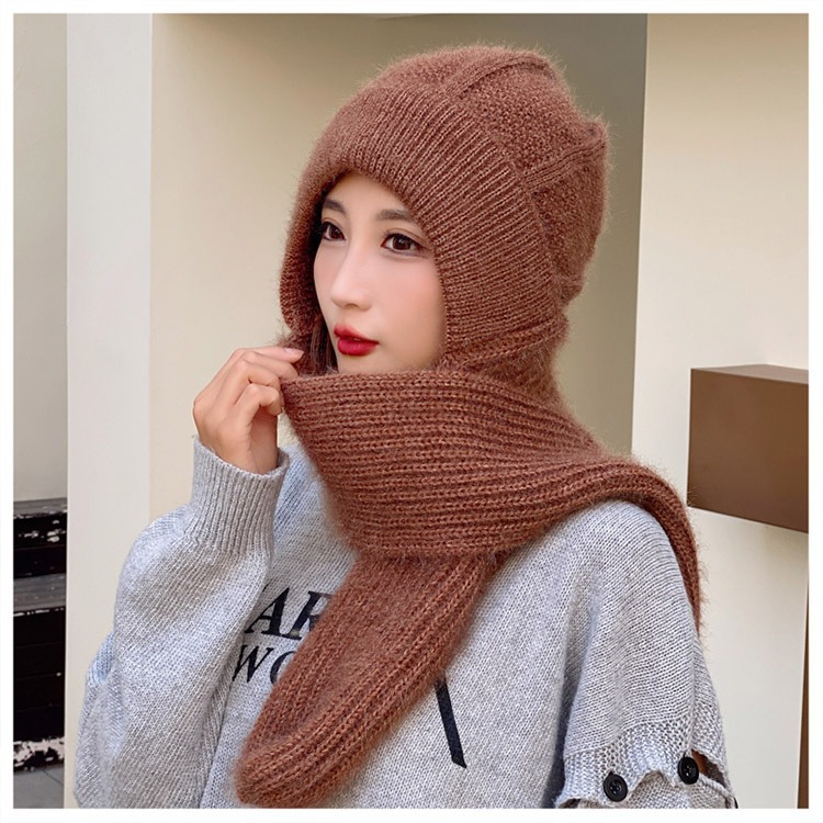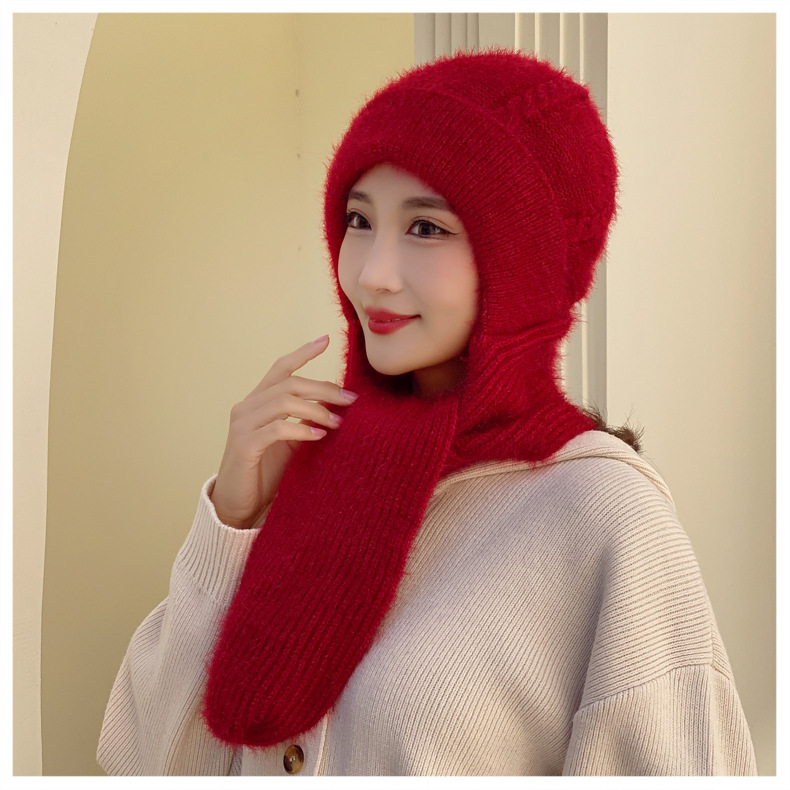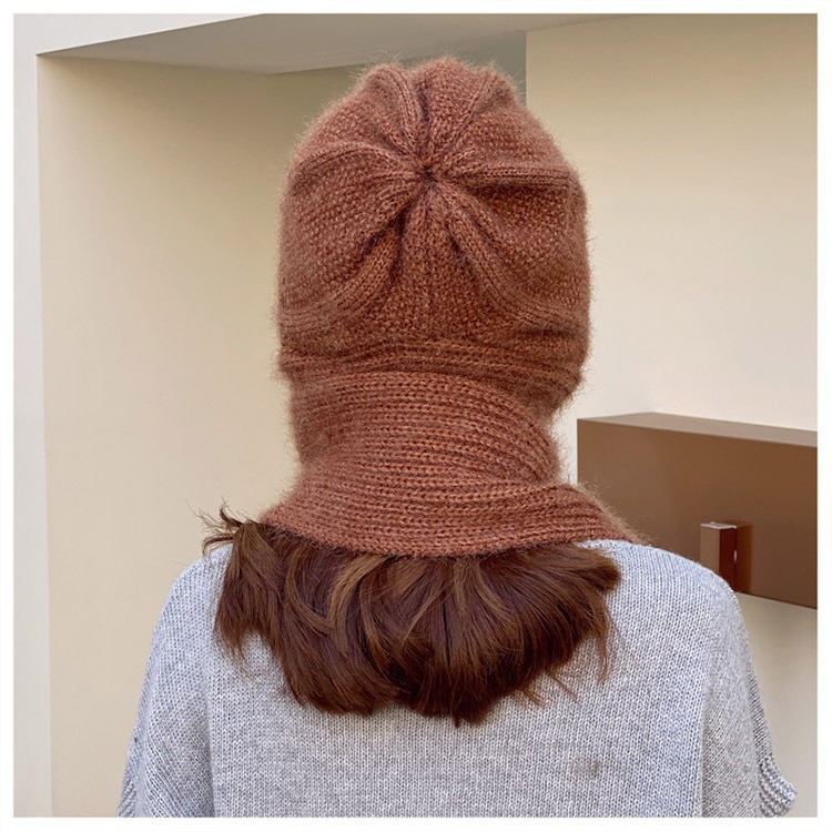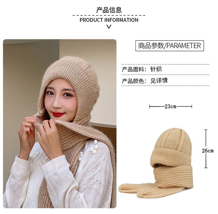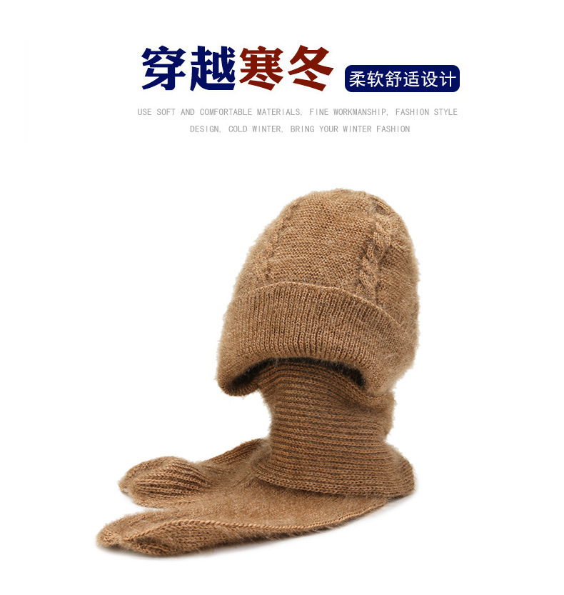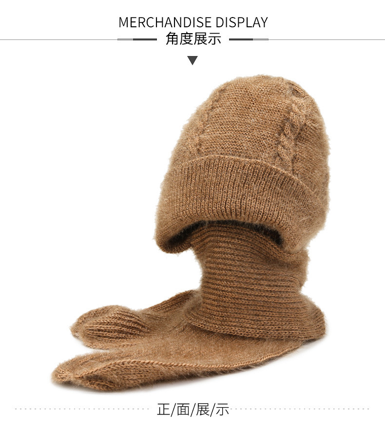 跨境帽子女冬季加绒大帽檐保暖一体护脖骑电车防风挡脸针织帽妈妈