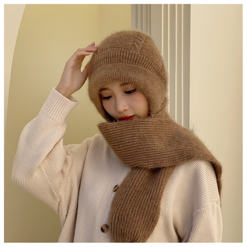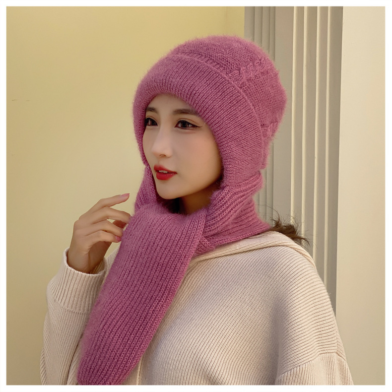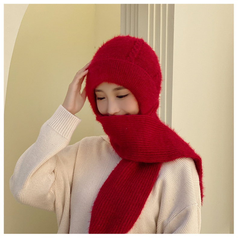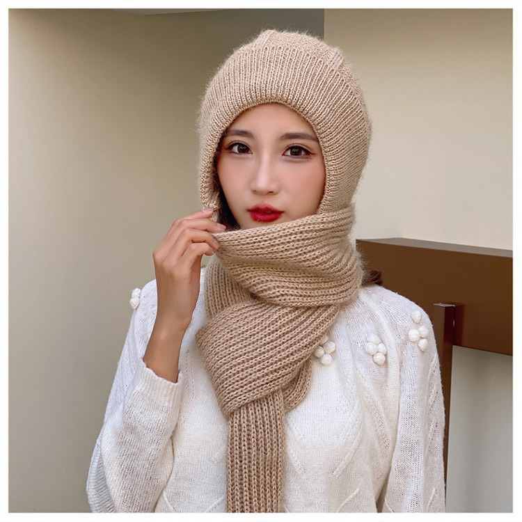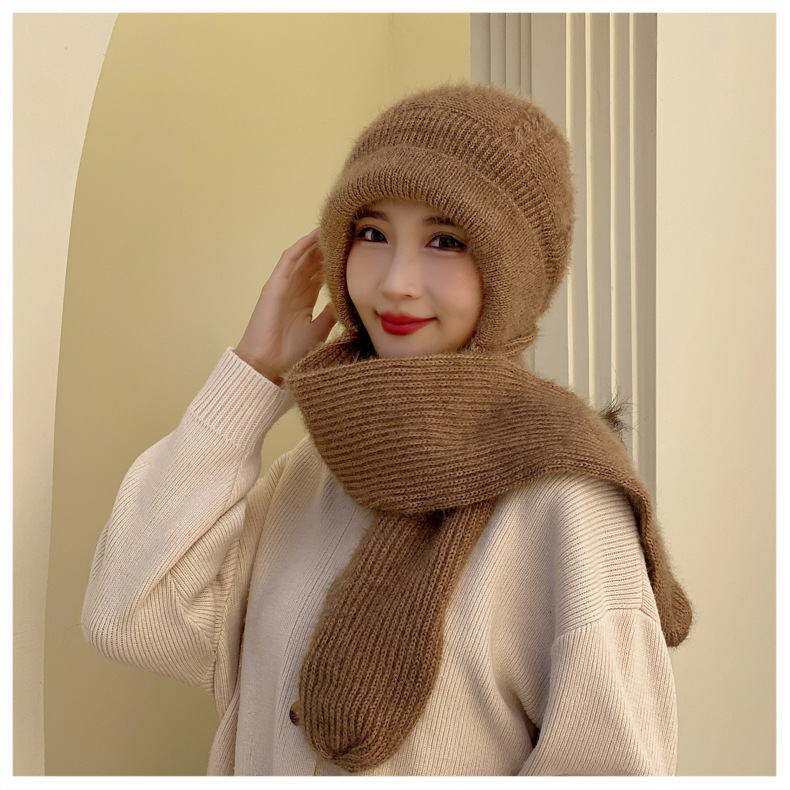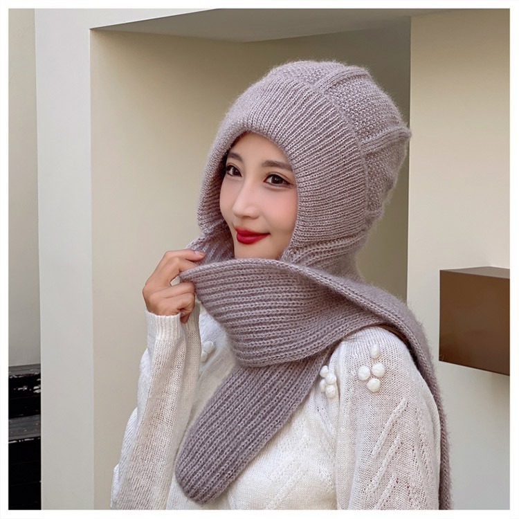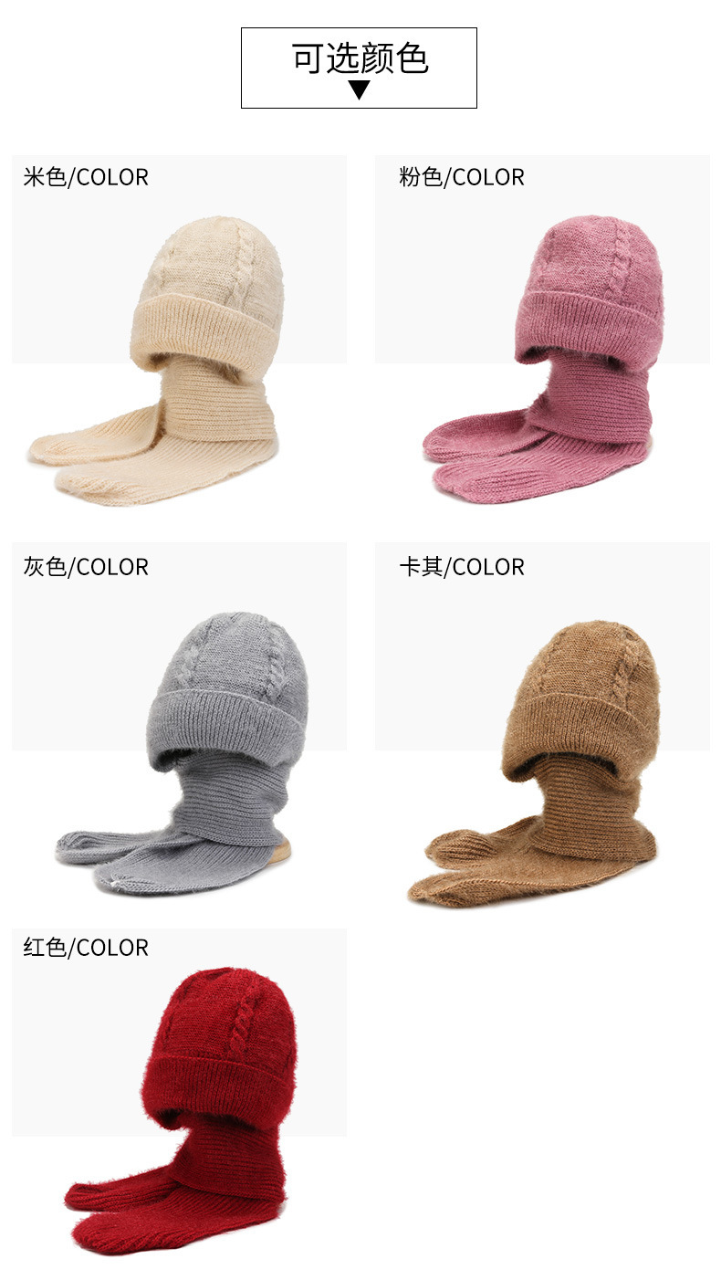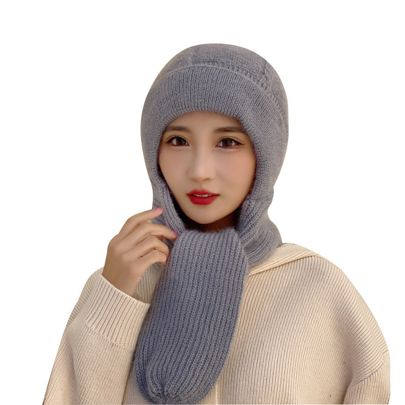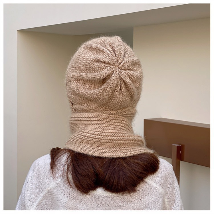 跨境帽子女冬季加绒大帽檐保暖一体护脖骑电车防风挡脸针织帽妈妈