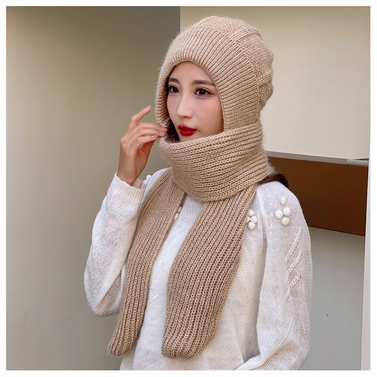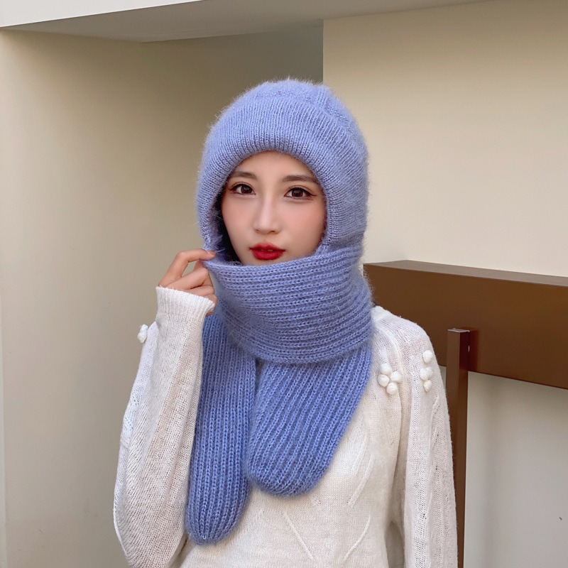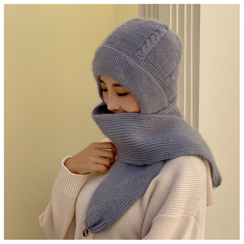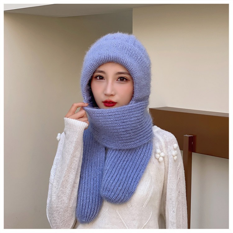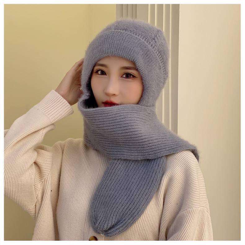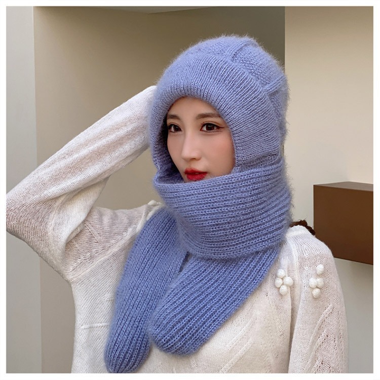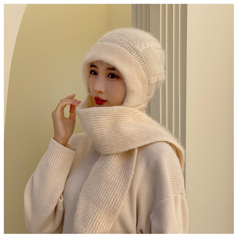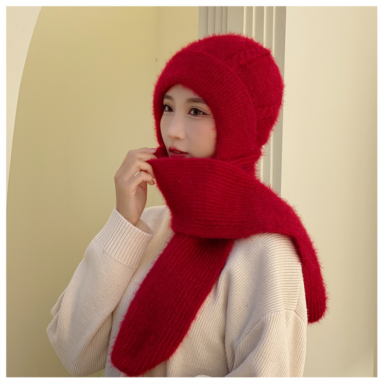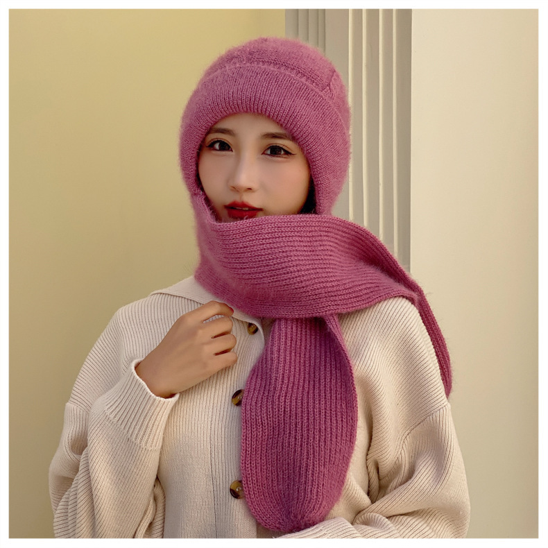 跨境帽子女冬季加绒大帽檐保暖一体护脖骑电车防风挡脸针织帽妈妈