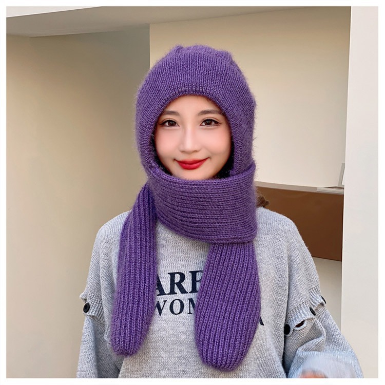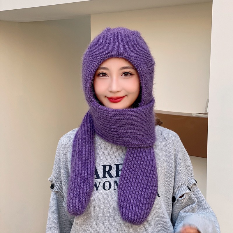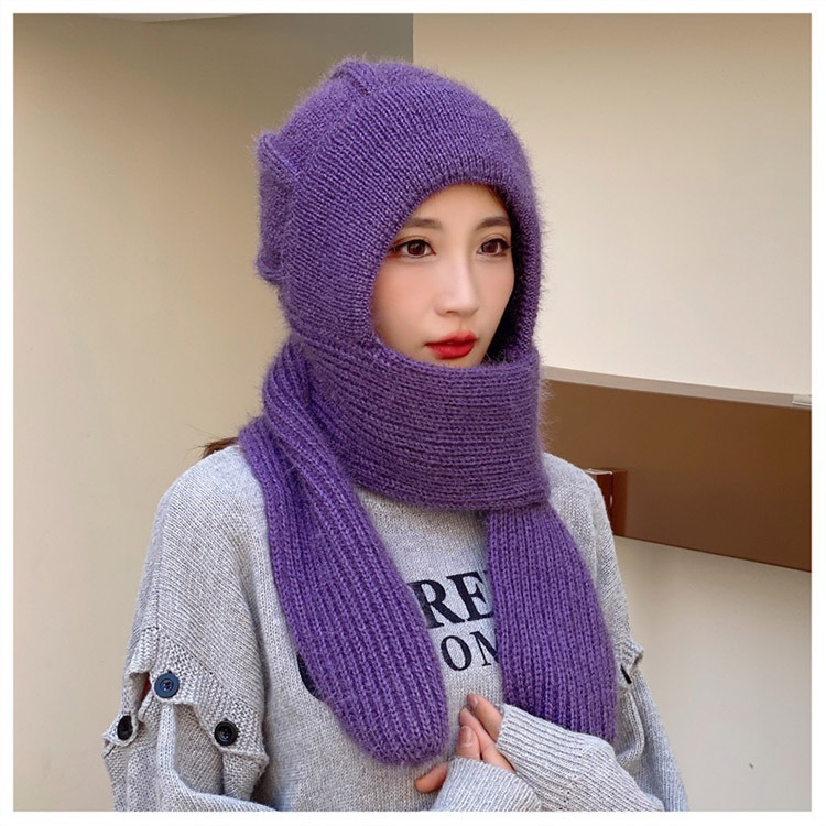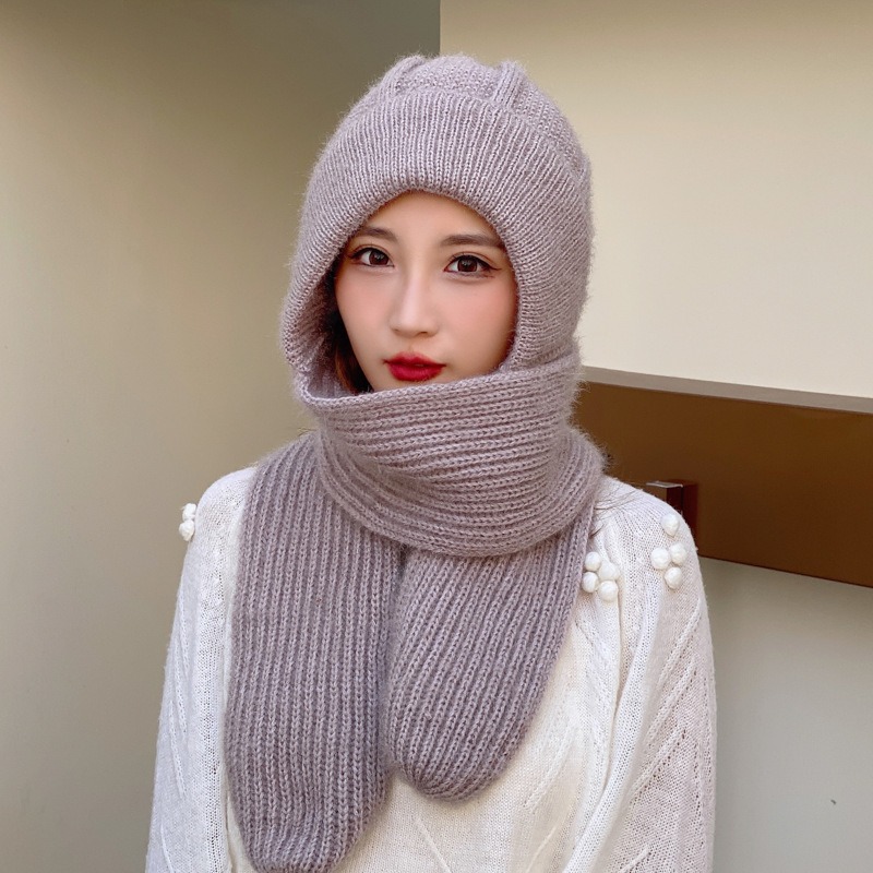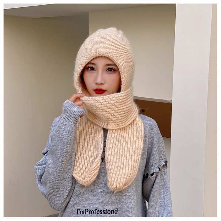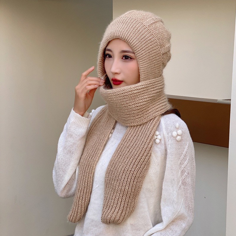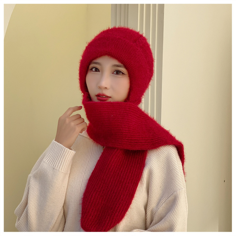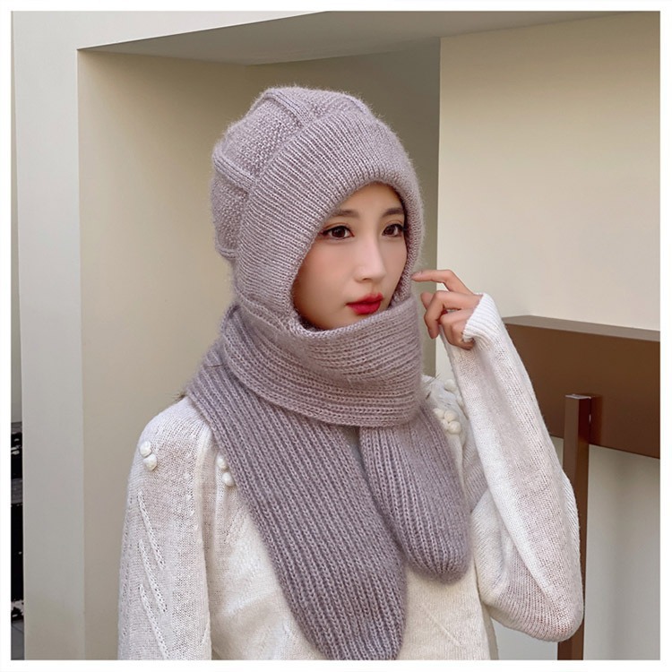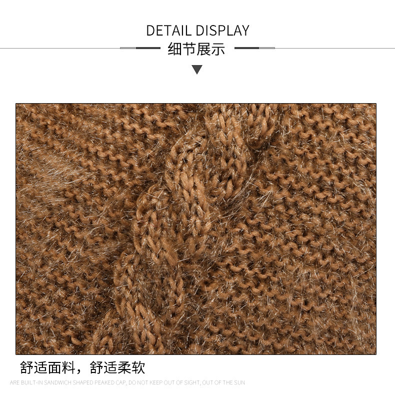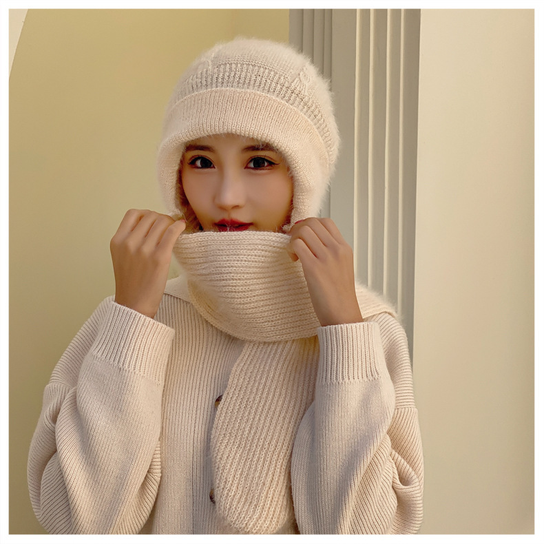跨境帽子女冬季加绒大帽檐保暖一体护脖骑电车防风挡脸针织帽妈妈