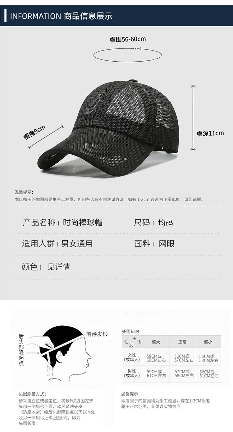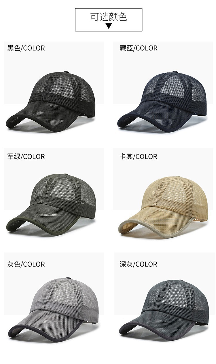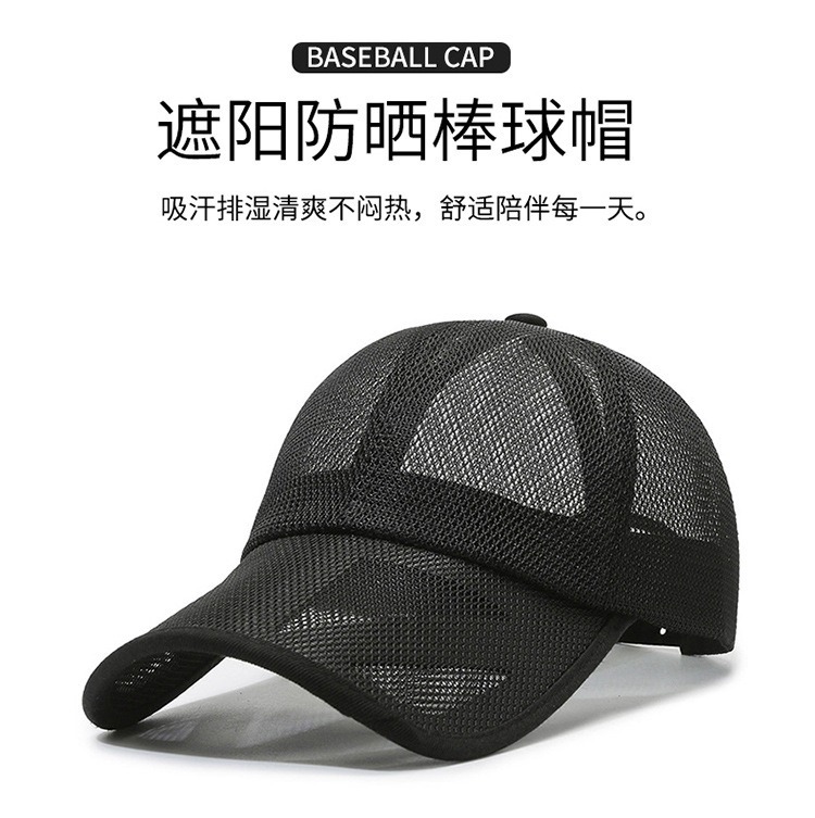 夏季帽子男士棒球帽全镂空网眼鸭舌帽遮阳防晒透气网帽大码太阳帽