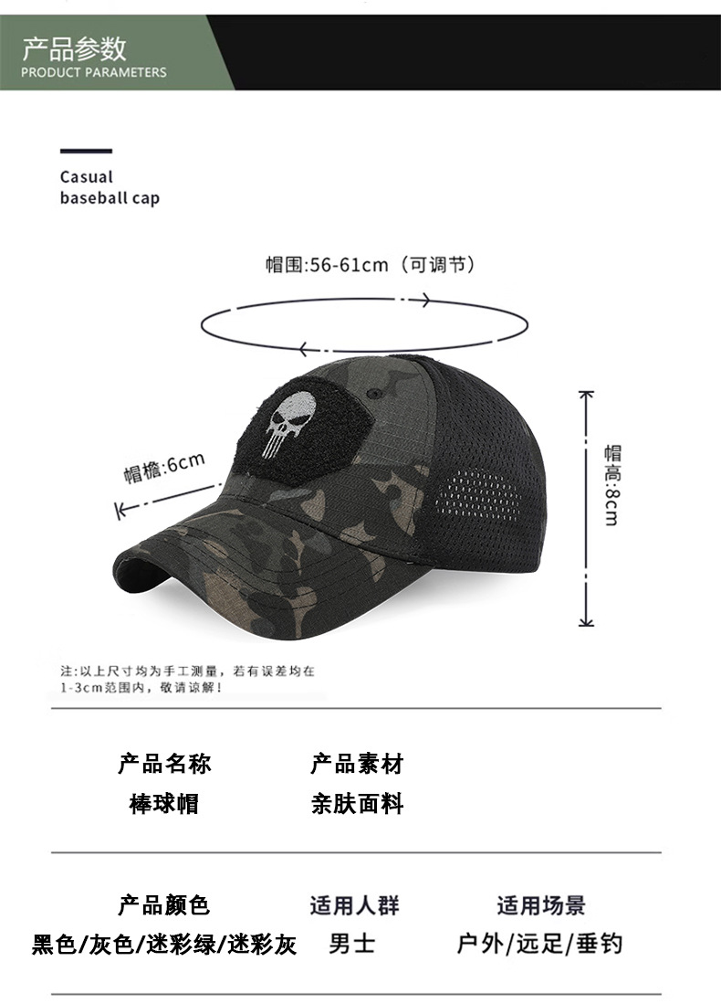 战术帽夏季奔尼帽男运动军迷帽户外休闲透气遮阳调节鸭舌帽棒球帽