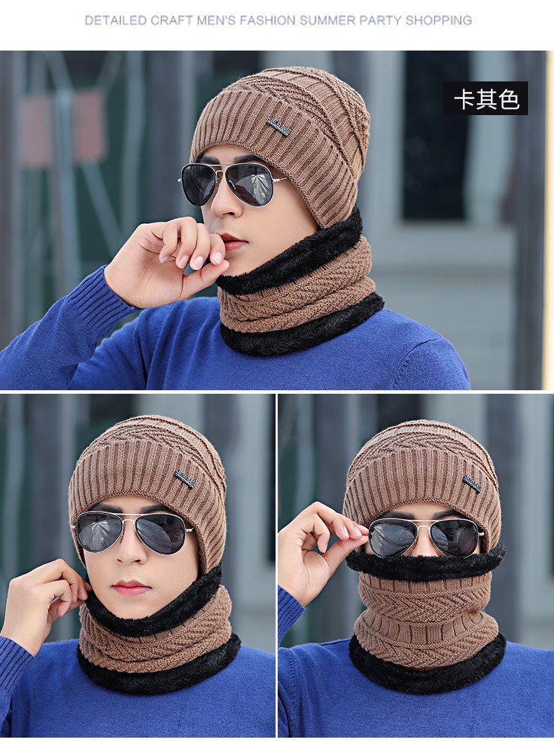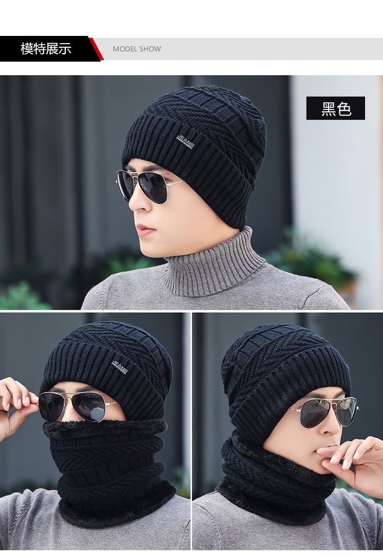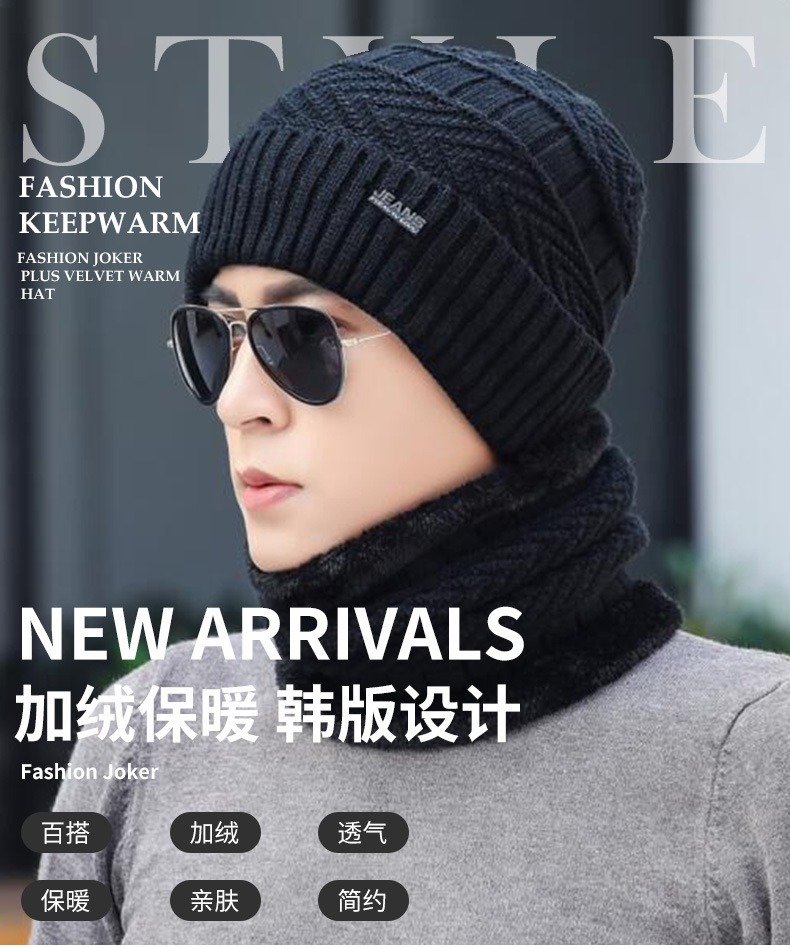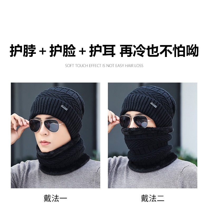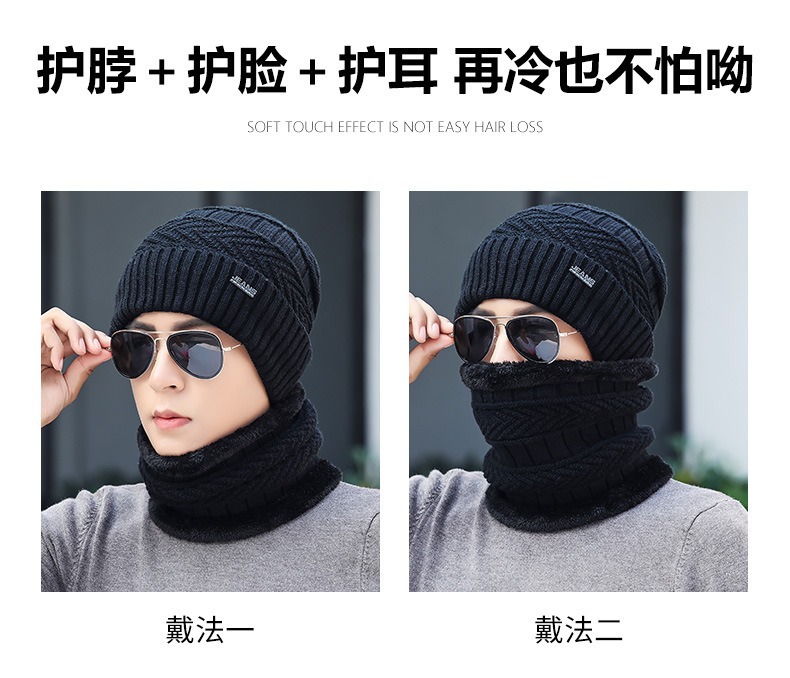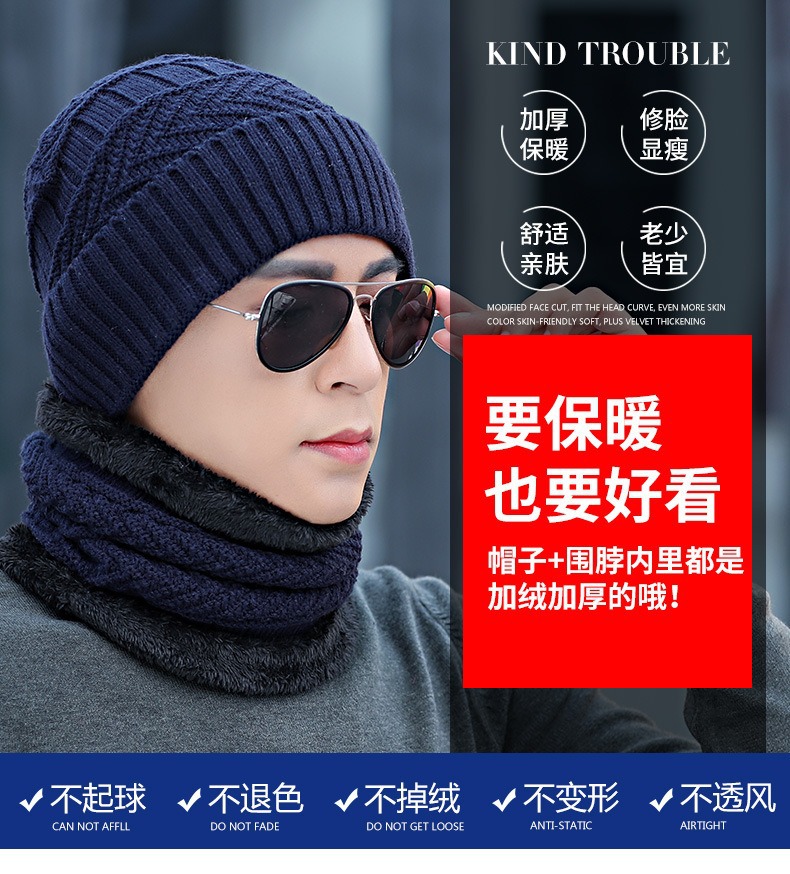 帽子围脖两件套加厚保暖加绒针织帽男户外运动骑车护耳防寒毛线帽
