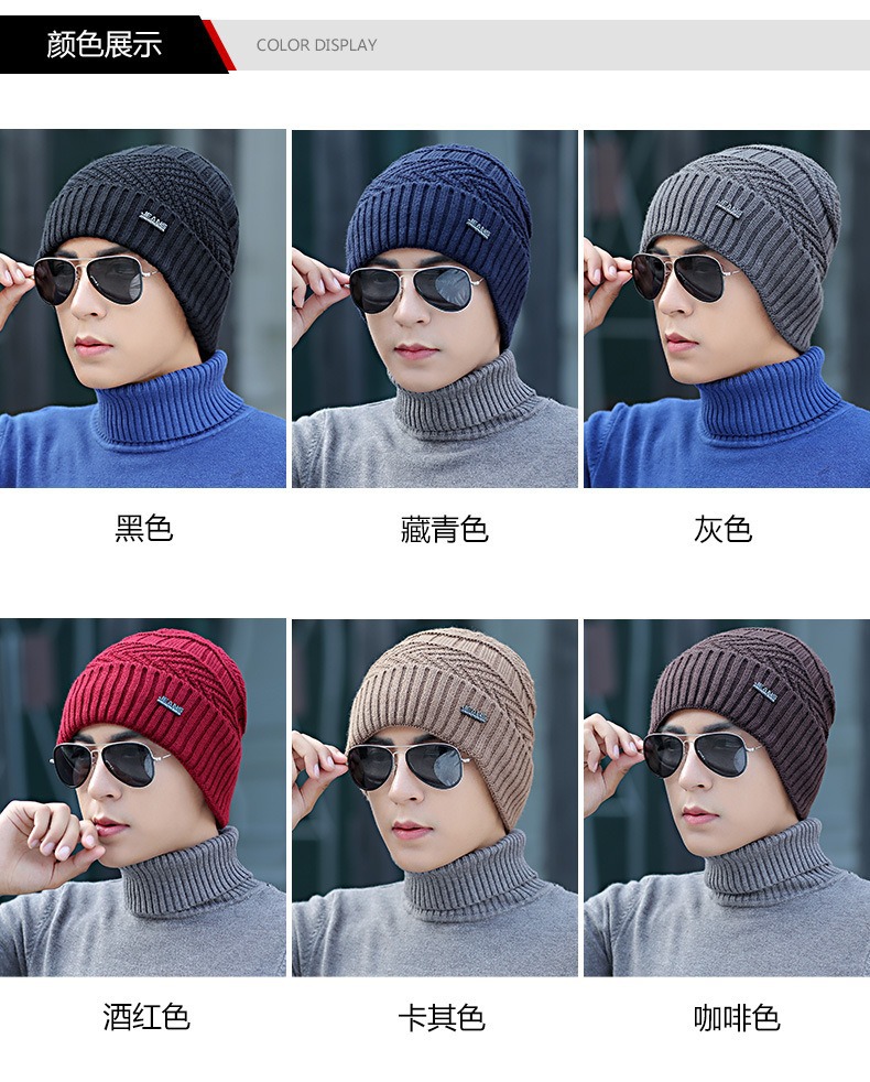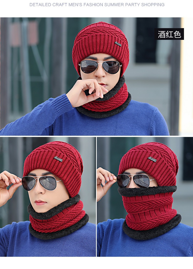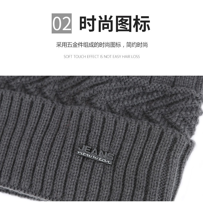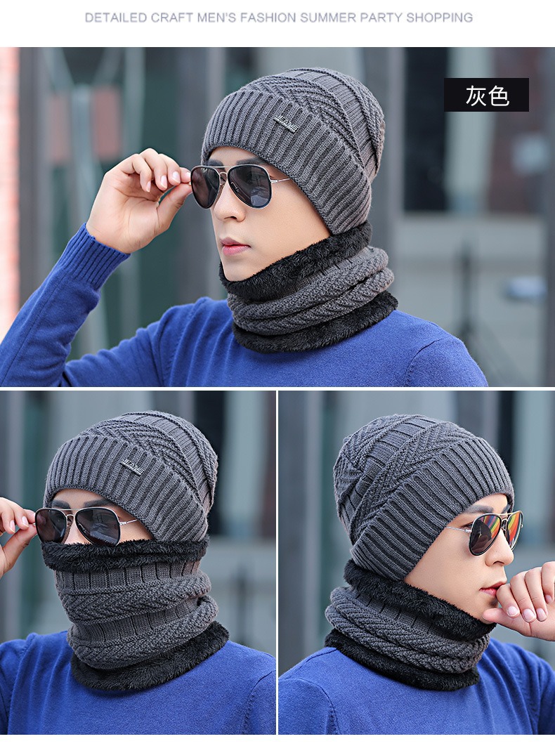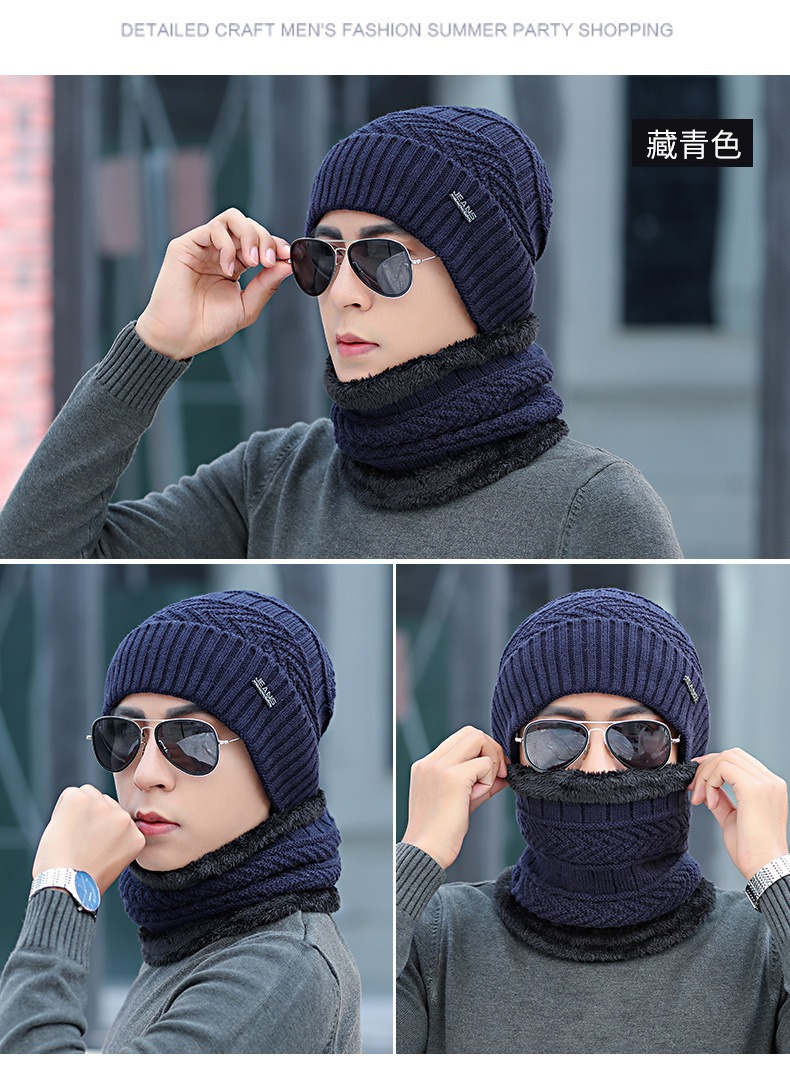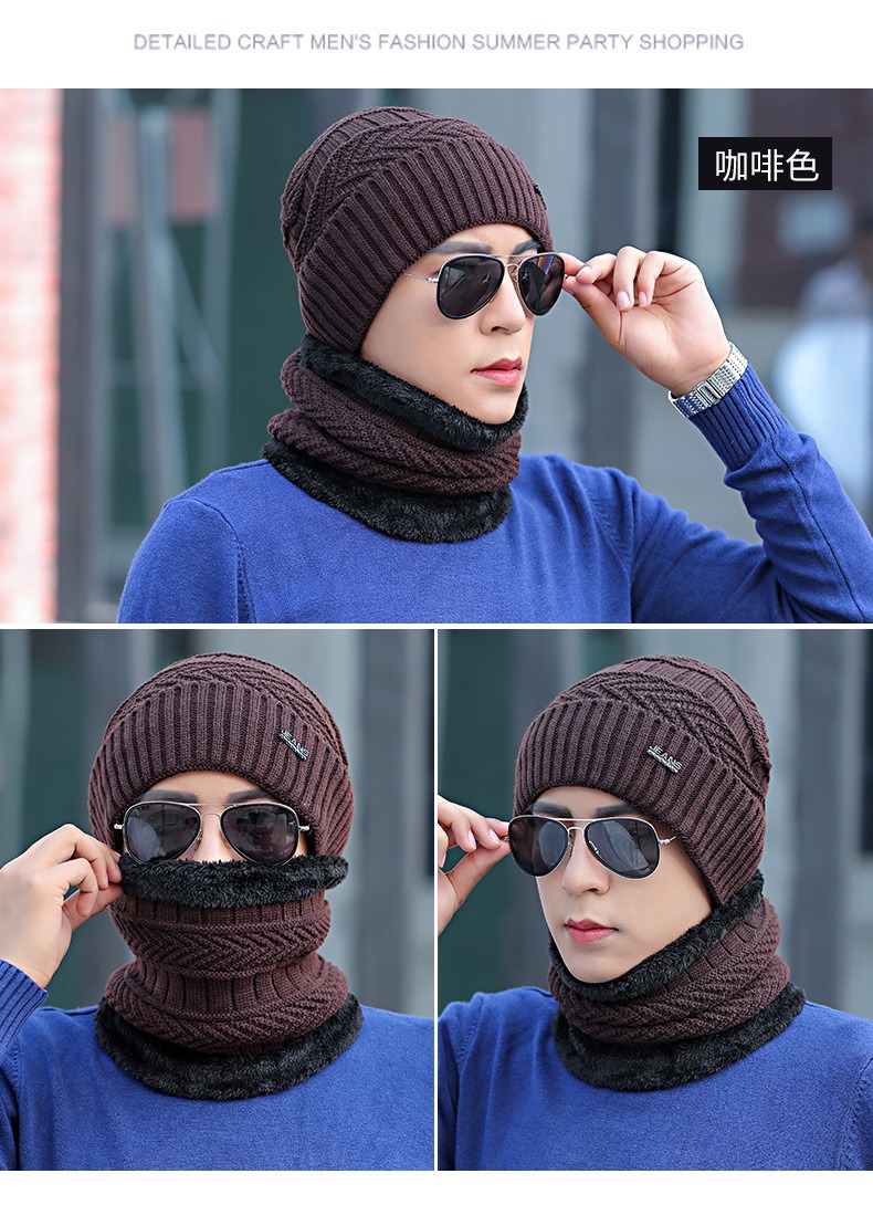 帽子围脖两件套加厚保暖加绒针织帽男户外运动骑车护耳防寒毛线帽