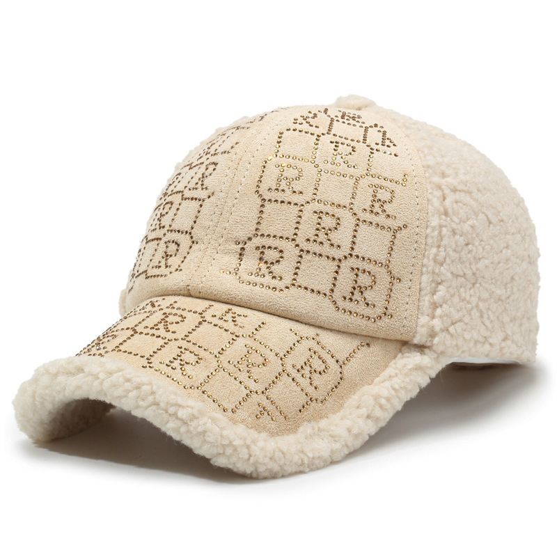 镶钻羊羔毛宽帽檐棒球帽户外保暖鸭舌帽跨境新款女士时尚秋冬季潮