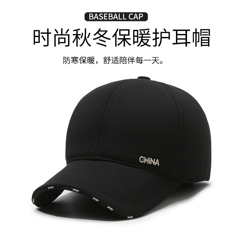 楼梯布帽子男士冬季保暖加绒鸭舌帽中老年休闲护耳棒球帽男士棉帽