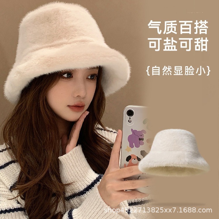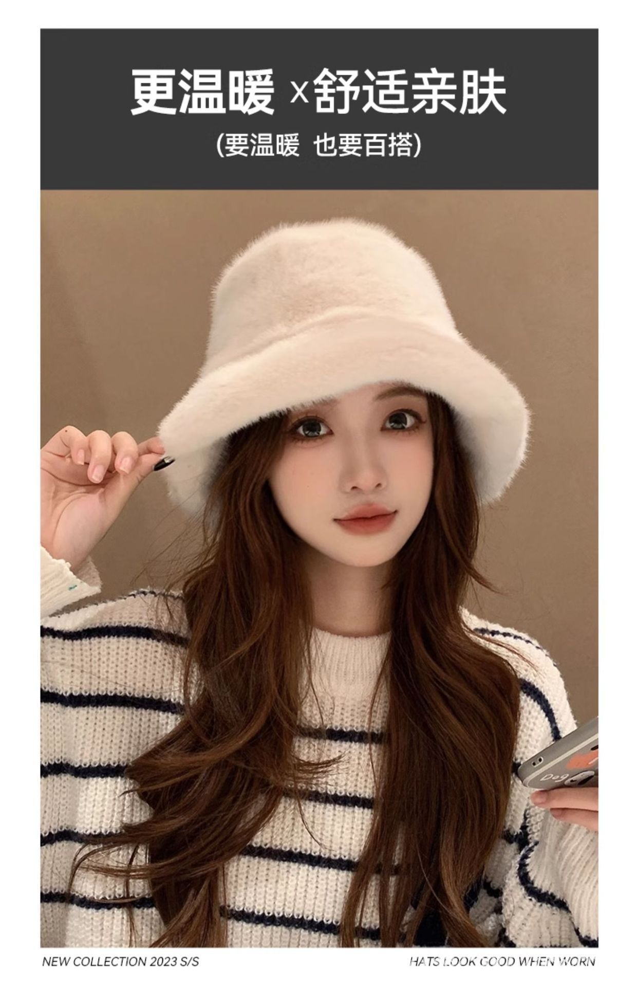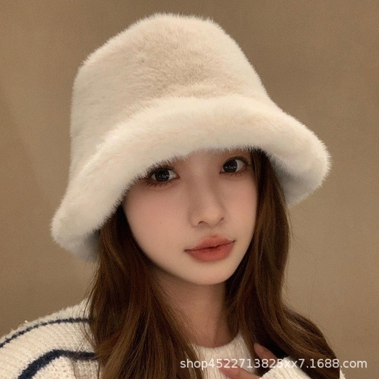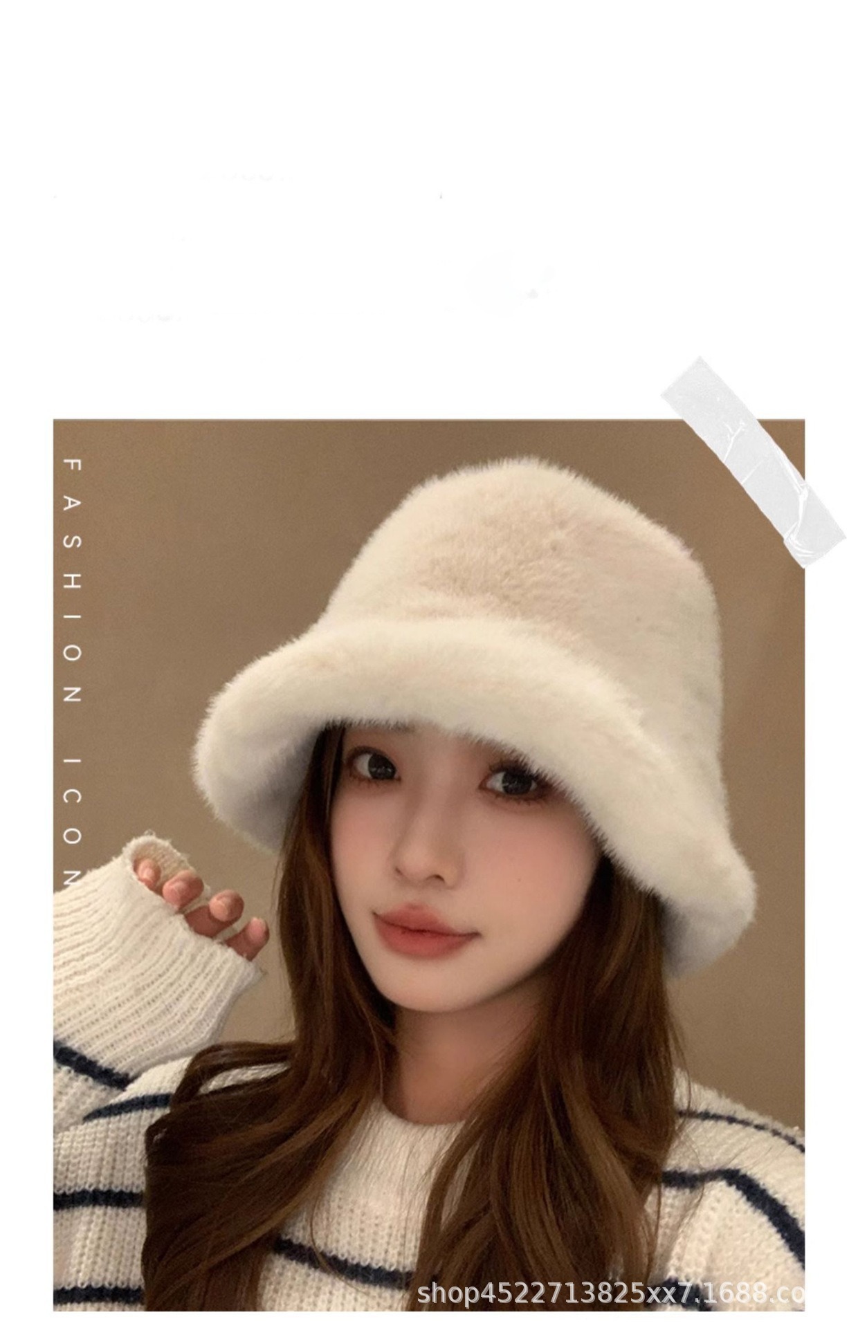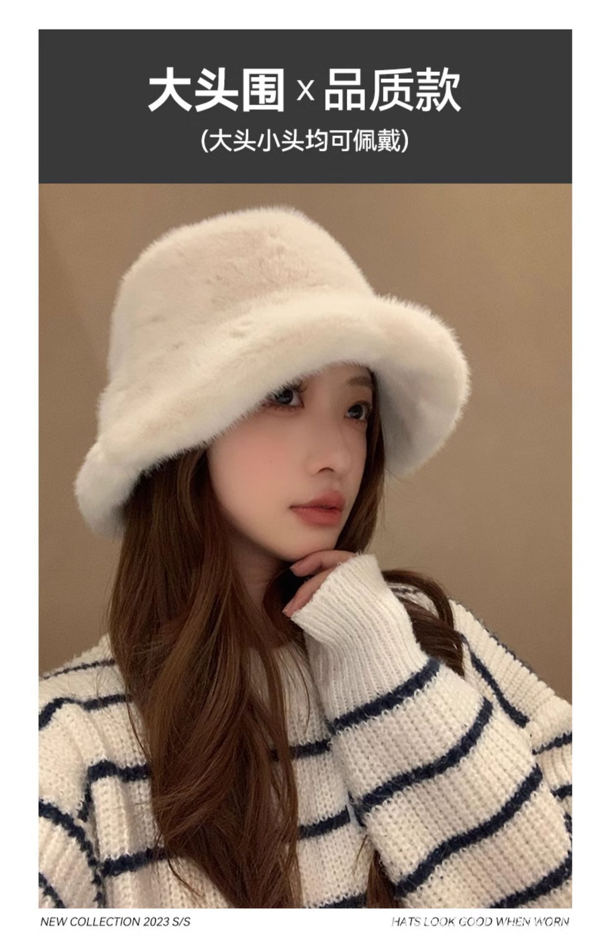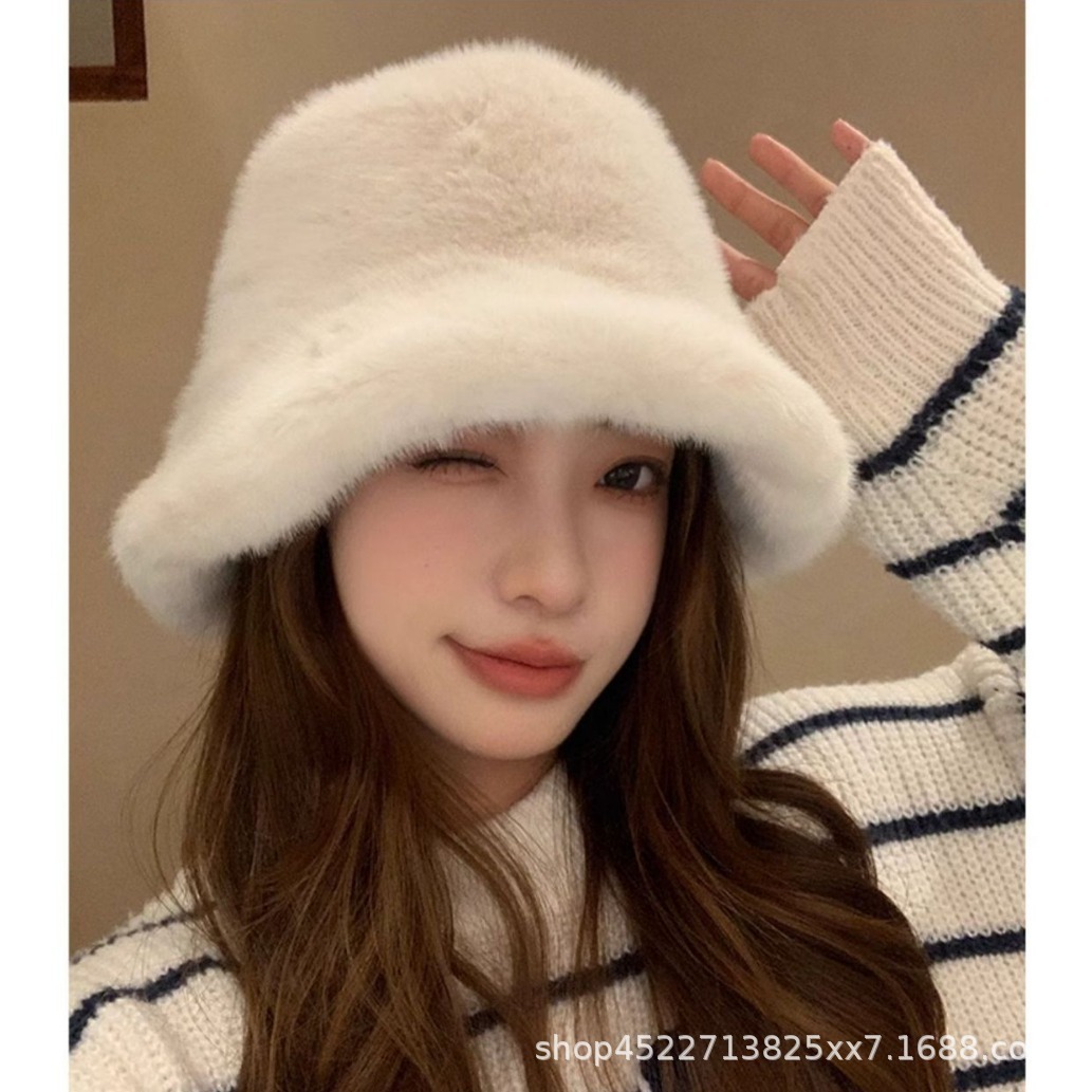 新款毛绒帽子女冬季可爱加厚保暖时尚洋气小熊猫耳朵护耳仿皮草貂