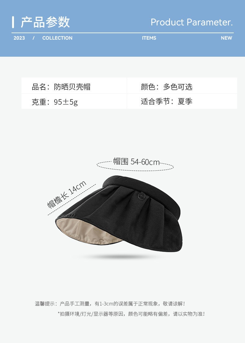 大帽檐防晒帽夏季遮阳帽女款可折叠空顶太阳帽贝壳帽遮阳沙滩时尚