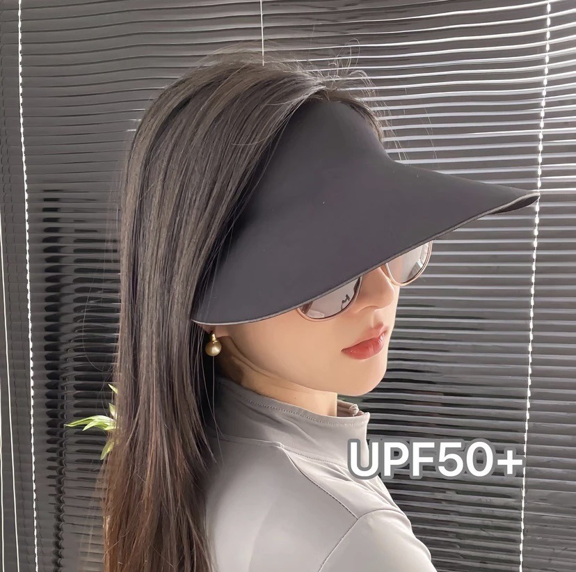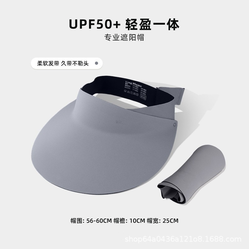 UPF50+大帽檐防晒帽女空顶户外运动遮阳帽一体无痕软发带夏新款男