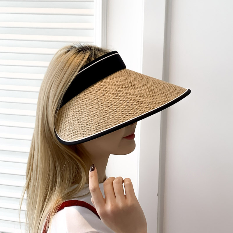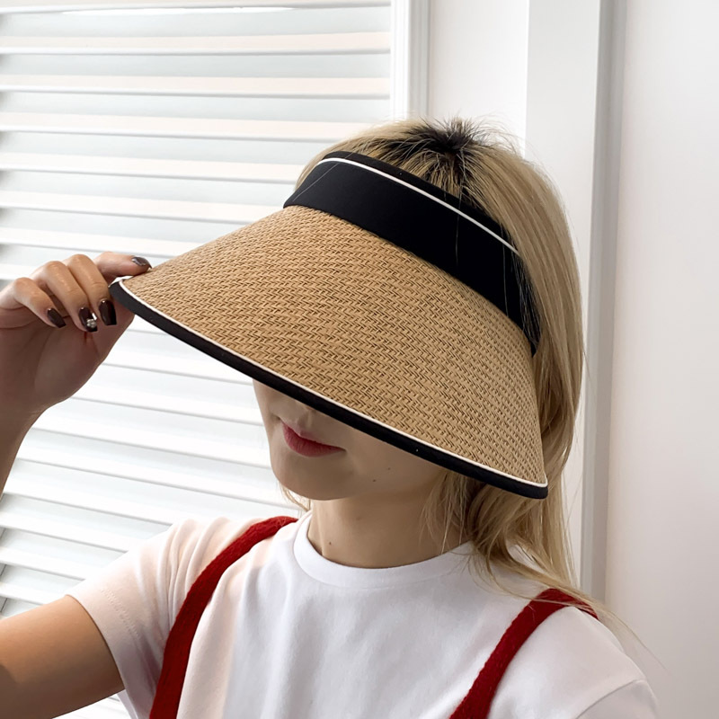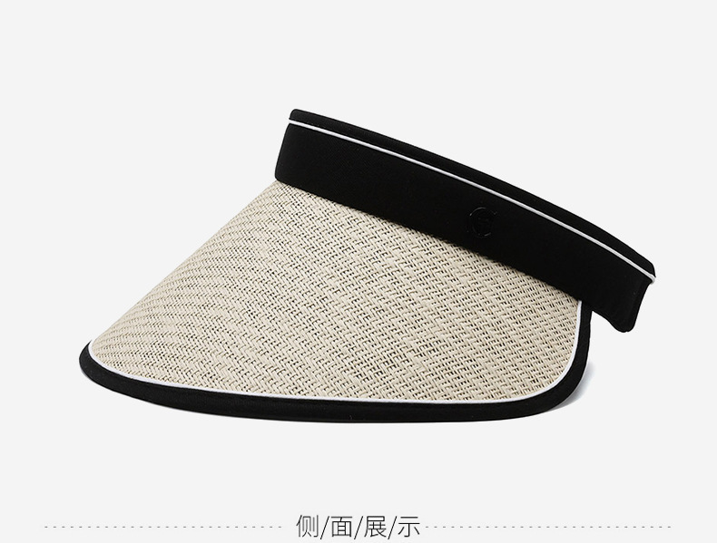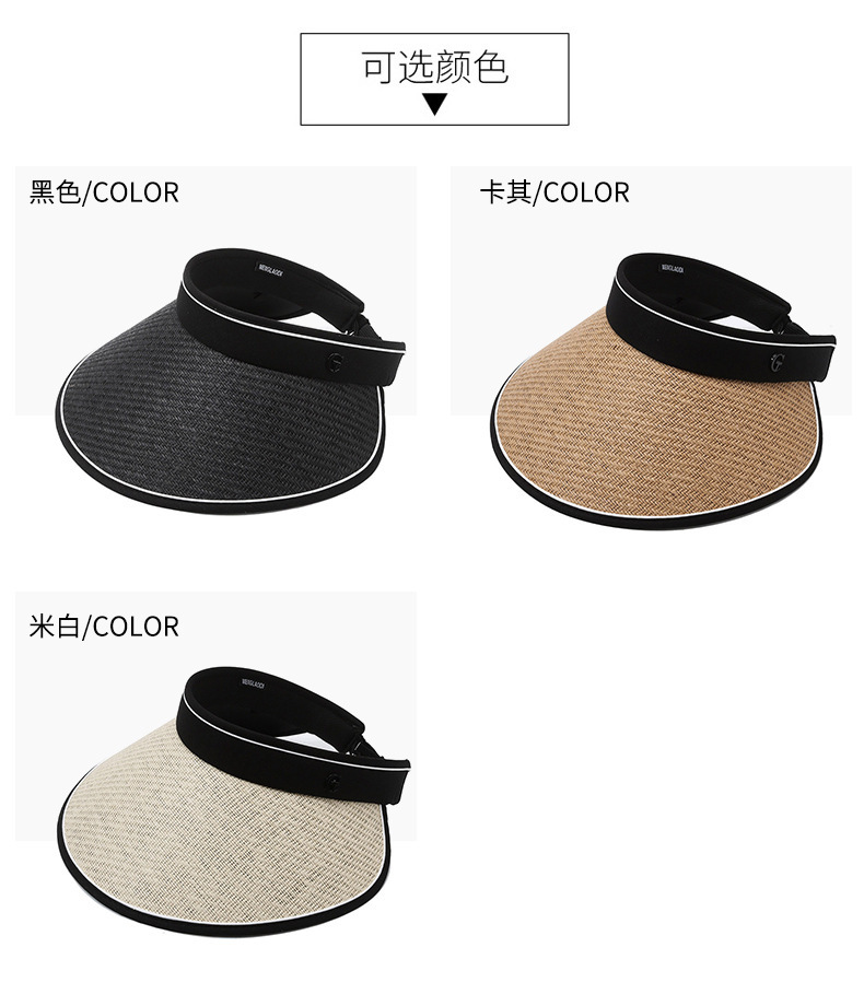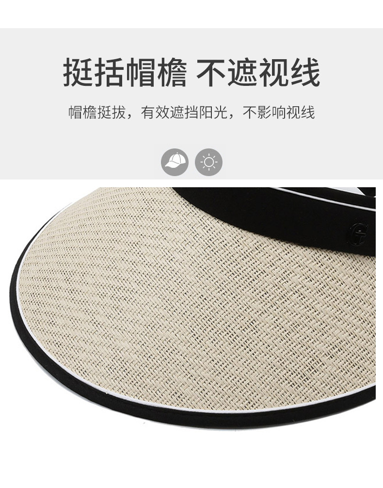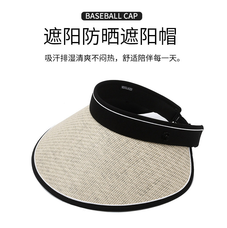 空顶遮阳防晒帽女夏季拉菲草加宽大帽檐遮脸棒球帽大头围太阳帽潮