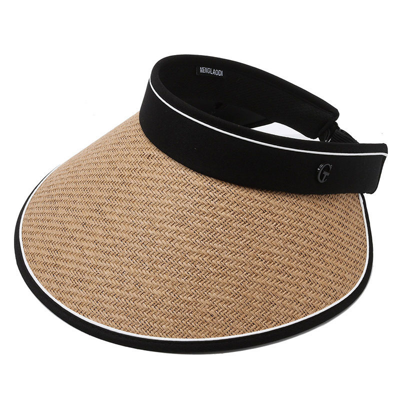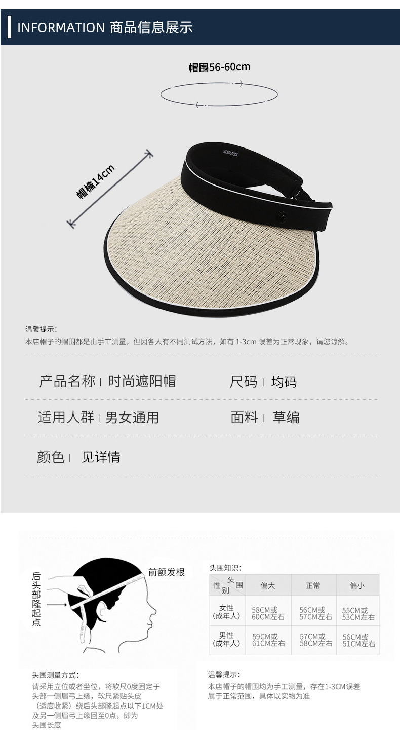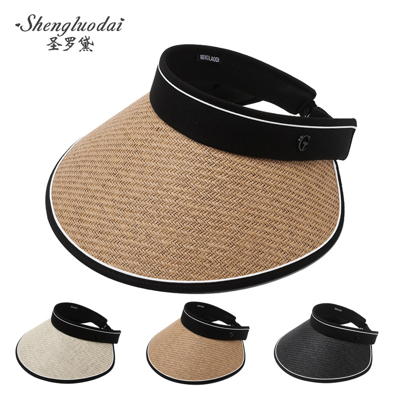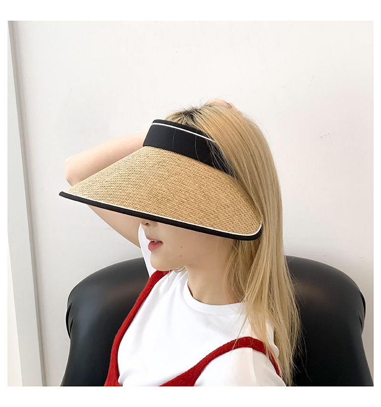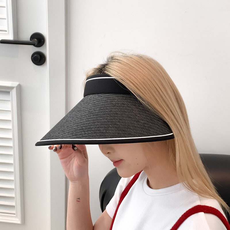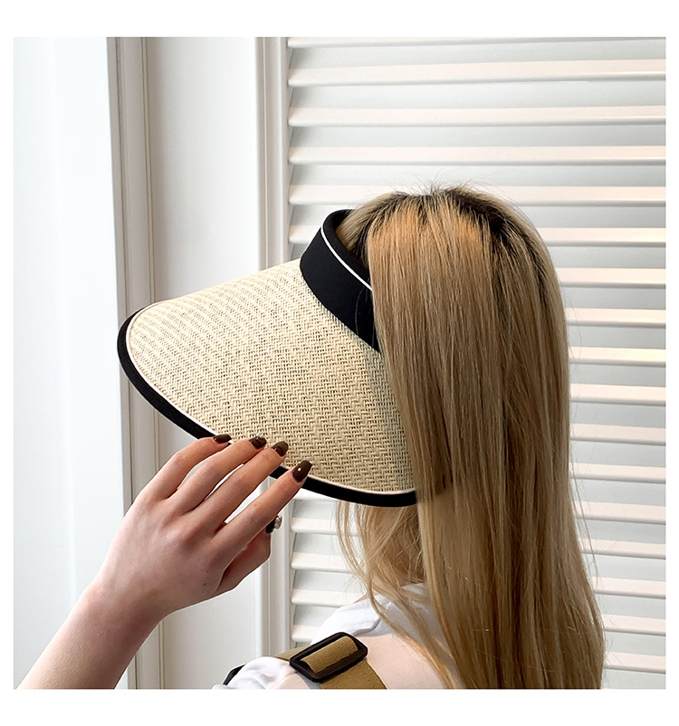 空顶遮阳防晒帽女夏季拉菲草加宽大帽檐遮脸棒球帽大头围太阳帽潮