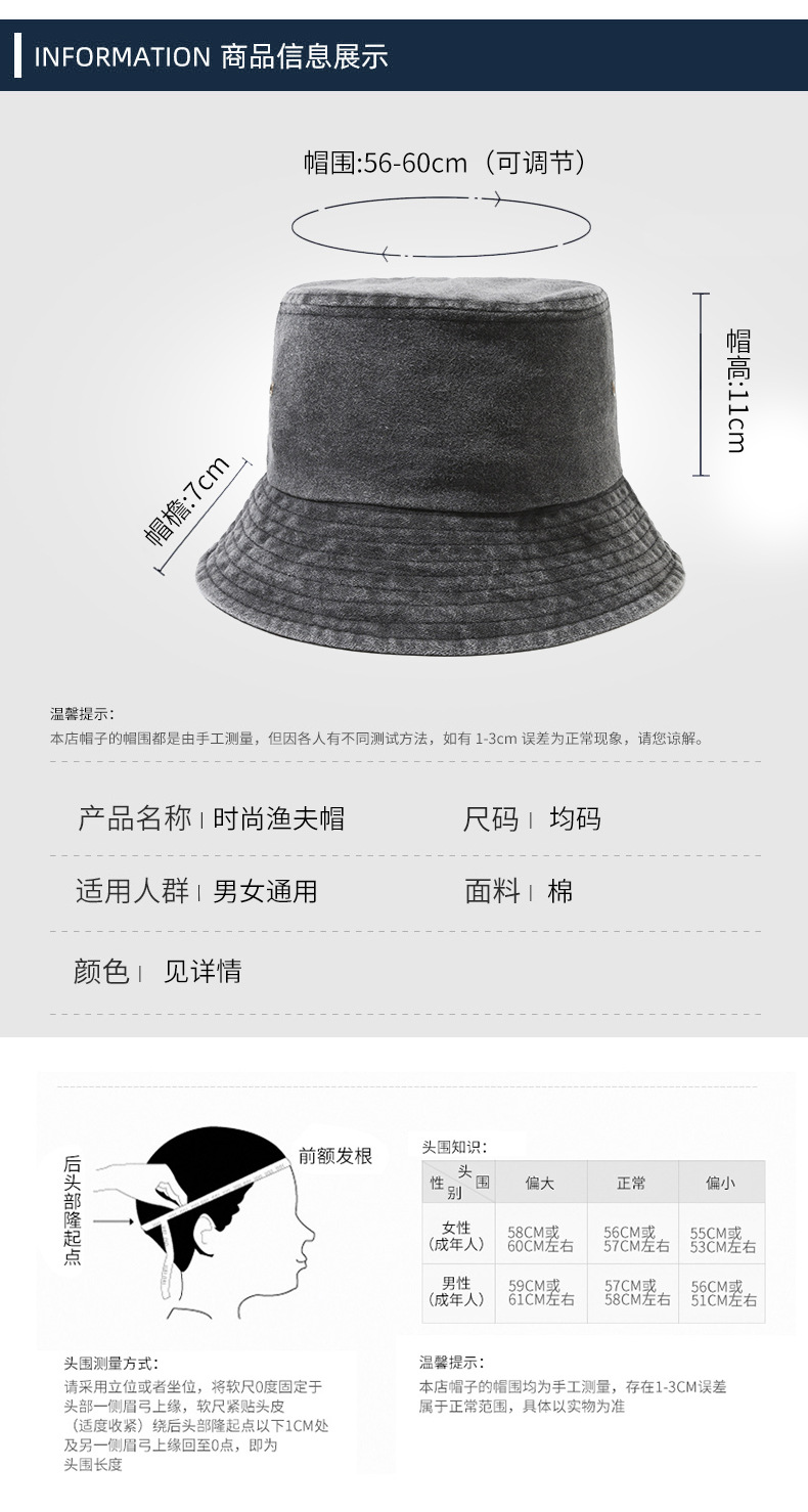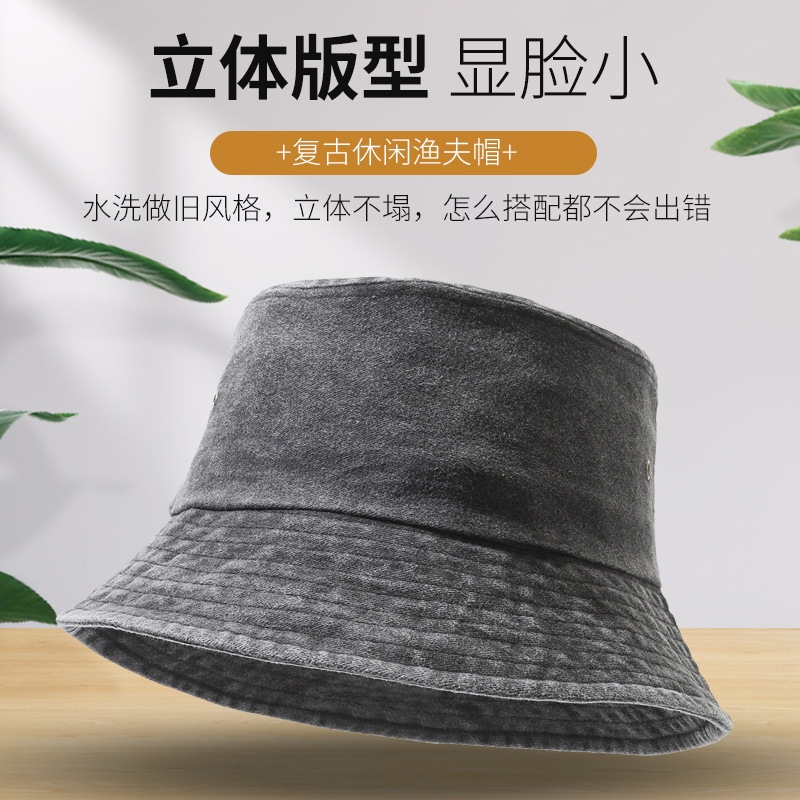 春秋款水洗牛仔布渔夫帽百搭防晒太阳帽情侣男女日系时尚光板盆帽