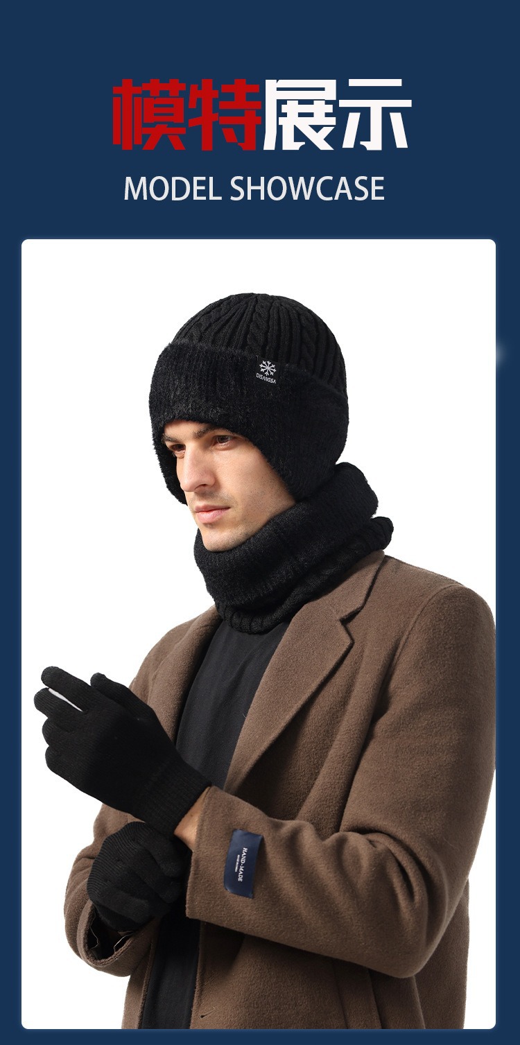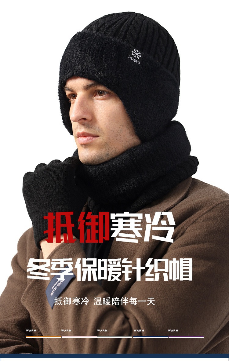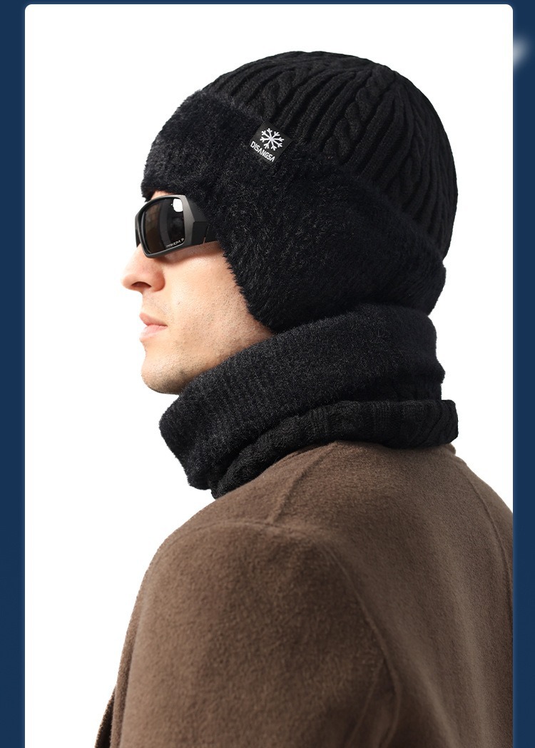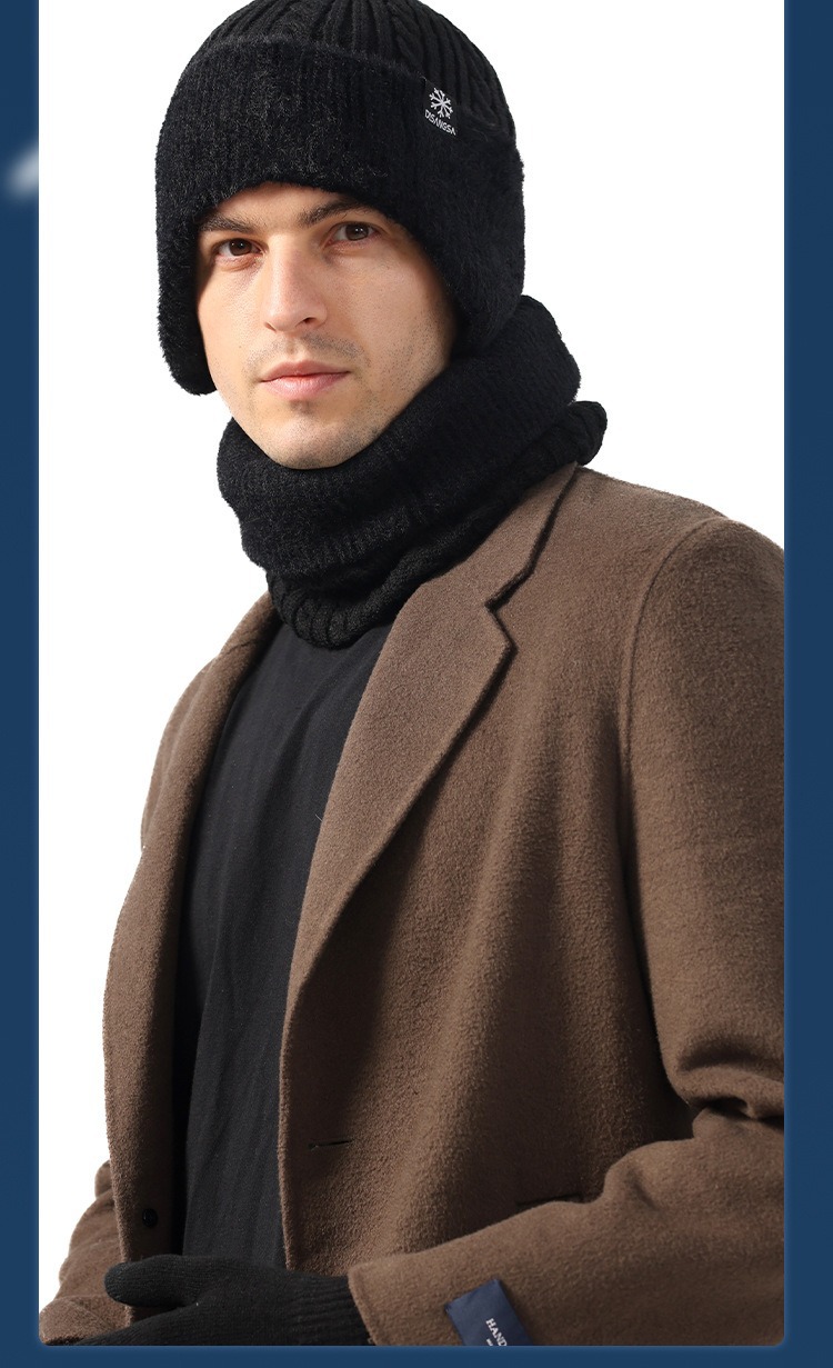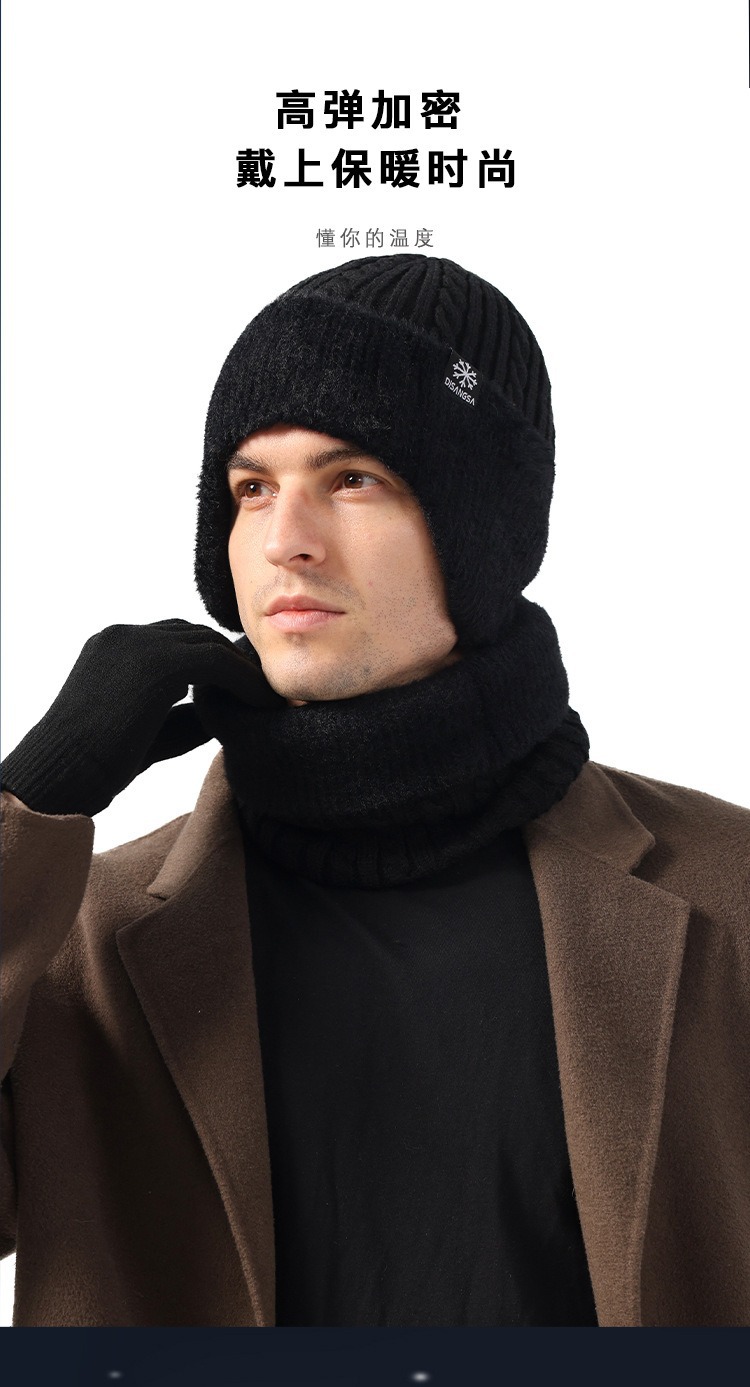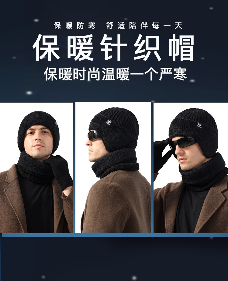新款毛线帽子男士冬天加厚护耳围脖两件套装骑车抗寒保暖针织帽