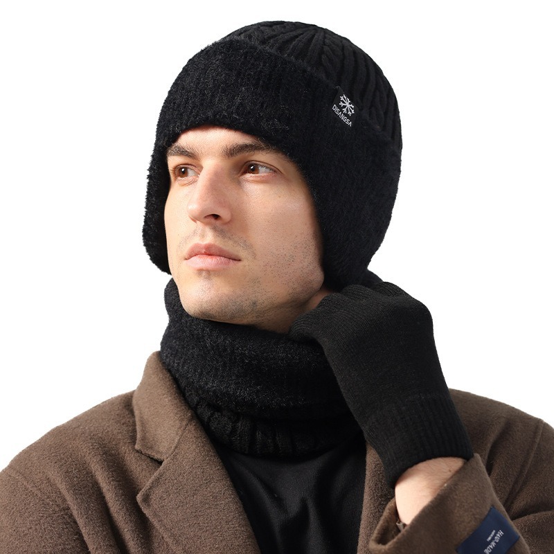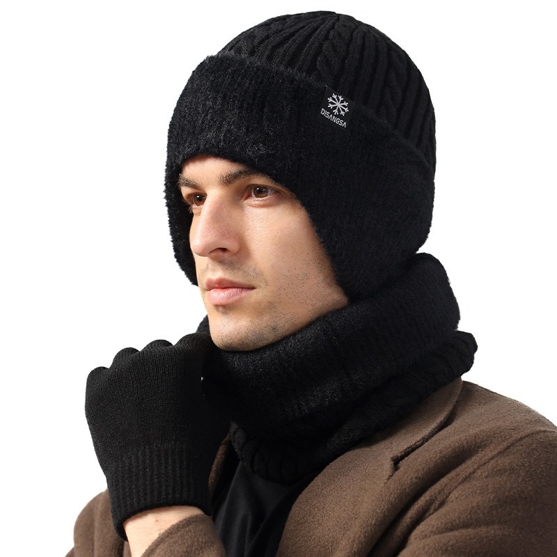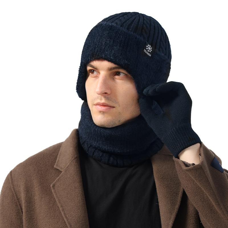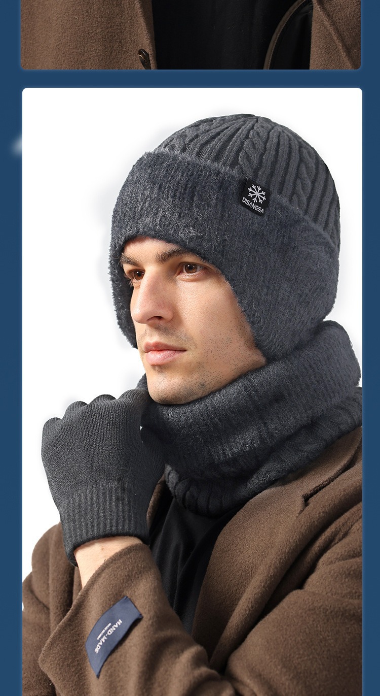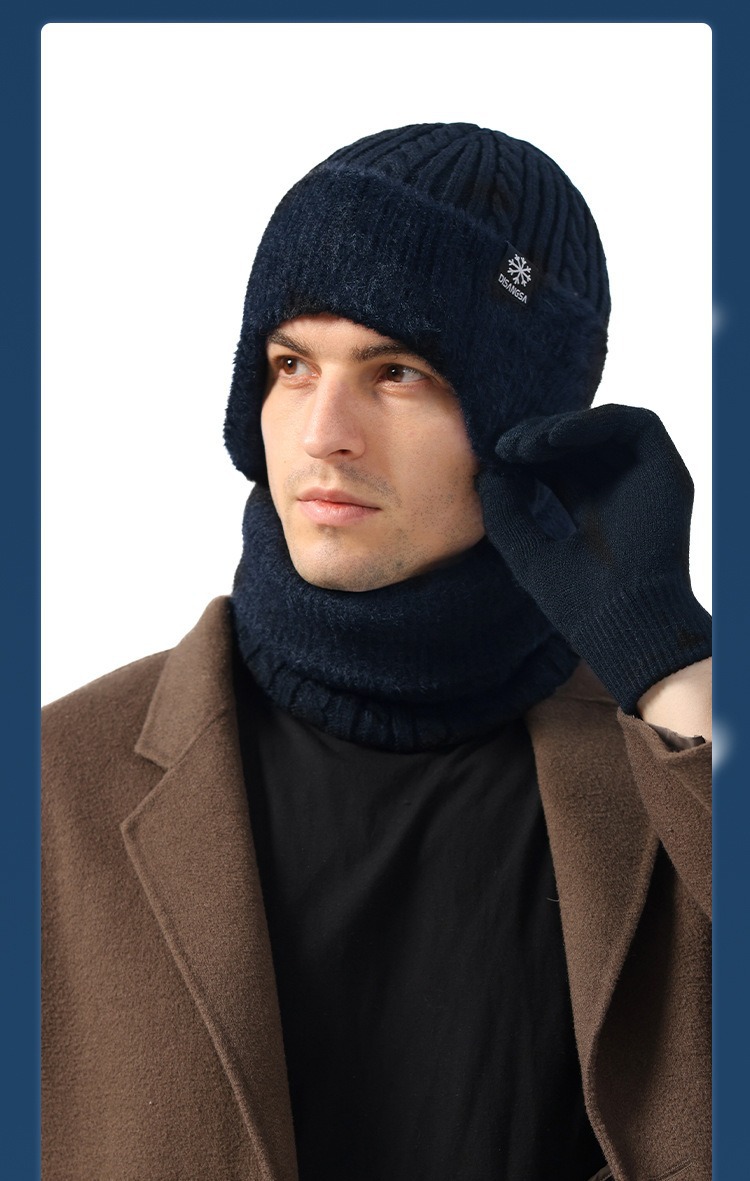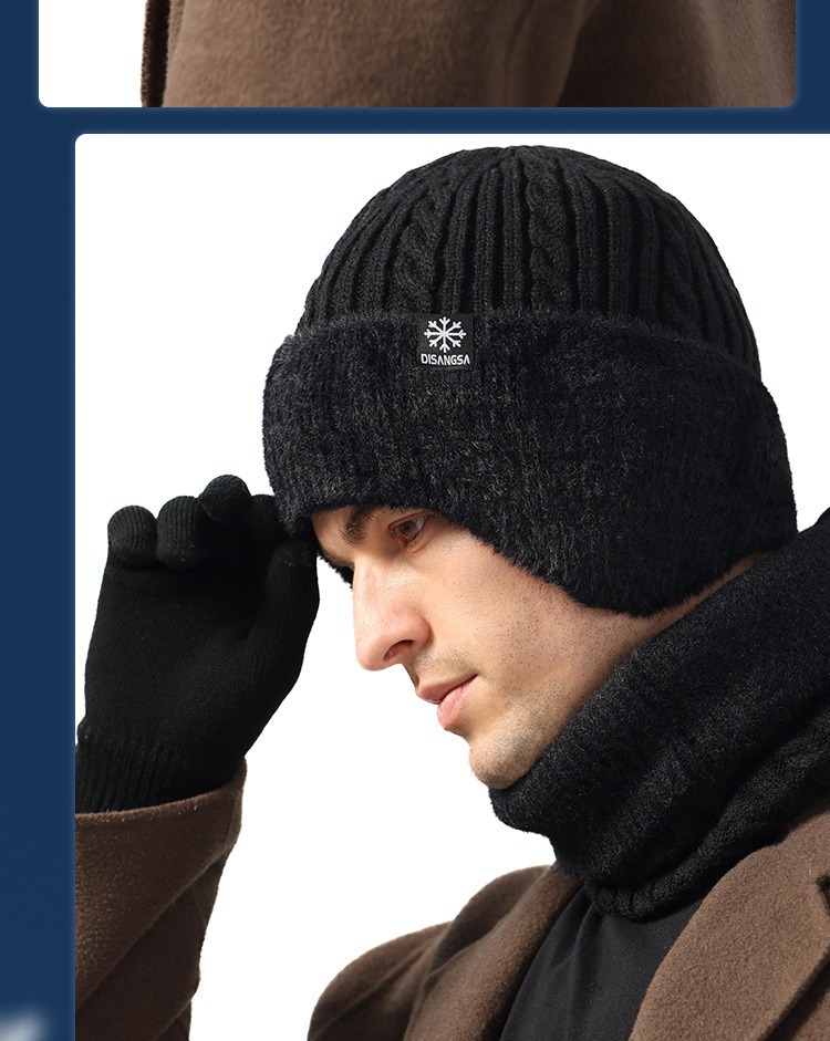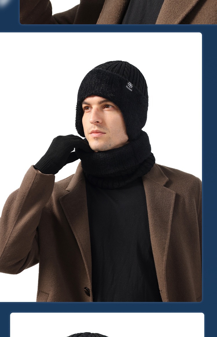 新款毛线帽子男士冬天加厚护耳围脖两件套装骑车抗寒保暖针织帽