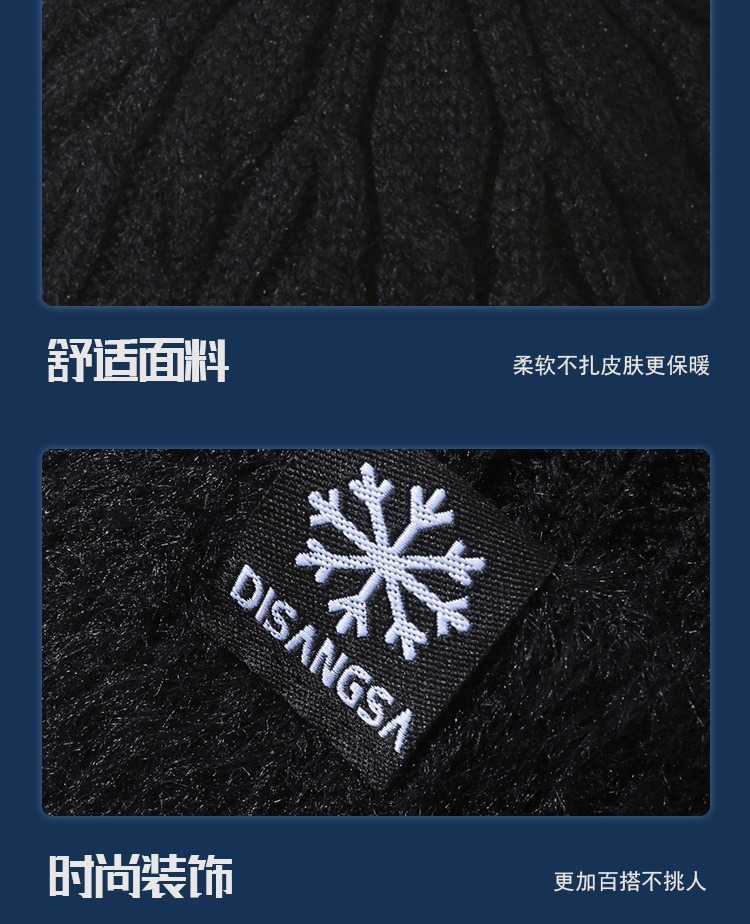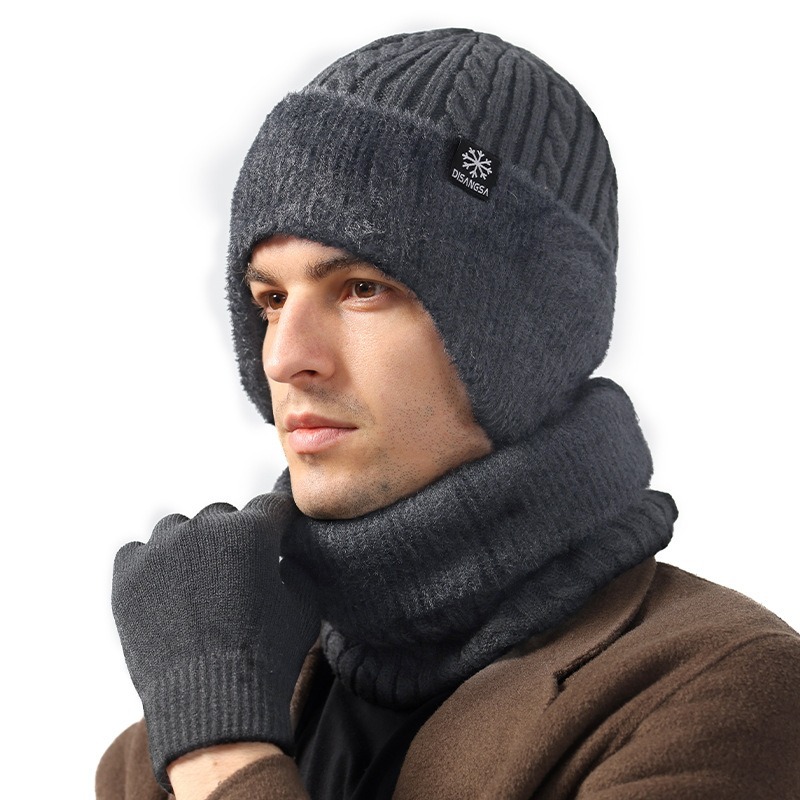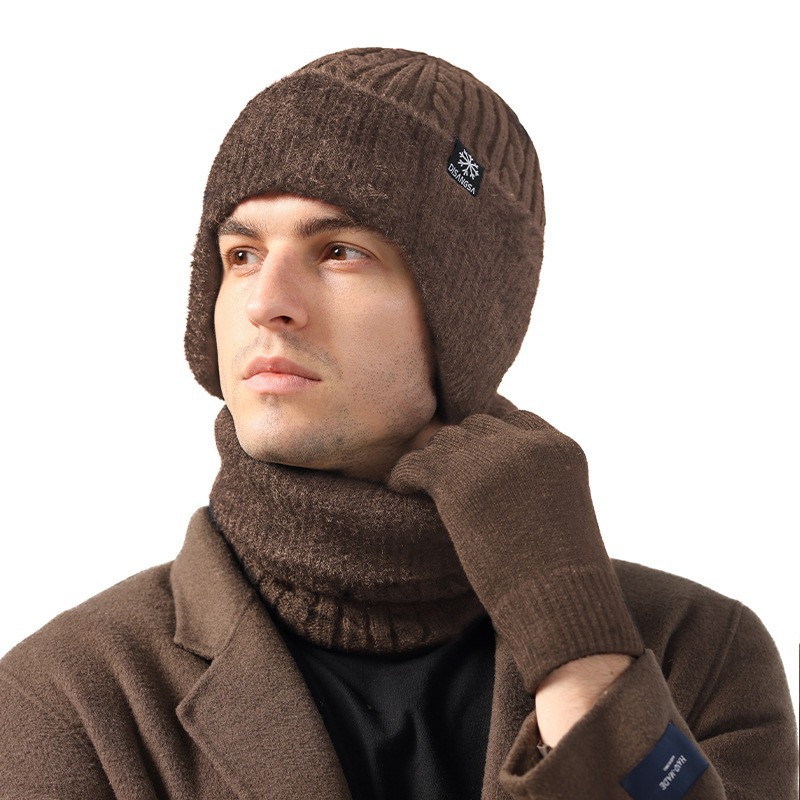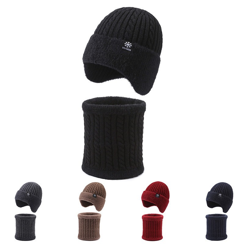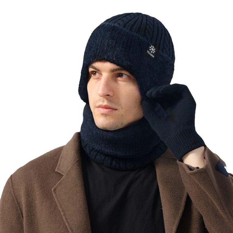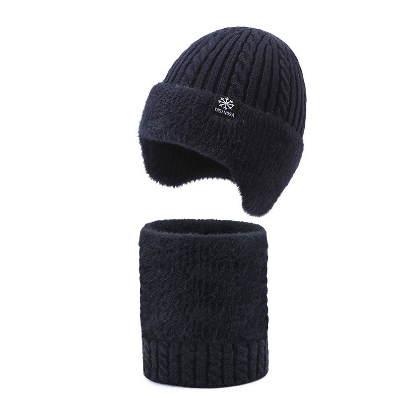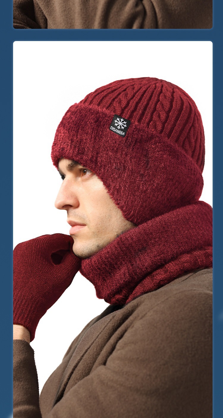 新款毛线帽子男士冬天加厚护耳围脖两件套装骑车抗寒保暖针织帽
