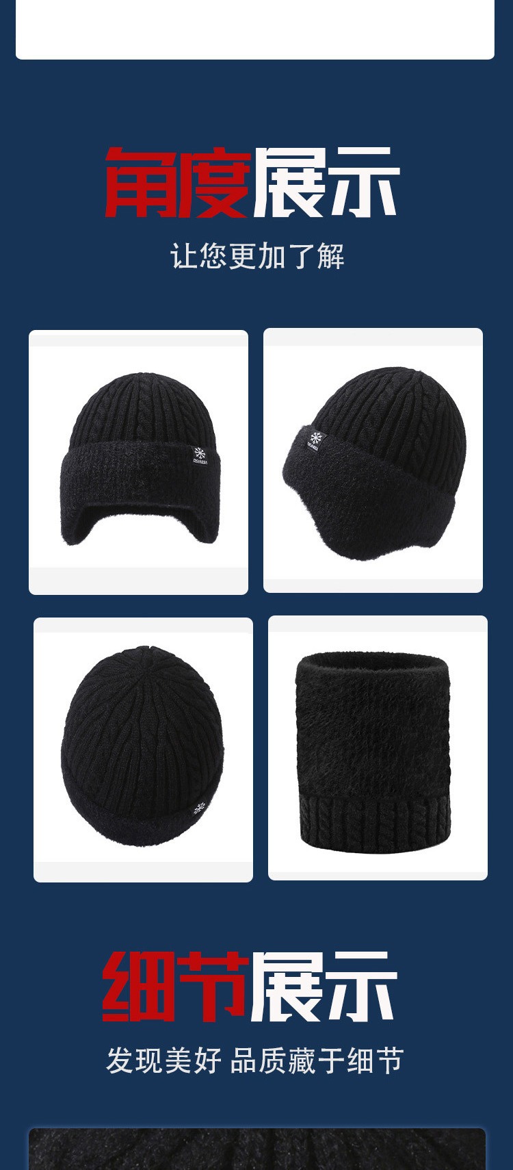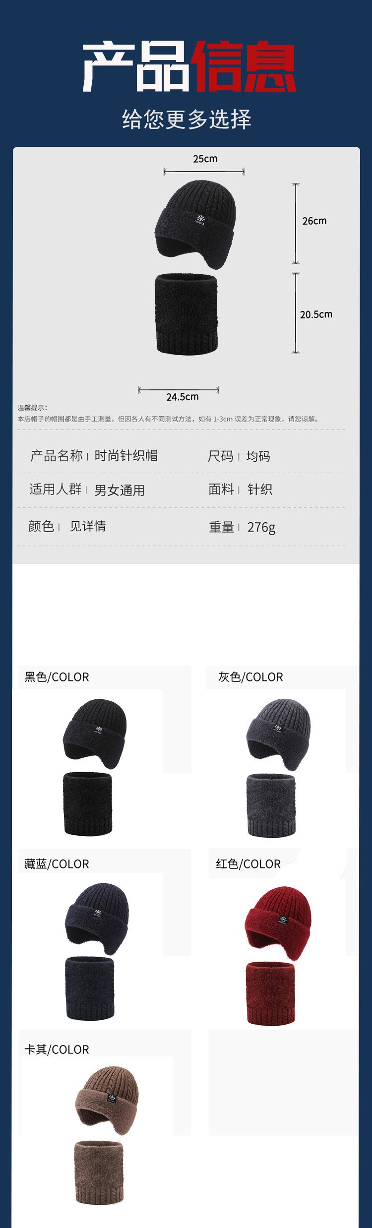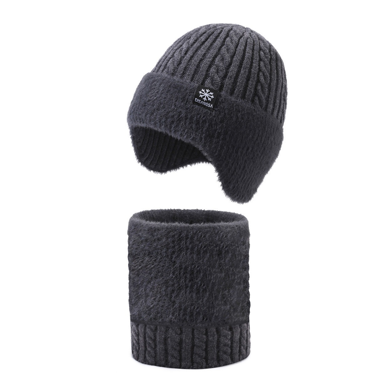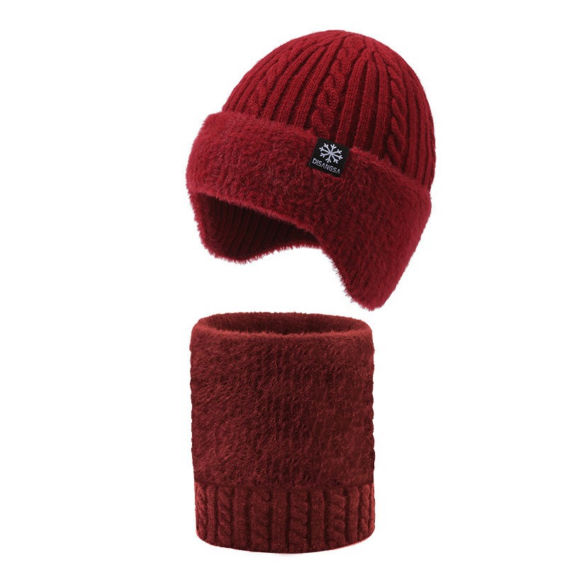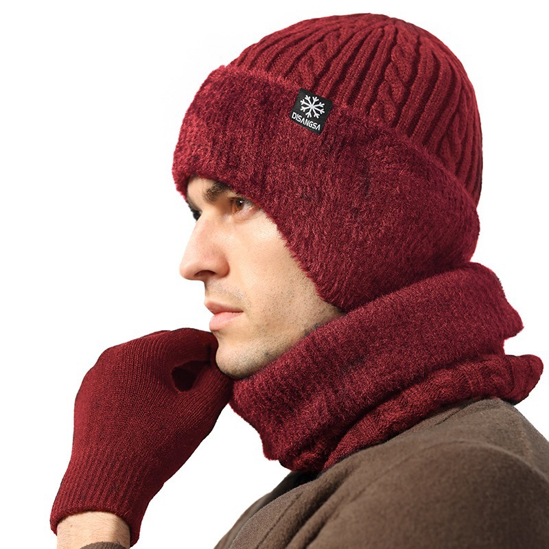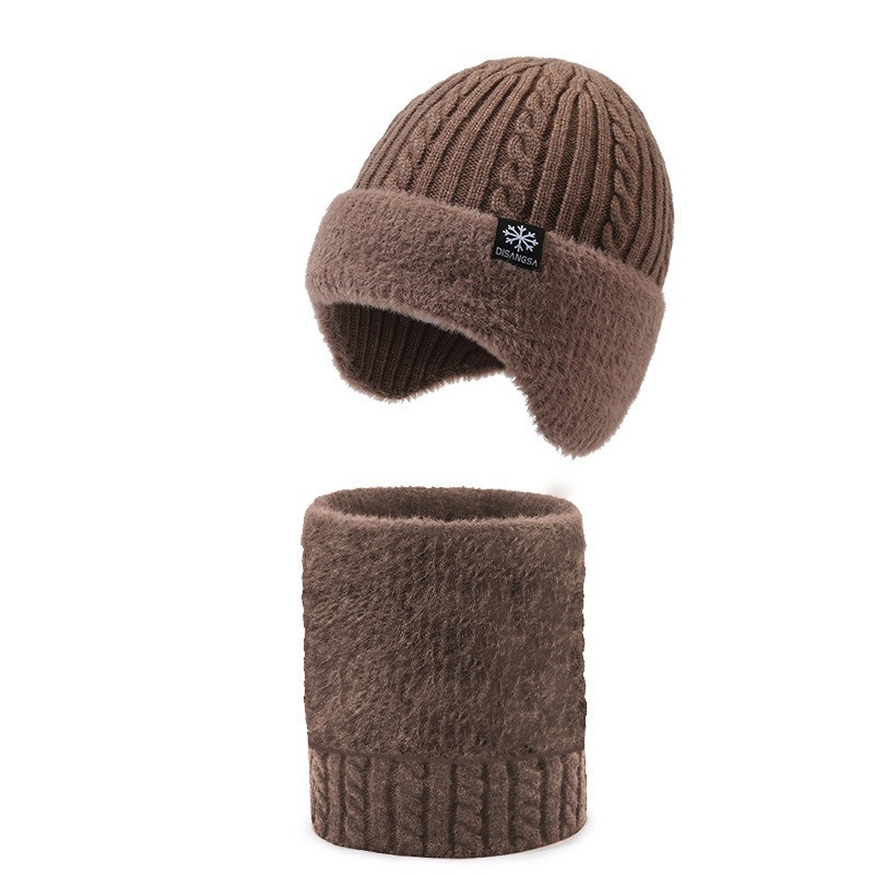 新款毛线帽子男士冬天加厚护耳围脖两件套装骑车抗寒保暖针织帽
