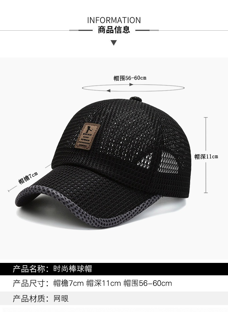 帽子男士夏天遮阳帽户外防晒太阳帽百搭棒球帽夏季网帽透气鸭舌帽
