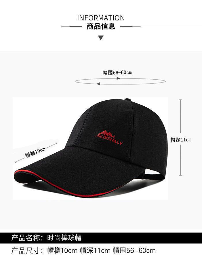 帽子男春秋棒球帽加长帽檐遮阳休闲户外钓鱼防晒透气太阳帽鸭舌帽
