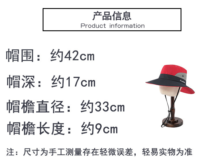 大帽檐防晒帽男女夏秋休闲遮阳帽登山钓鱼帽太阳帽旅游户外渔夫帽