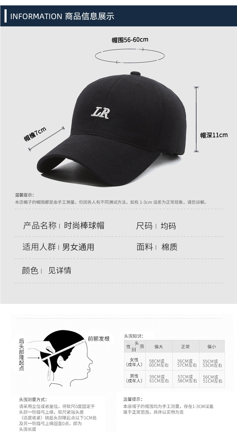 男女韩版潮牌新款字母刺绣大头围棒球帽软顶宽檐显瘦户外鸭舌帽子