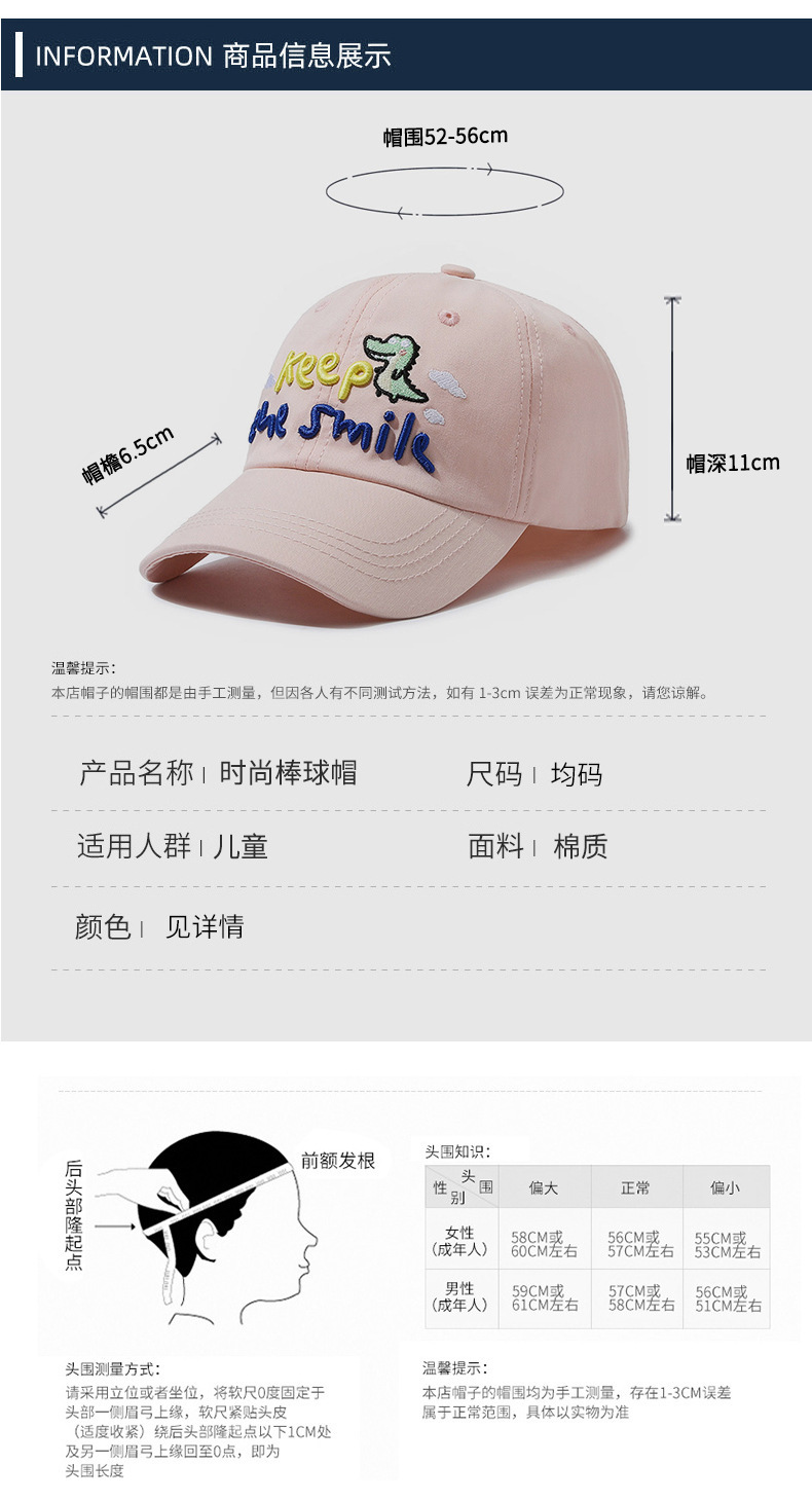 儿童绣花字母卡通棒球帽户外运动夏遮阳防晒新款布帽韩版鸭舌帽子