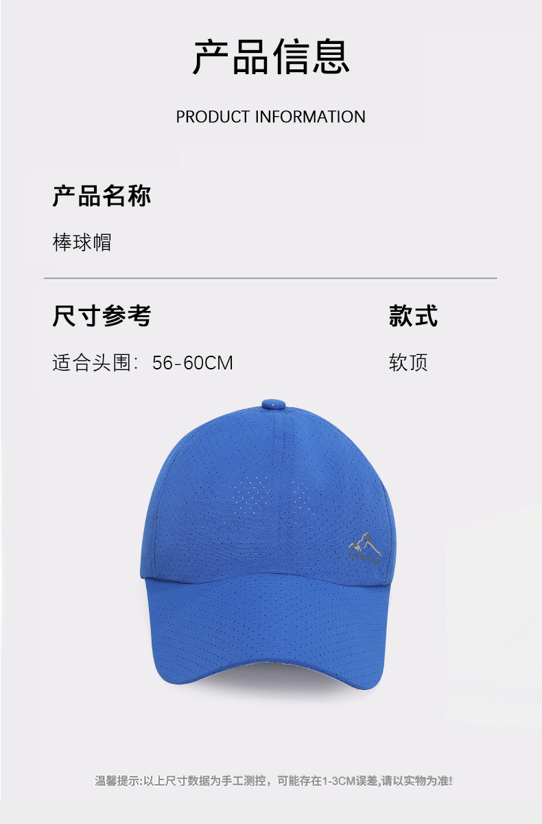 棒球帽新款速干山峰春夏休闲百搭男时尚潮流鸭舌帽户外运动帽子女