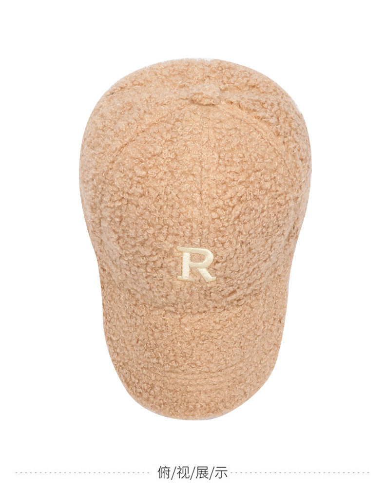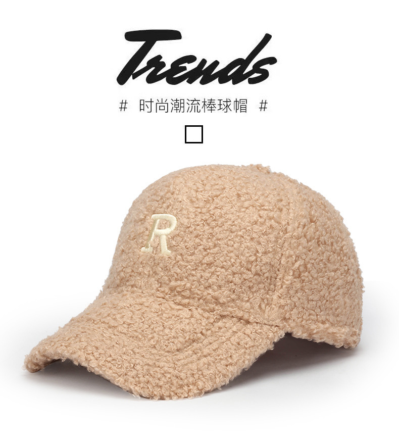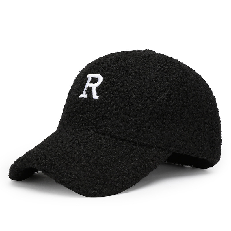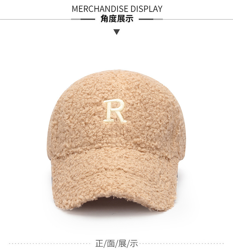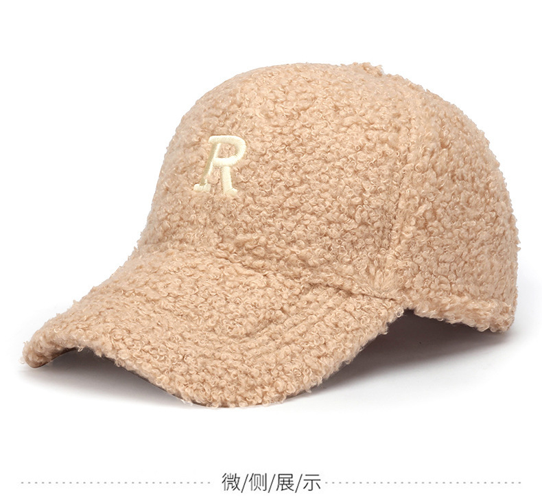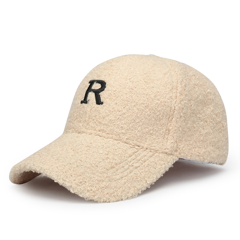 韩版刺绣R字母羊羔绒棒球帽子女秋冬季百搭休闲网红 显脸小鸭舌帽