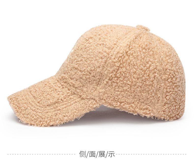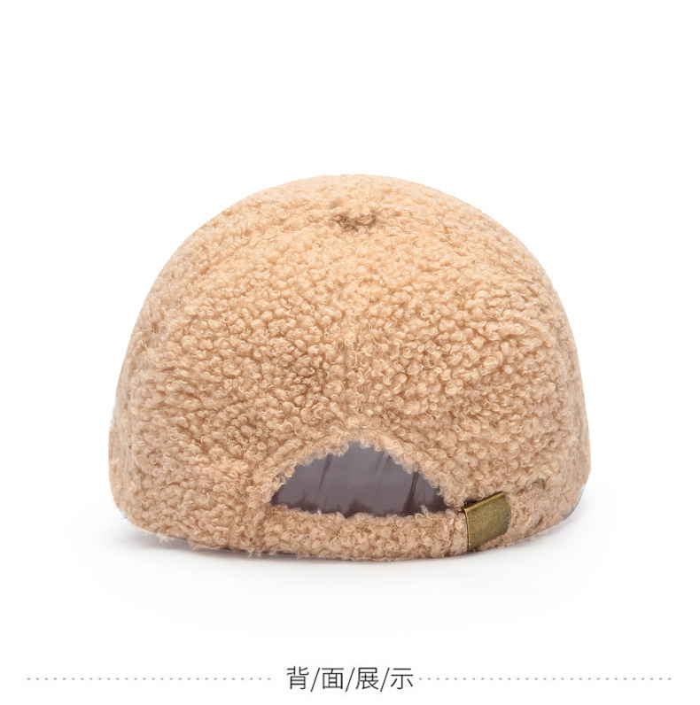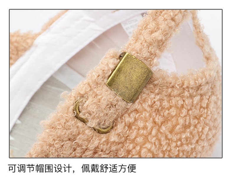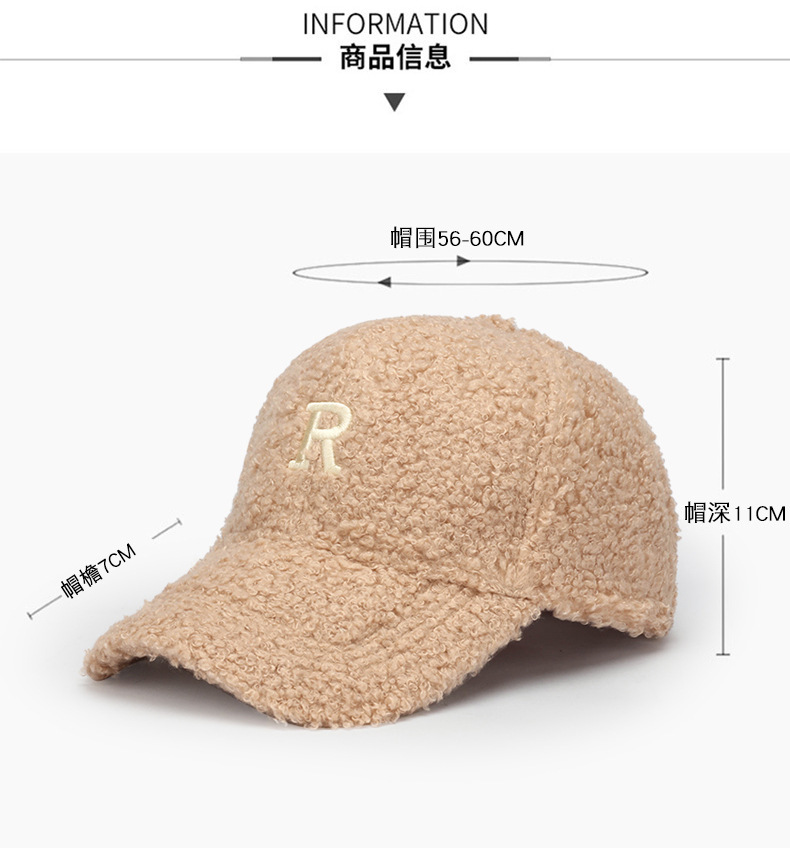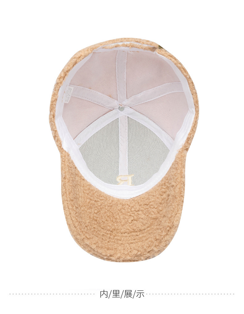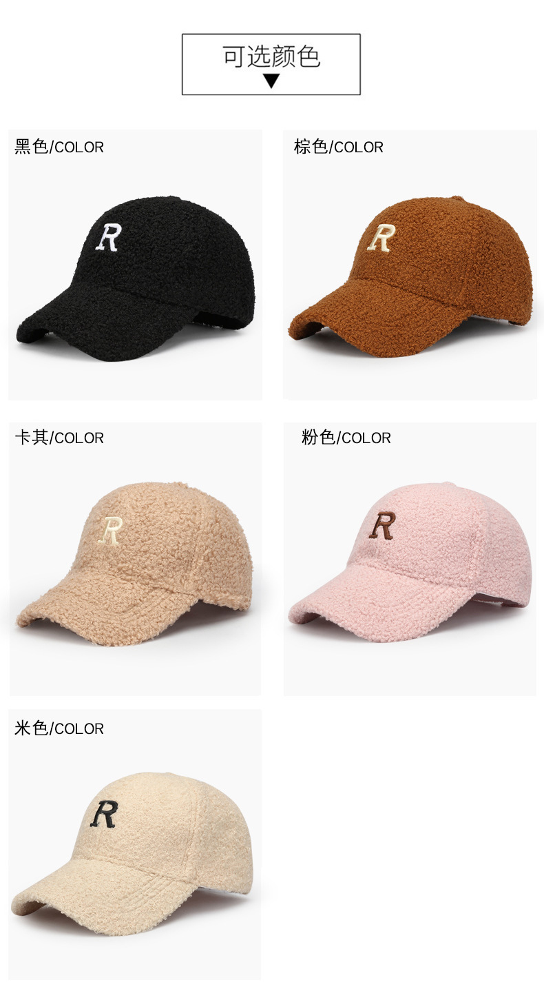 韩版刺绣R字母羊羔绒棒球帽子女秋冬季百搭休闲网红 显脸小鸭舌帽