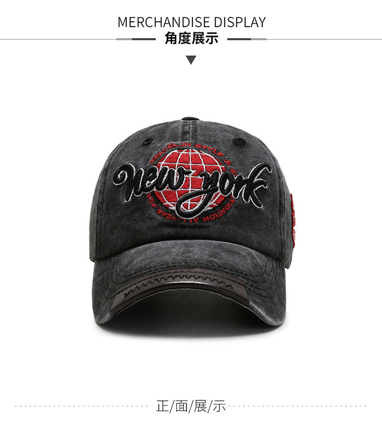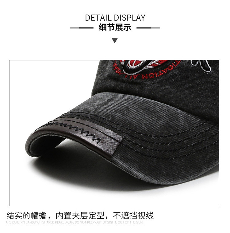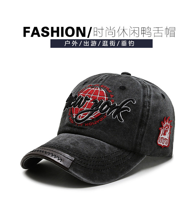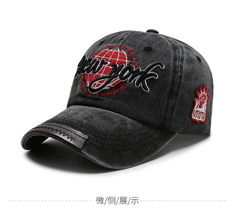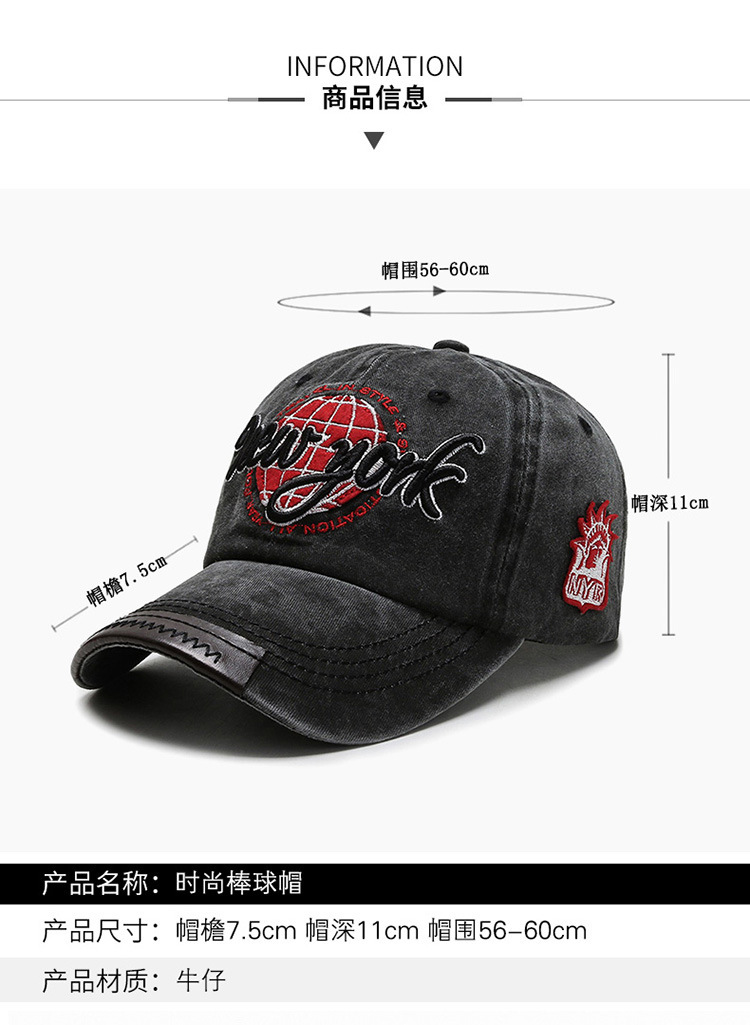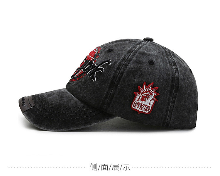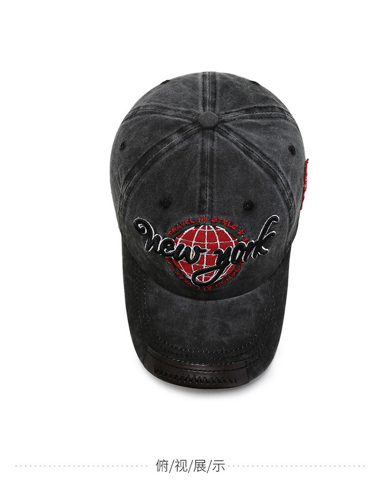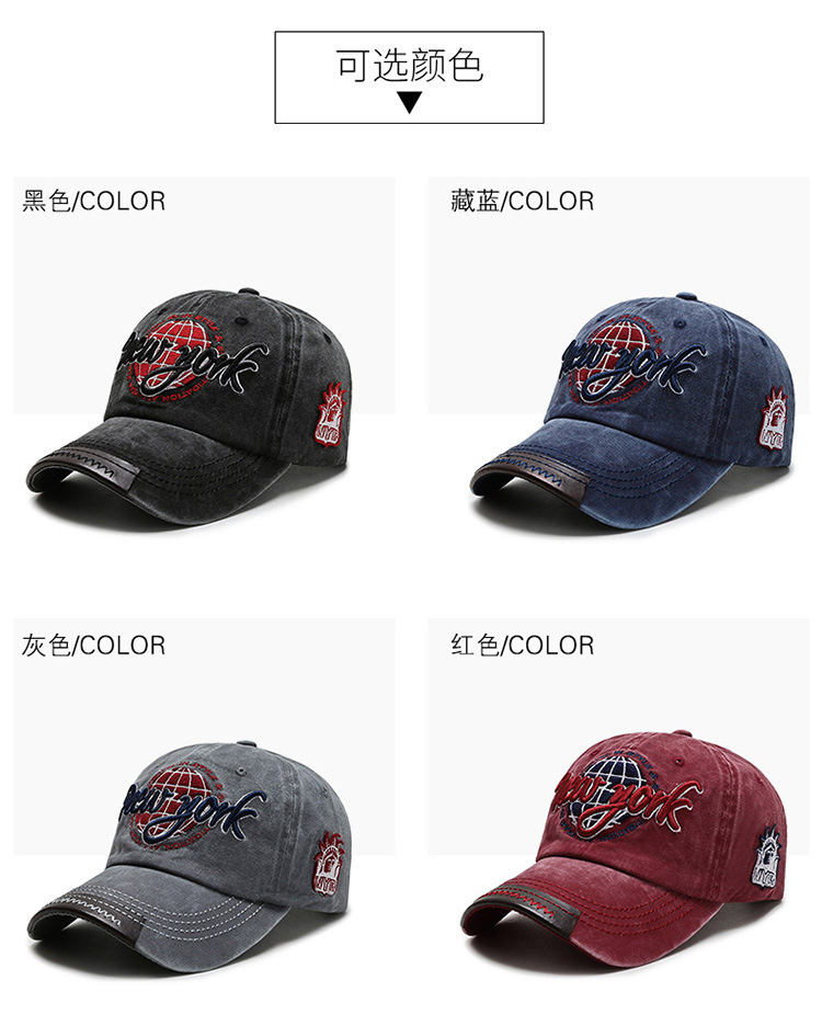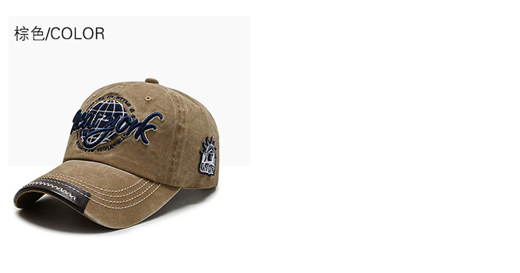 帽子男女春夏棒球帽水洗布做旧字母刺绣弯沿鸭舌帽百搭复古情侣帽