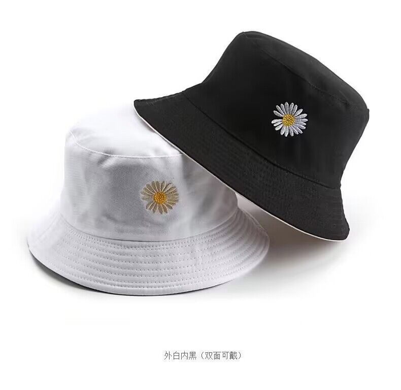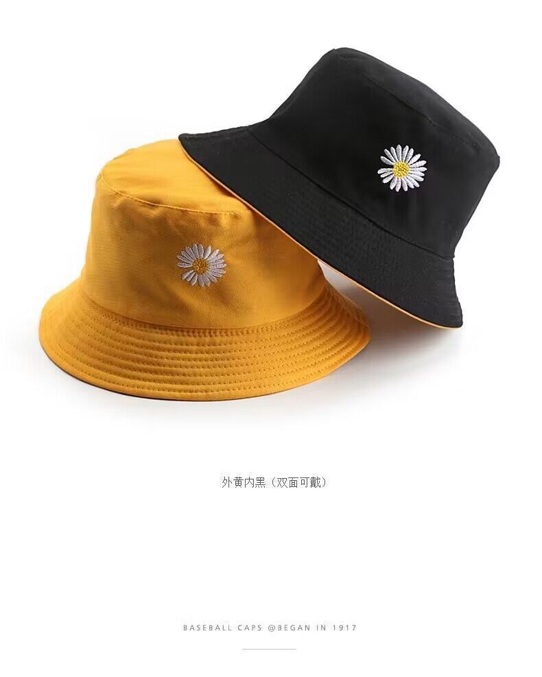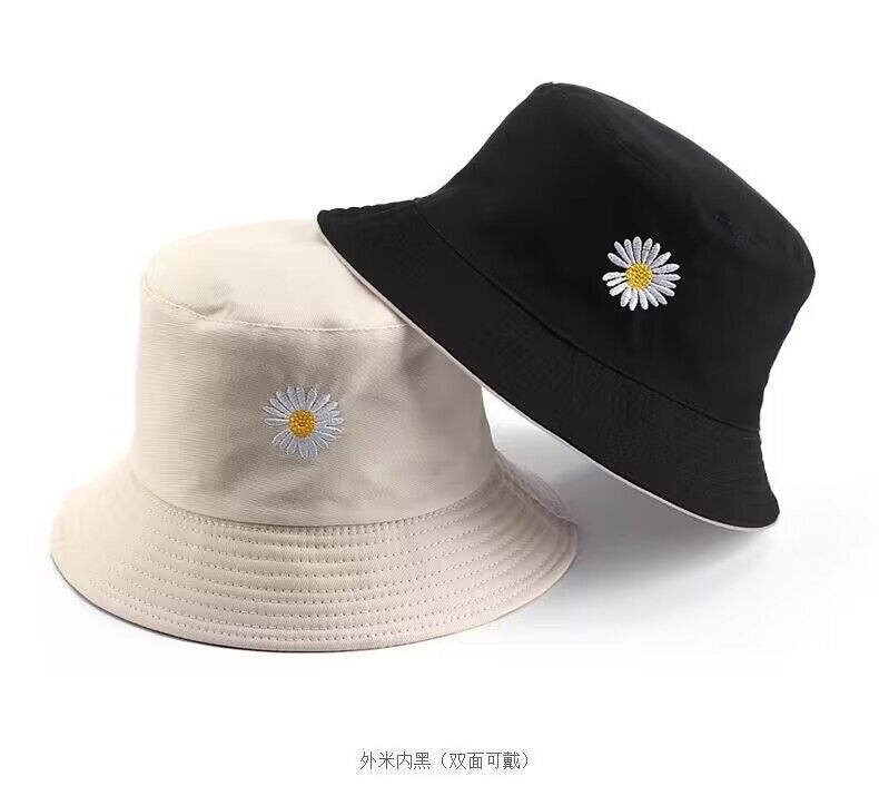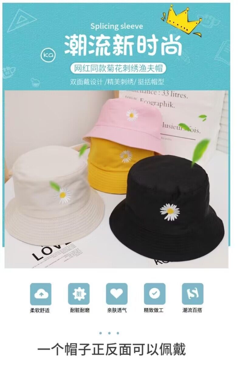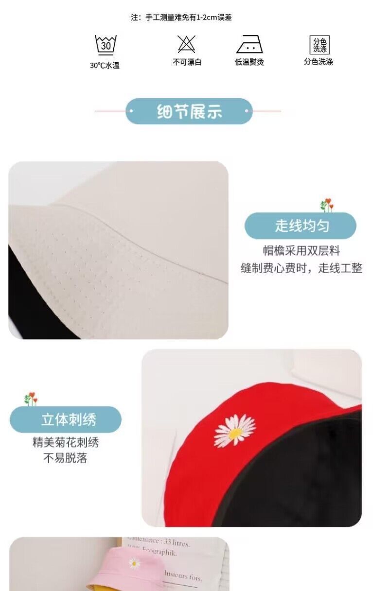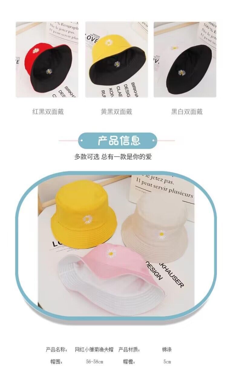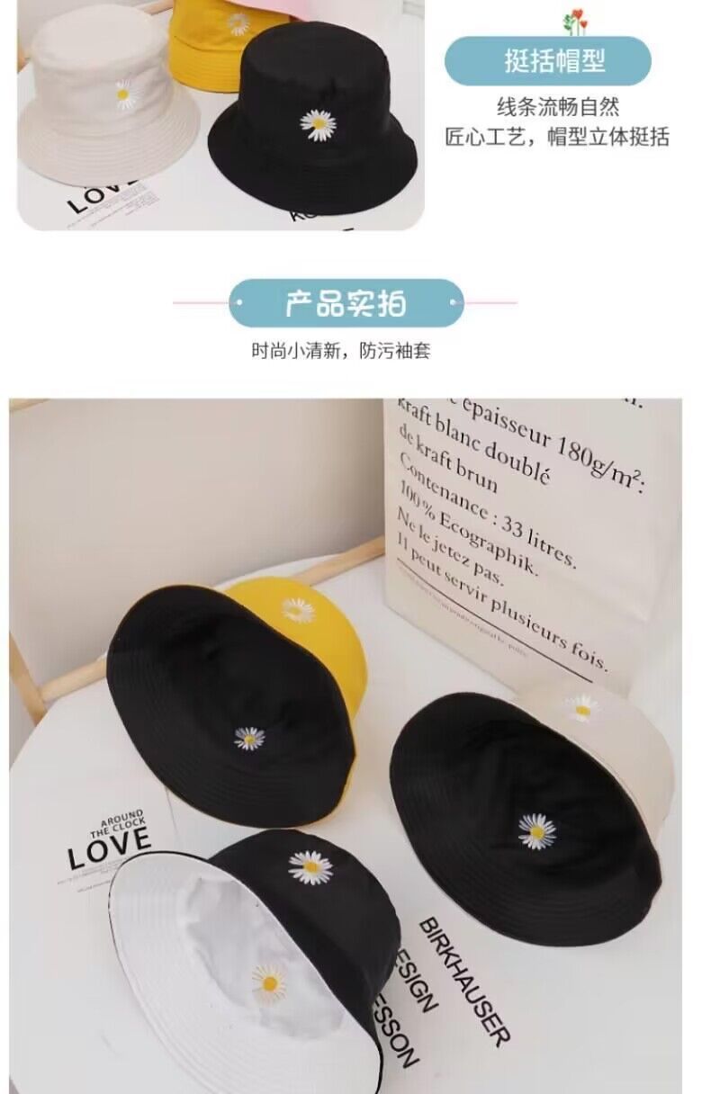 韩版四季款纯色小雏菊短檐帽双面戴韩版潮流百搭渔夫帽户外遮阳帽