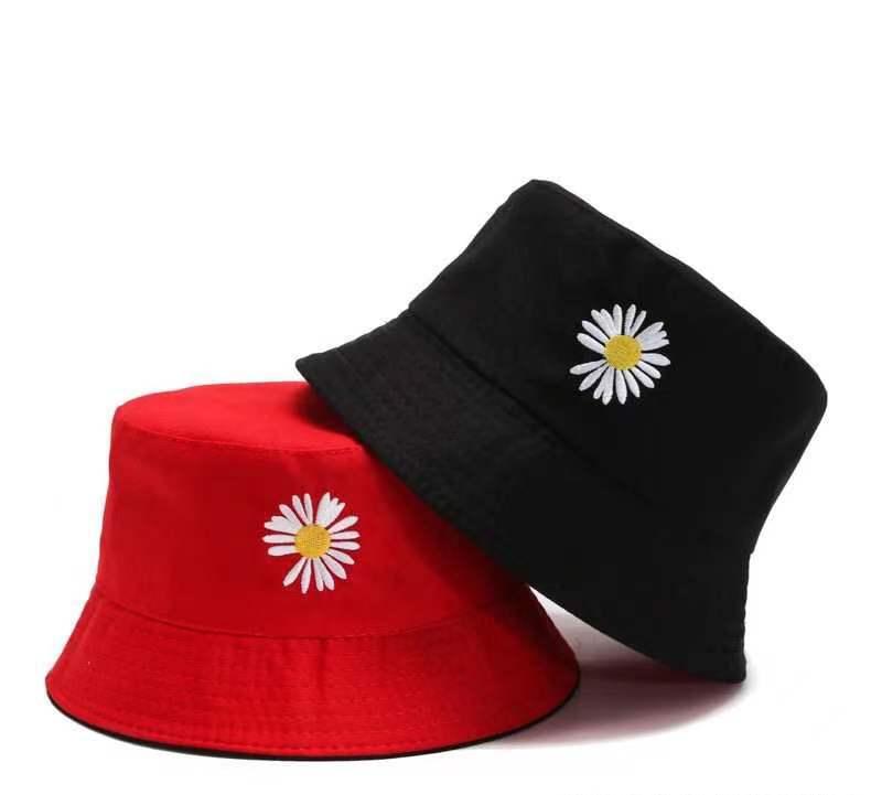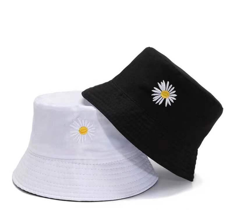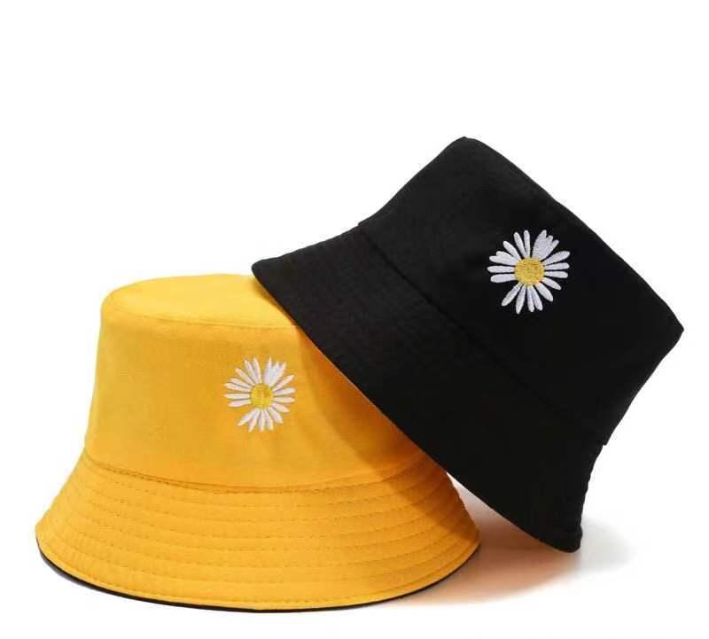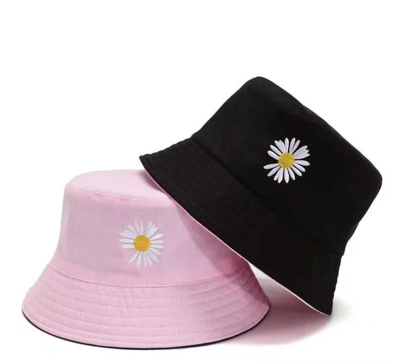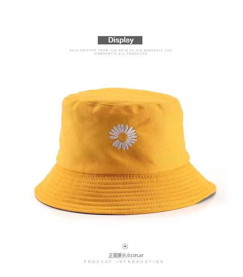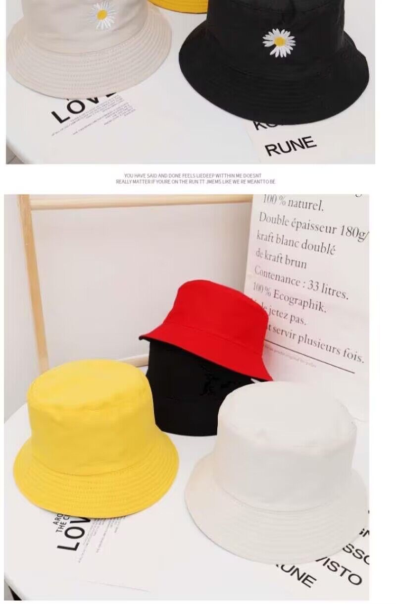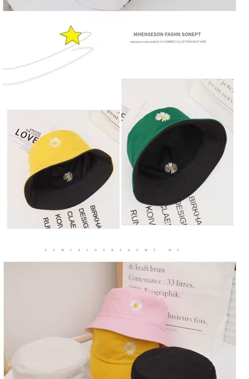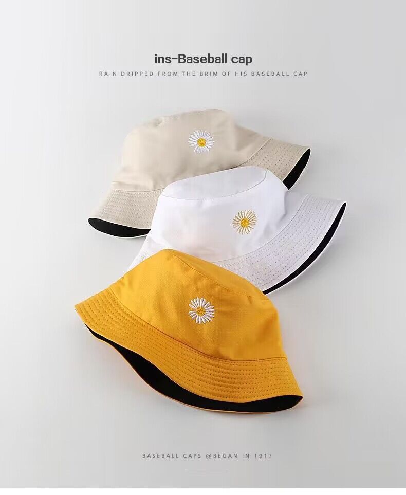 韩版四季款纯色小雏菊短檐帽双面戴韩版潮流百搭渔夫帽户外遮阳帽